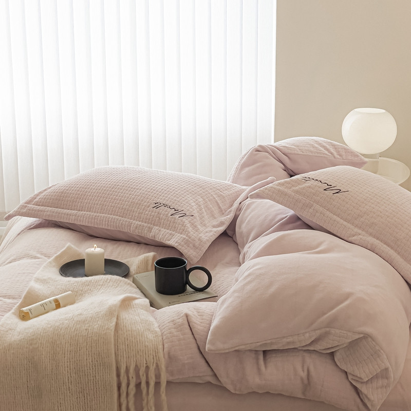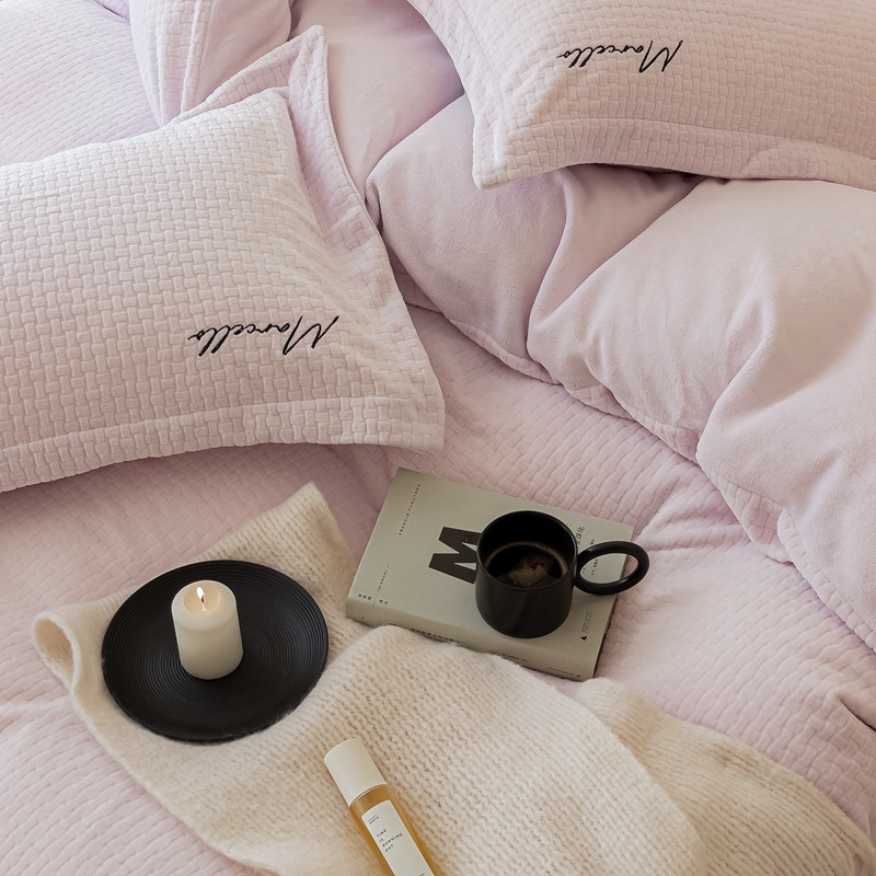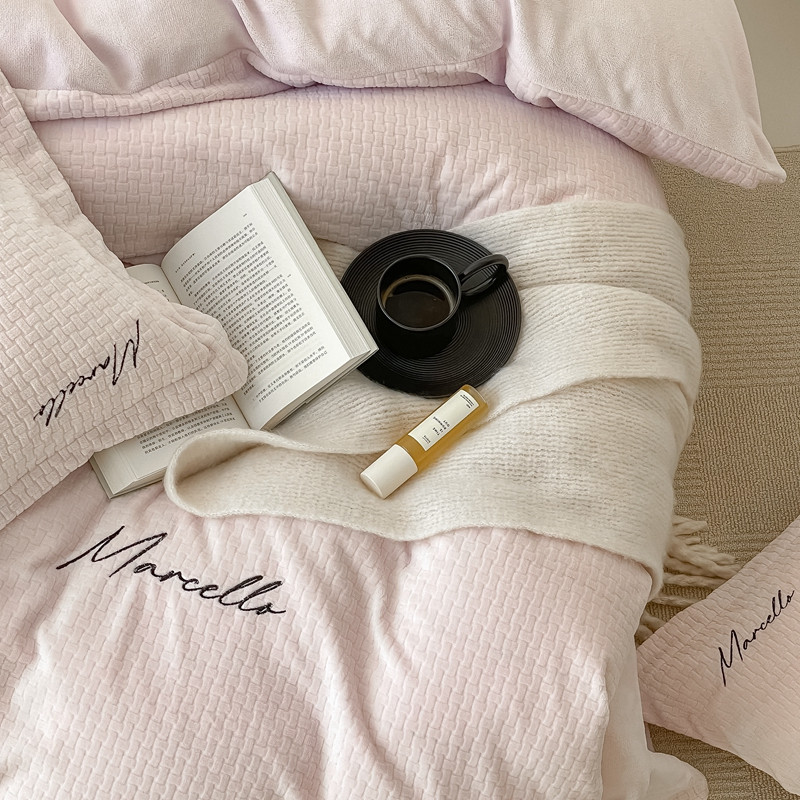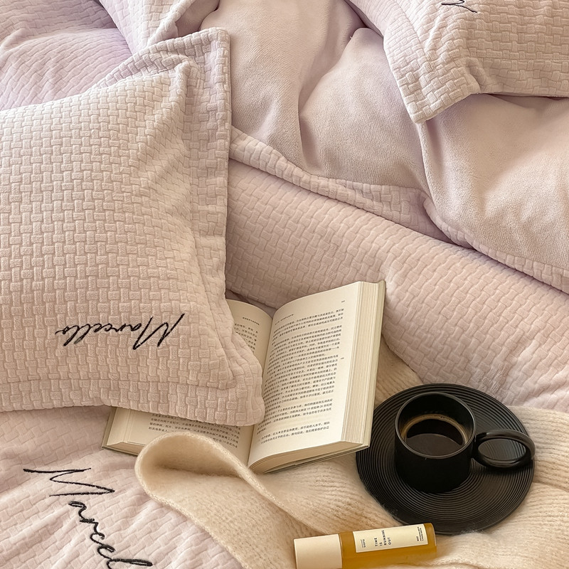 (总)潘朵拉 2023新款编织刺绣牛奶绒四件套,编织豆沙,编织黄,编织咖,编织蓝,编织绿,编织米白,编织玉,编织紫