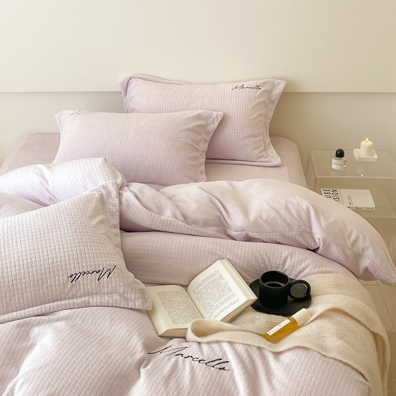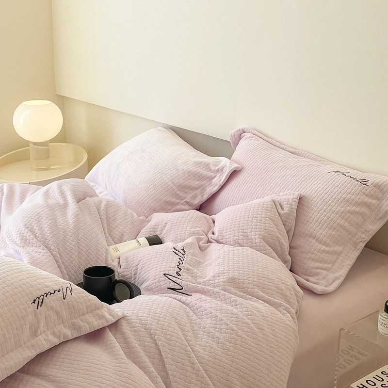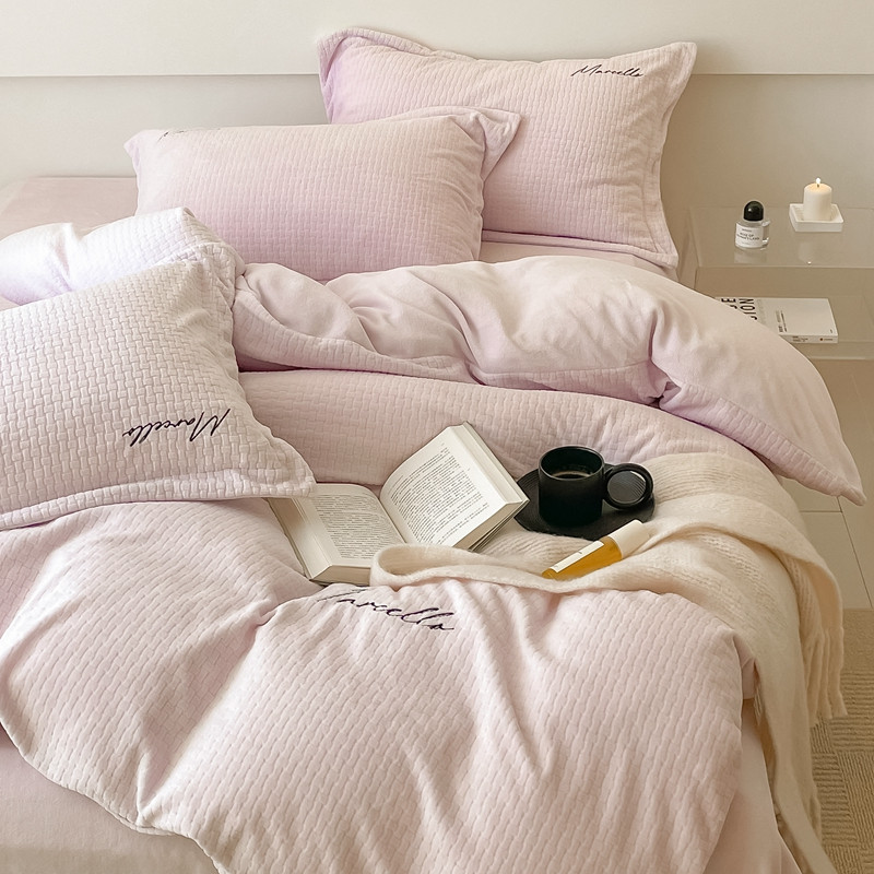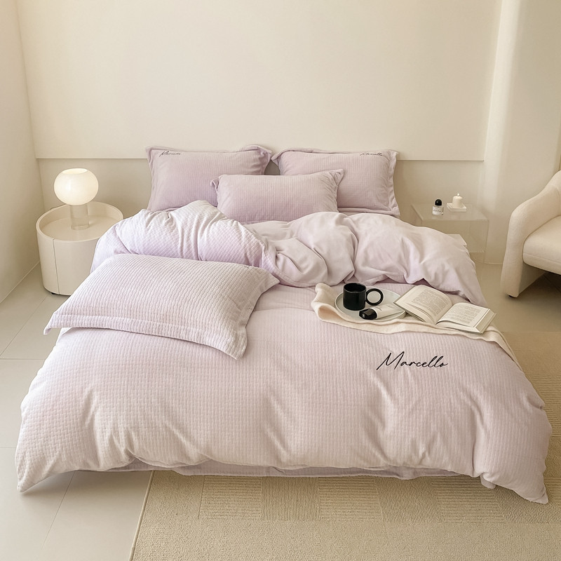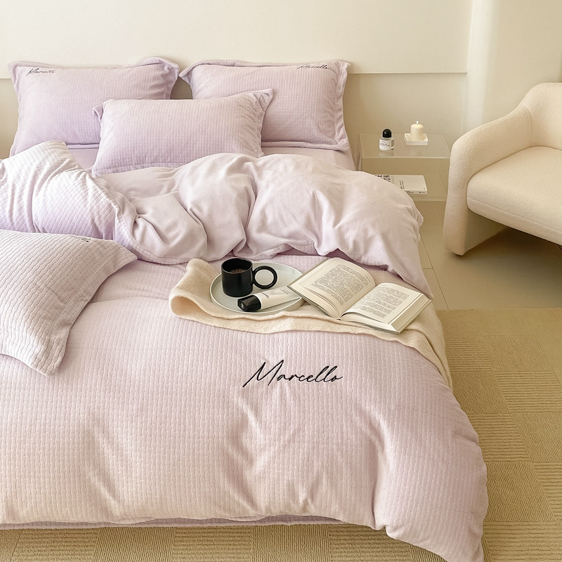 商品名称:潘朵拉 2022新款编织刺绣牛奶绒四件套 编织紫