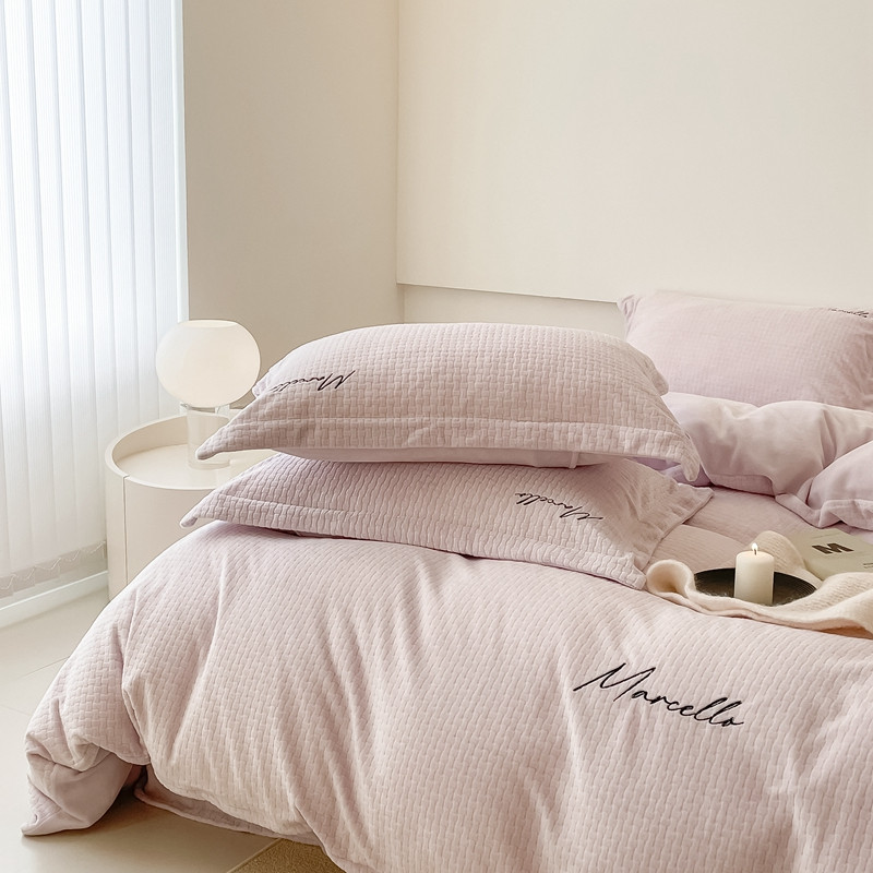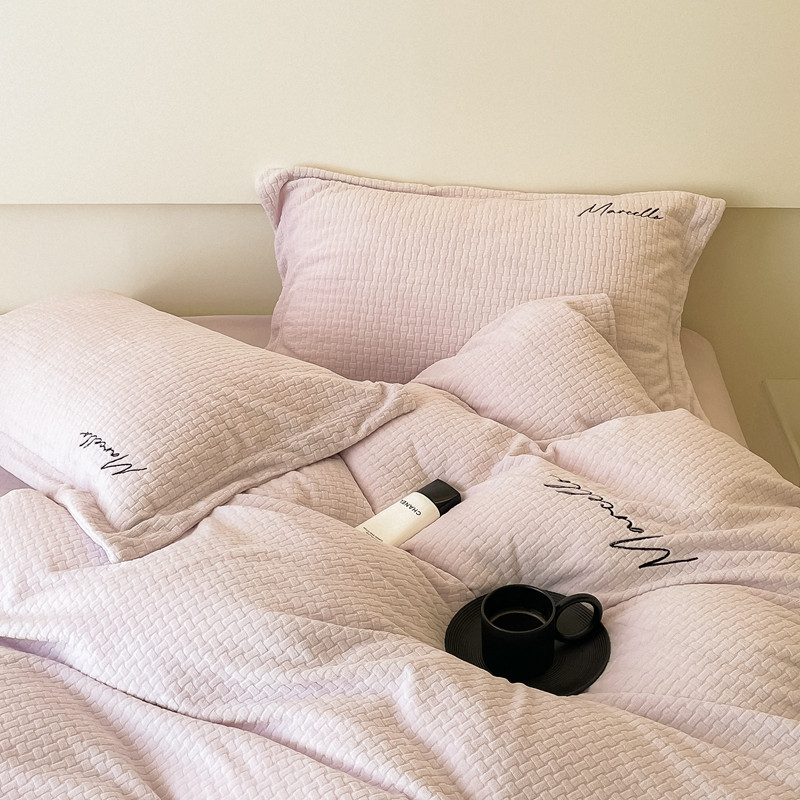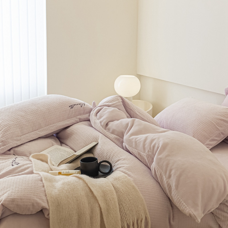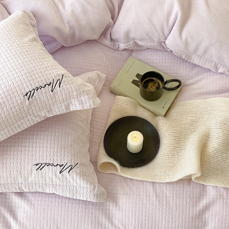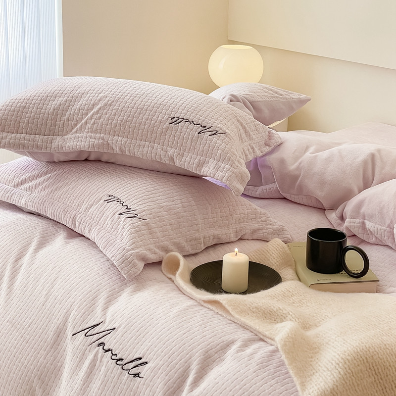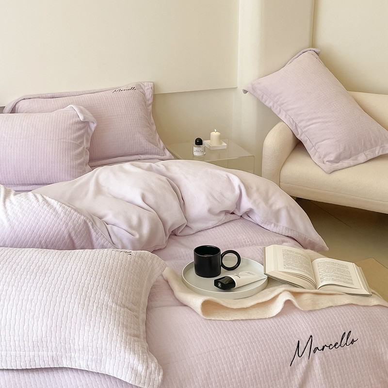 商品名称:潘朵拉 2022新款编织刺绣牛奶绒四件套 编织紫