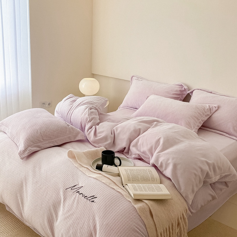 潘朵拉 2022新款编织刺绣牛奶绒四件套 编织紫