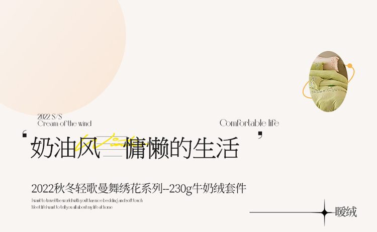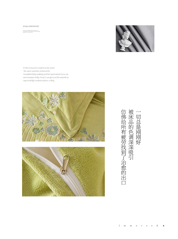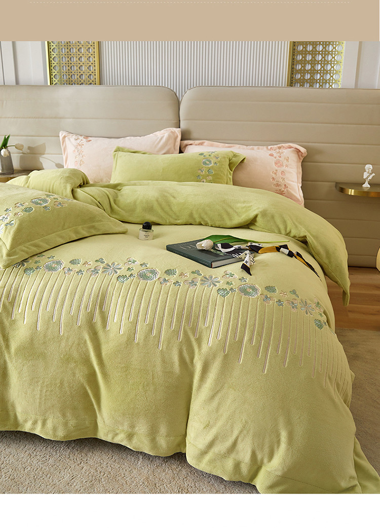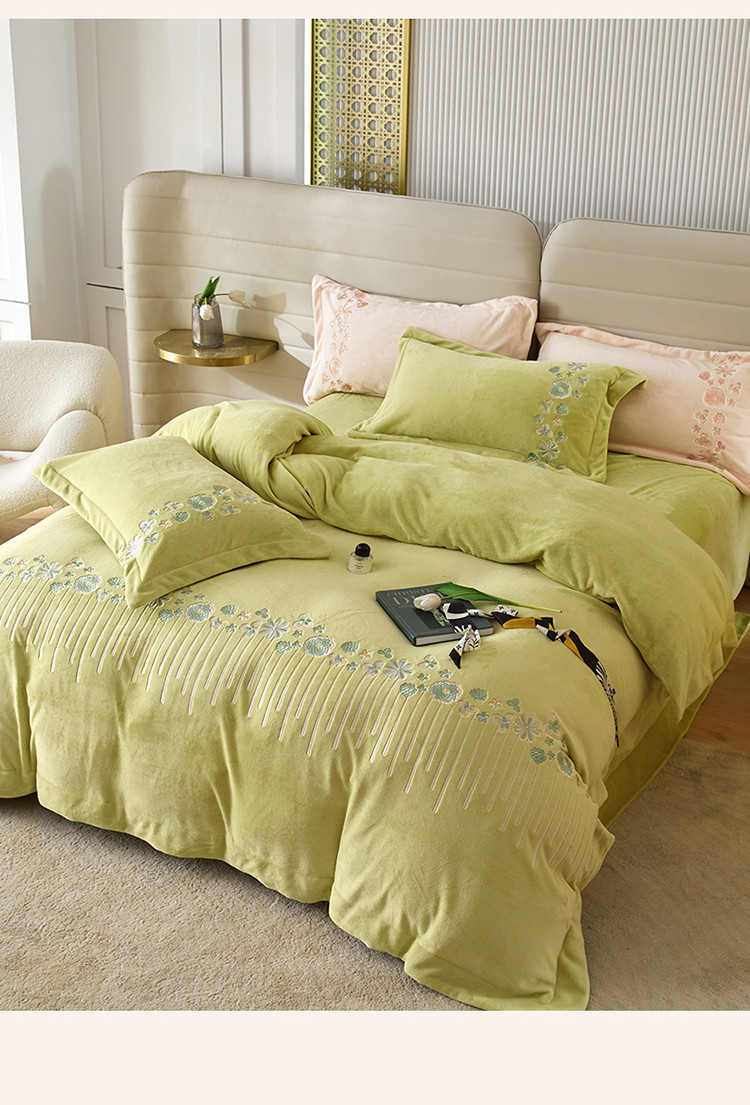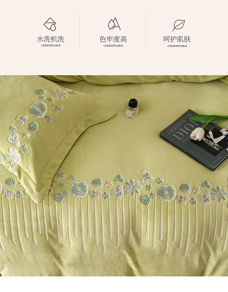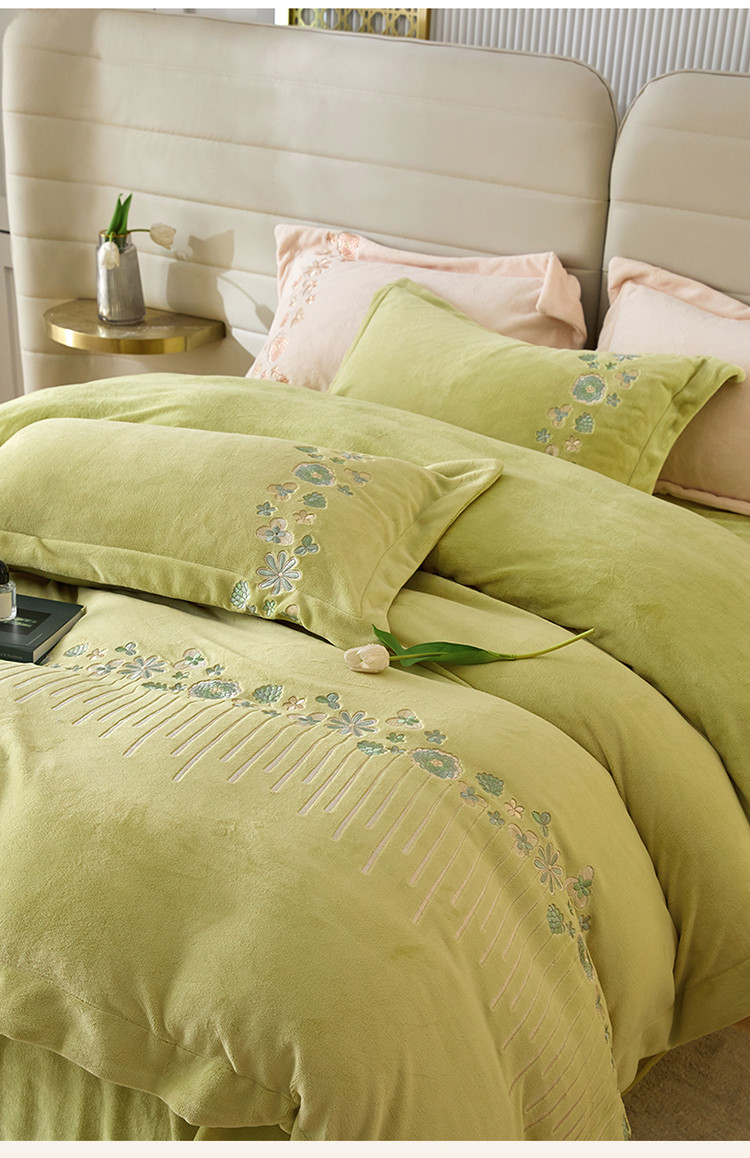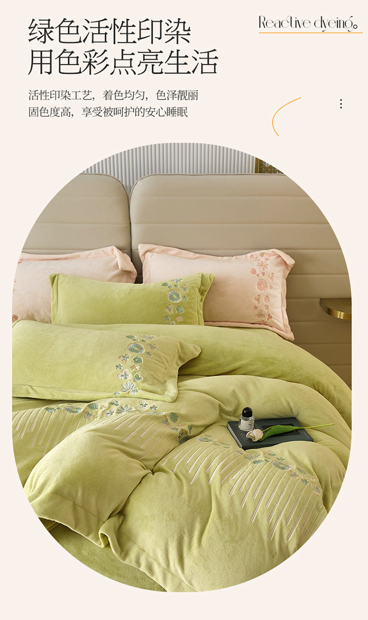 名品优仓 2022新款轻歌曼舞系列230g牛奶绒绣花四件套 轻歌曼舞-柔嫩绿