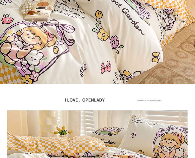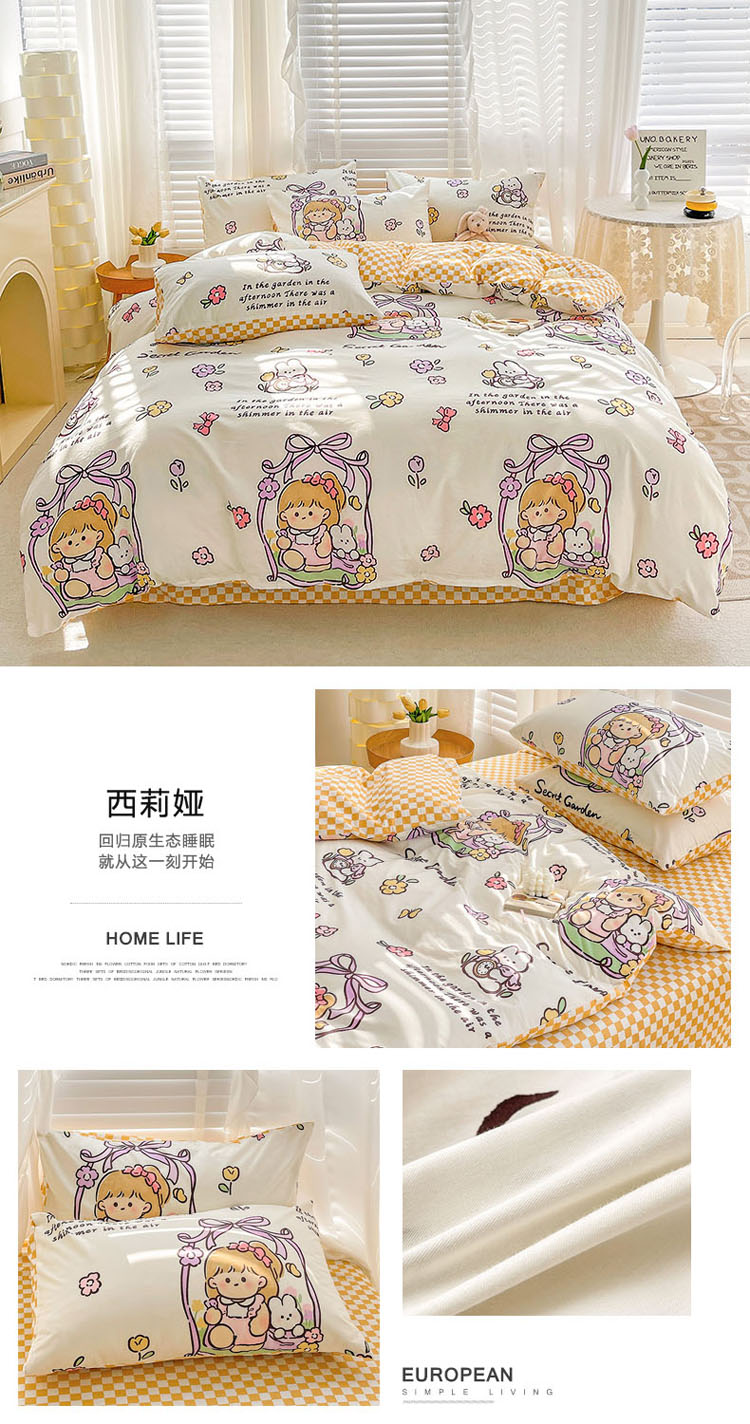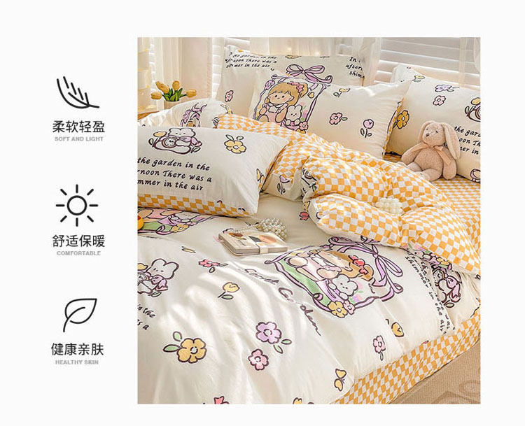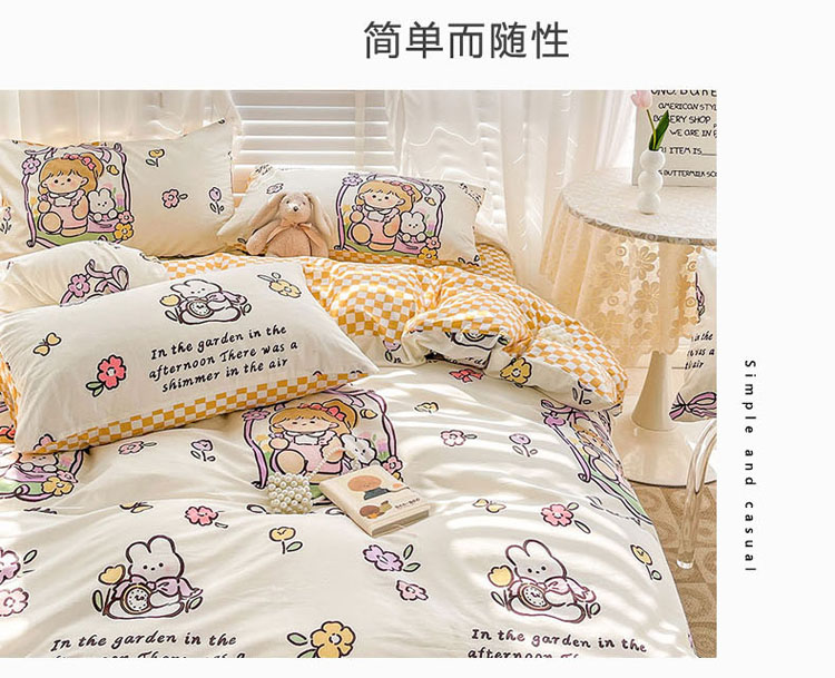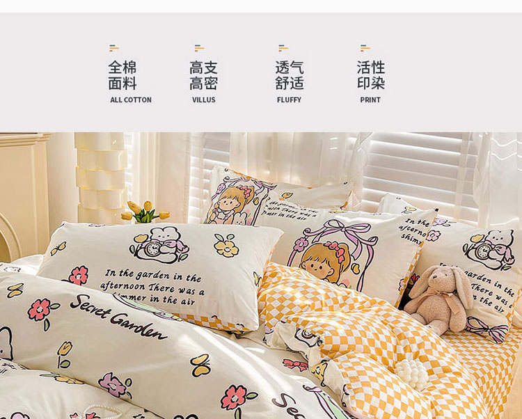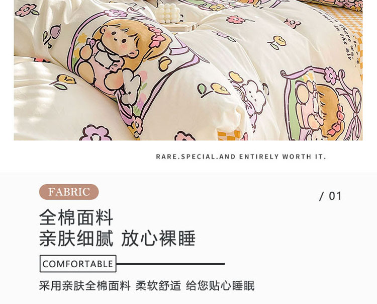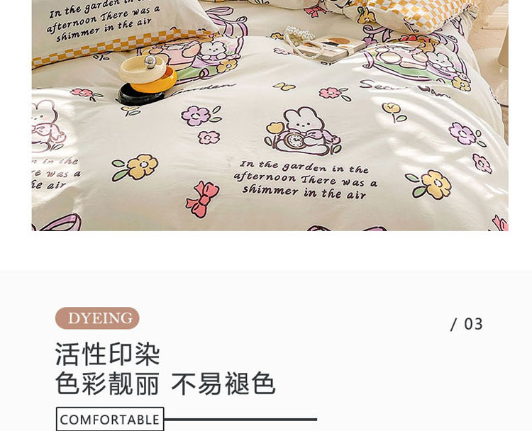 (总)梦家居 2023春季新品小清新系列全棉四件套,幸运兔,爱心兔,铃兰花兔,钱兔柿锦,熊兔乐园,奶咖小兔,西莉娅,魔法小兔,郁金粉兔,郁金紫兔,草莓兔,蜜桃兔,黛西,南瓜小兔,郁金花兔