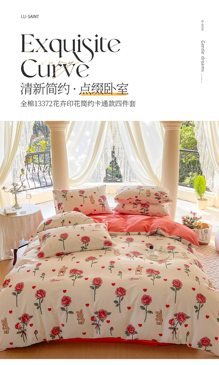 星巴k家纺2023新款全棉13372花卉印花简约卡通款多规格四件套慕惜