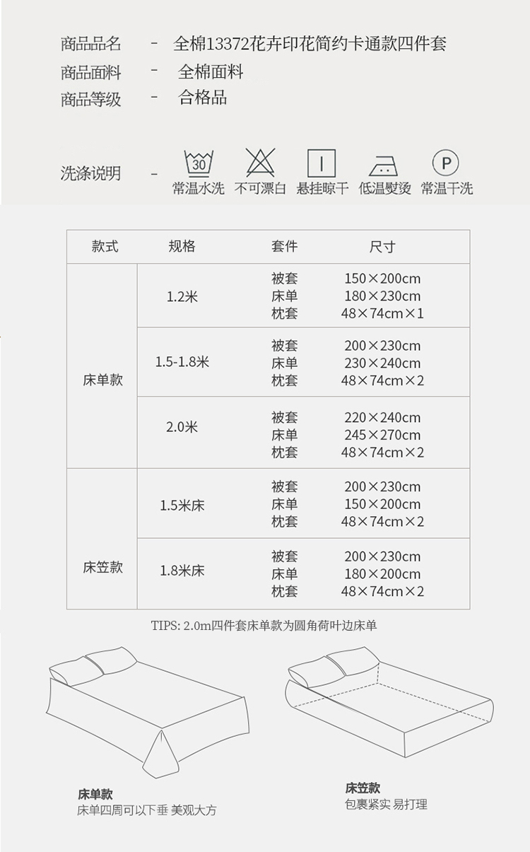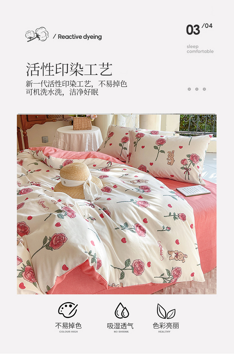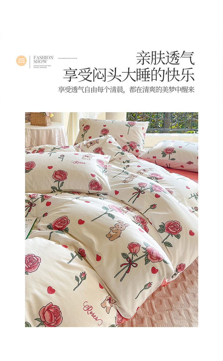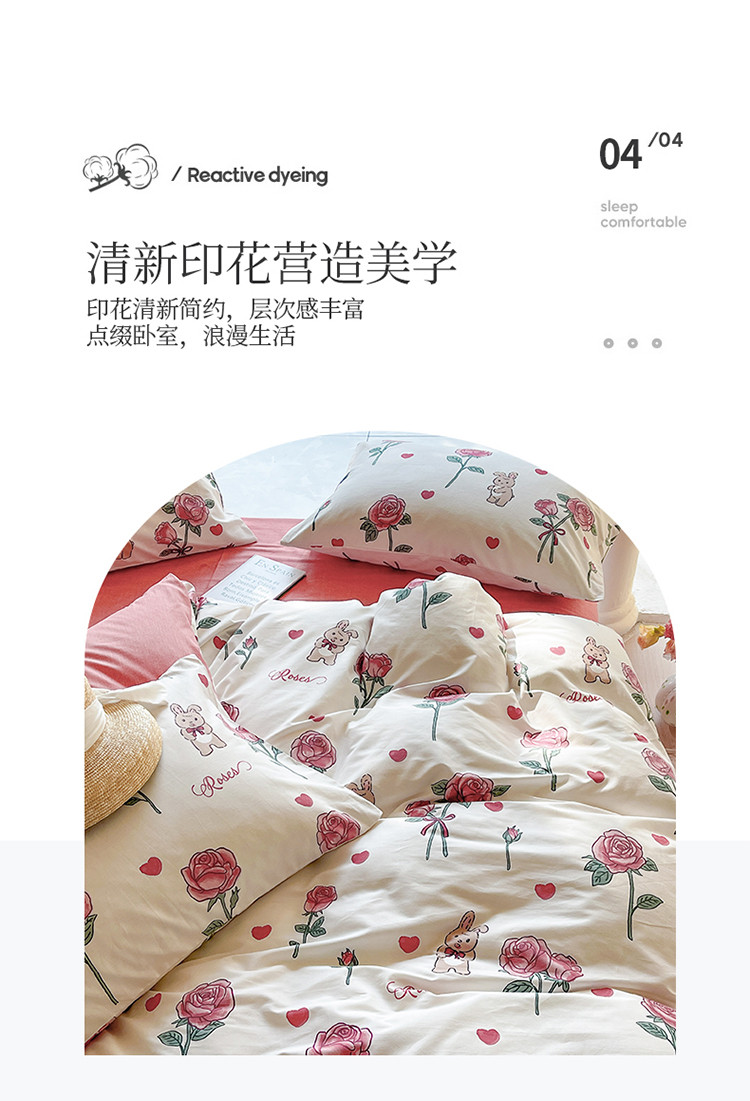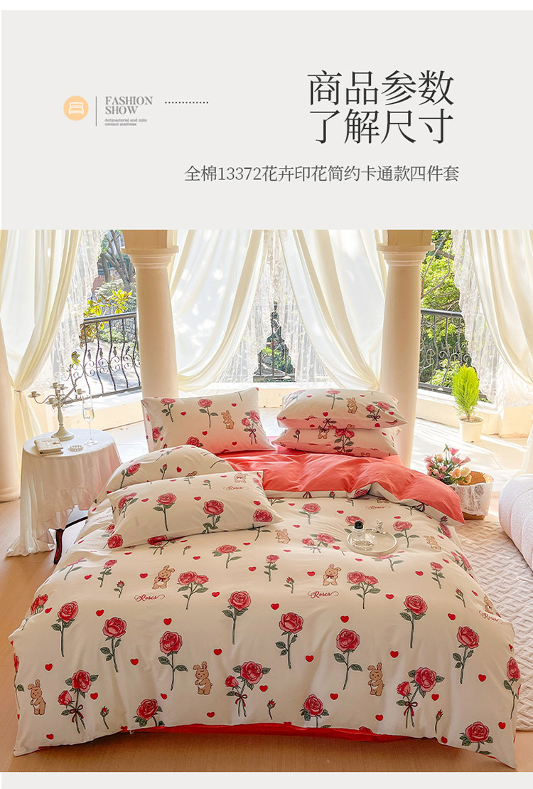 商品名称:星巴k家纺2023新款全棉13372花卉印花简约卡通款多规格四件套慕惜