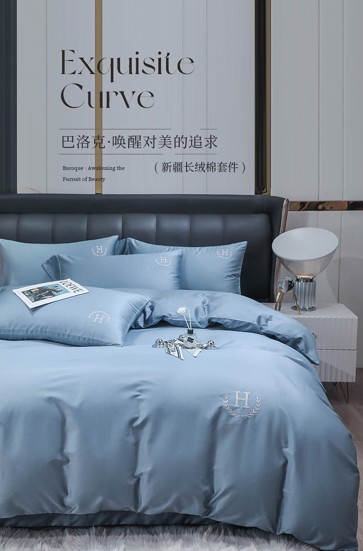 N先生 2024新款60长绒棉巴洛克系列四件套 海青
