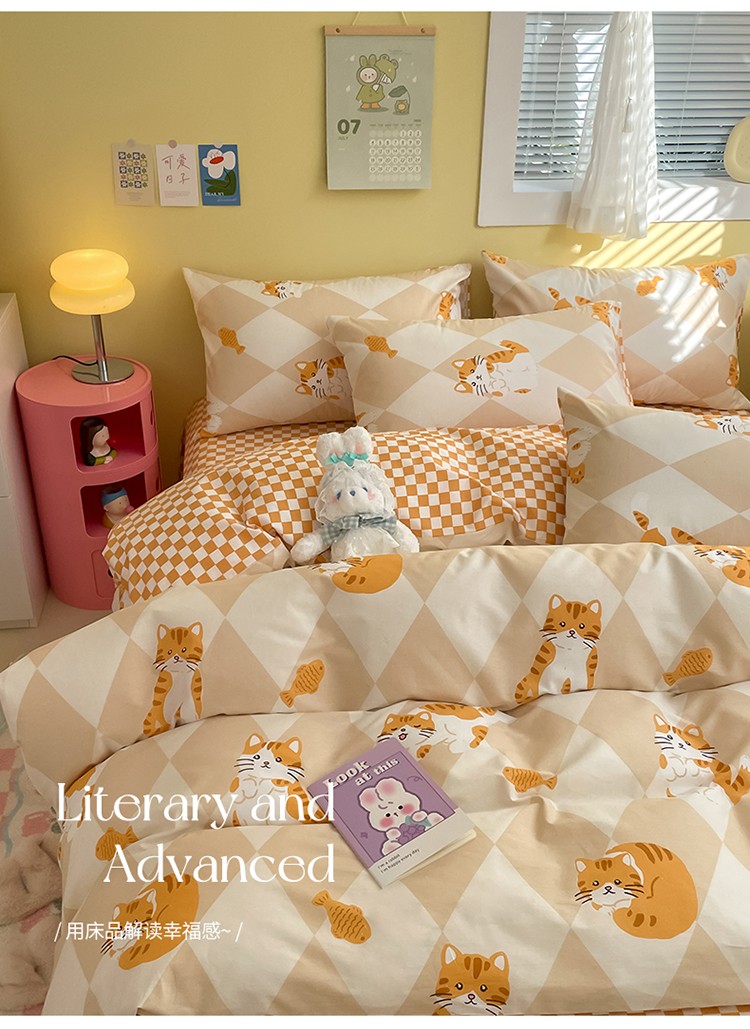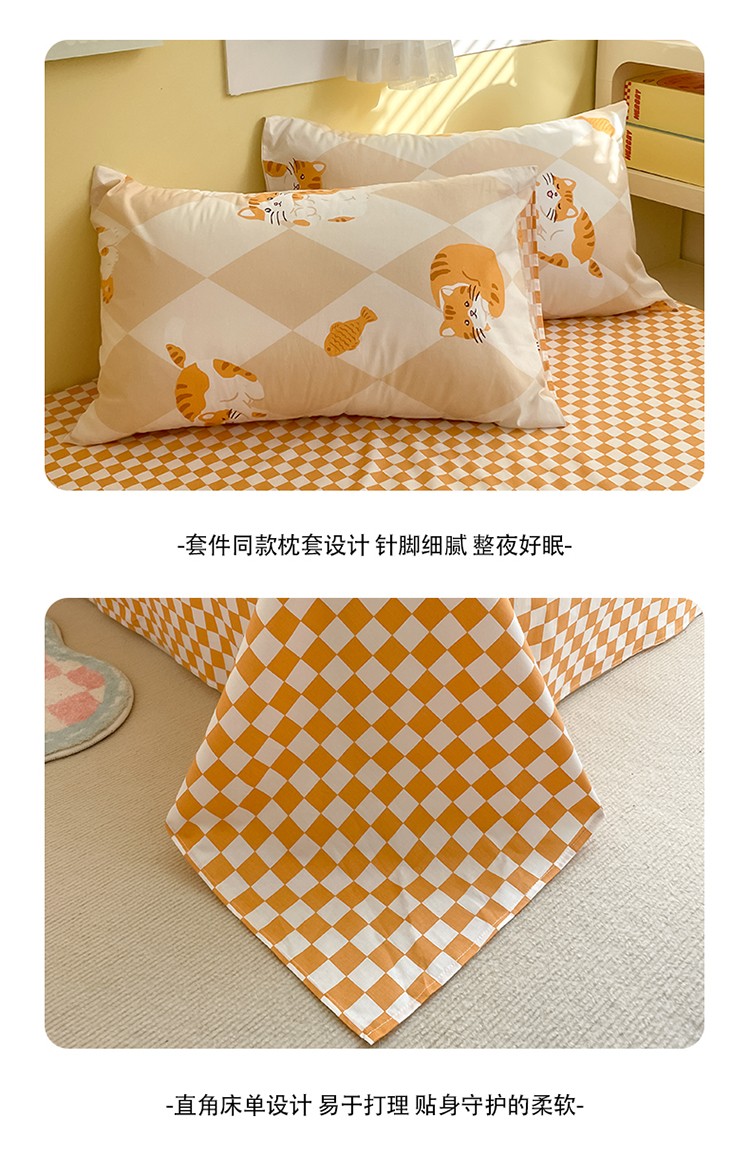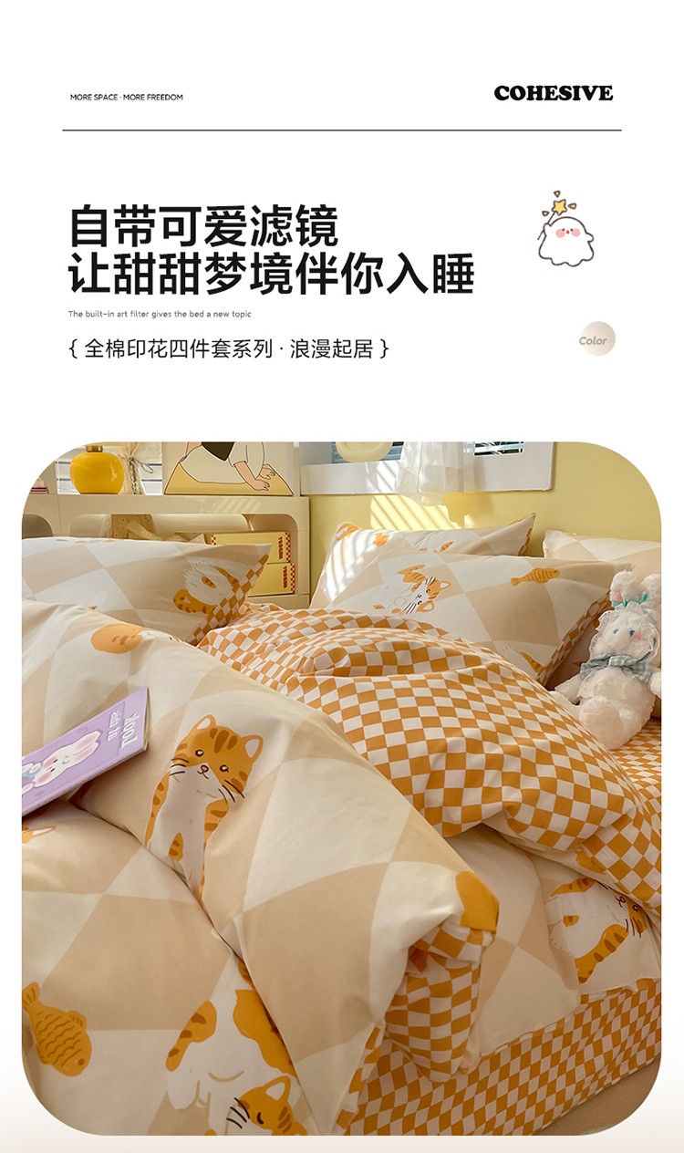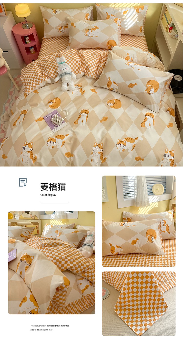 雅居纺 2023新款全棉13070小清新四件套 菱格猫