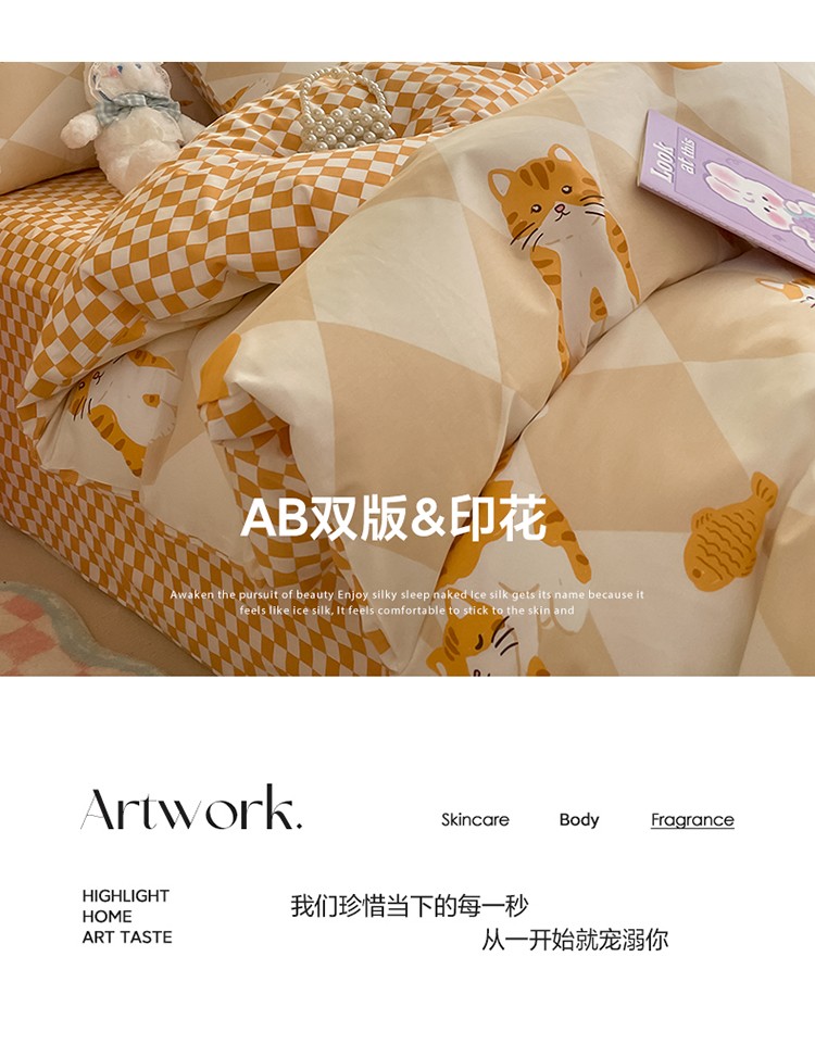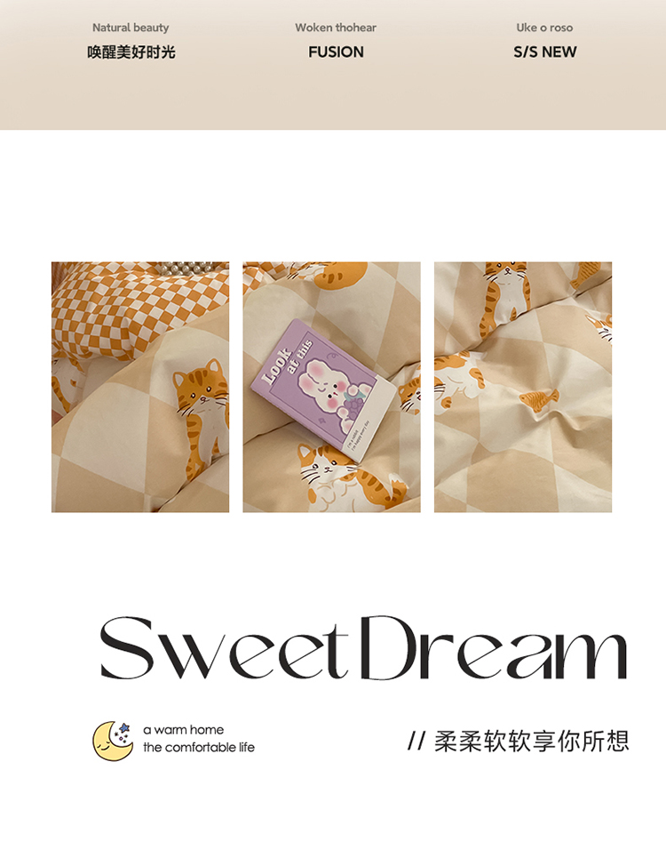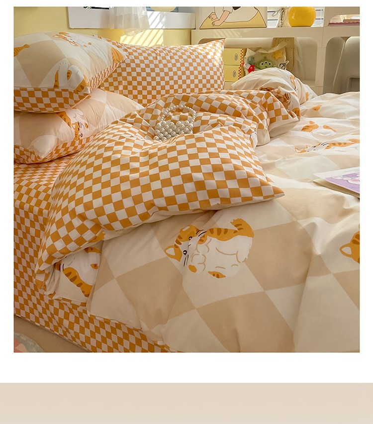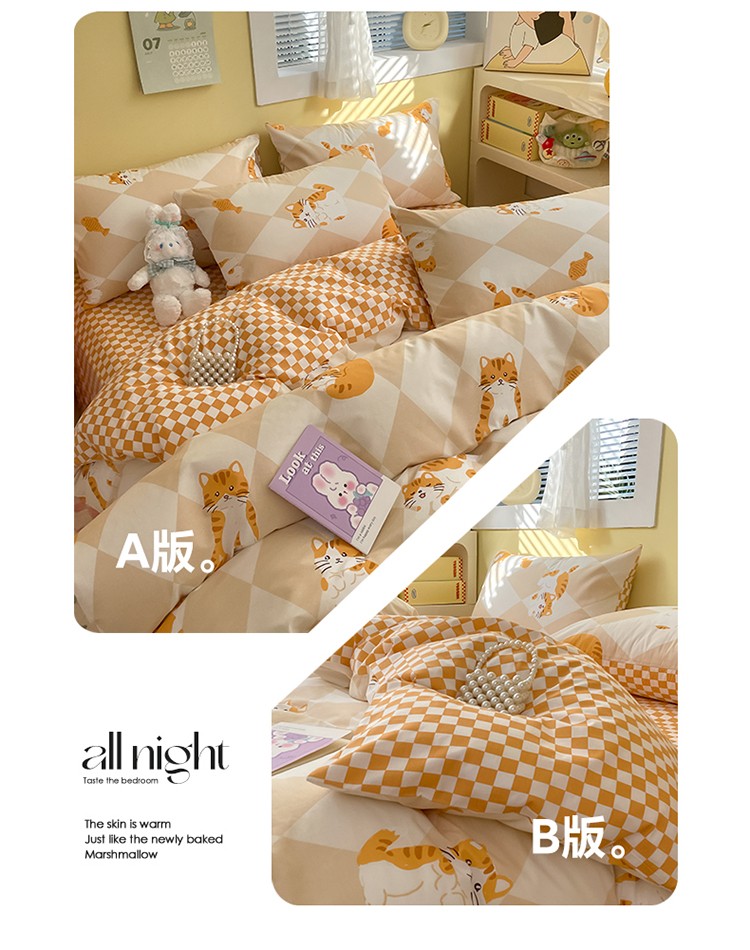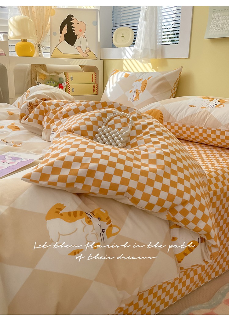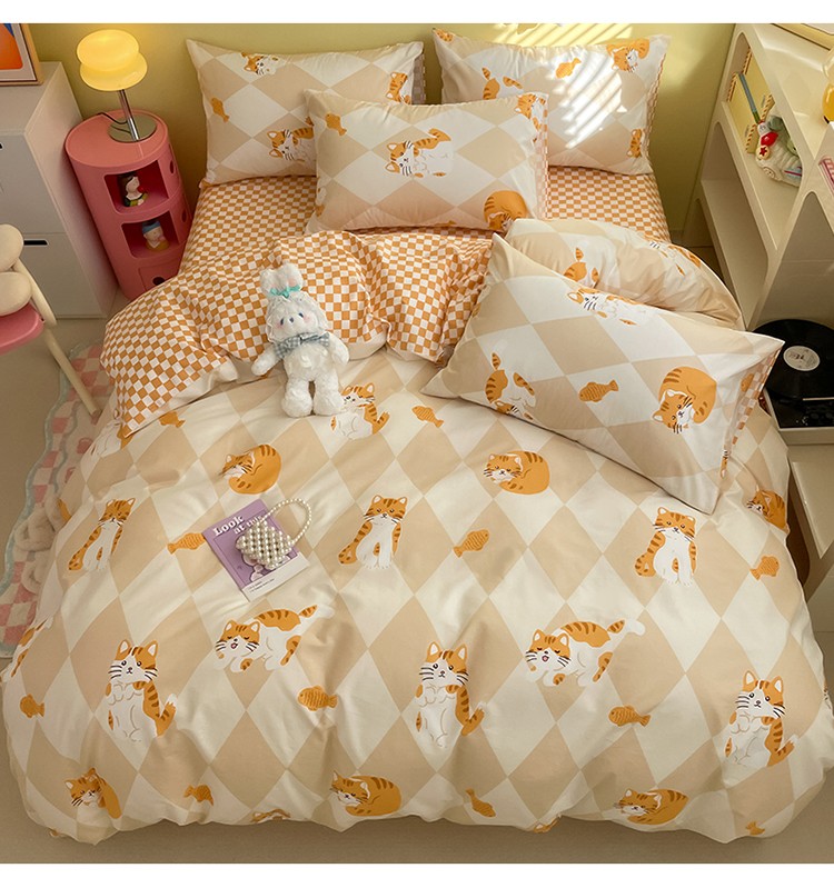 雅居纺 2023新款全棉13070小清新四件套 菱格猫