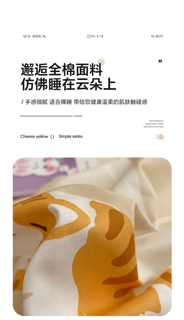 (总)雅居纺家纺 2022新款13070全棉印花四件套,波纹,多彩,简笔画,莓关系,奶油绿豹纹,倾心,数字