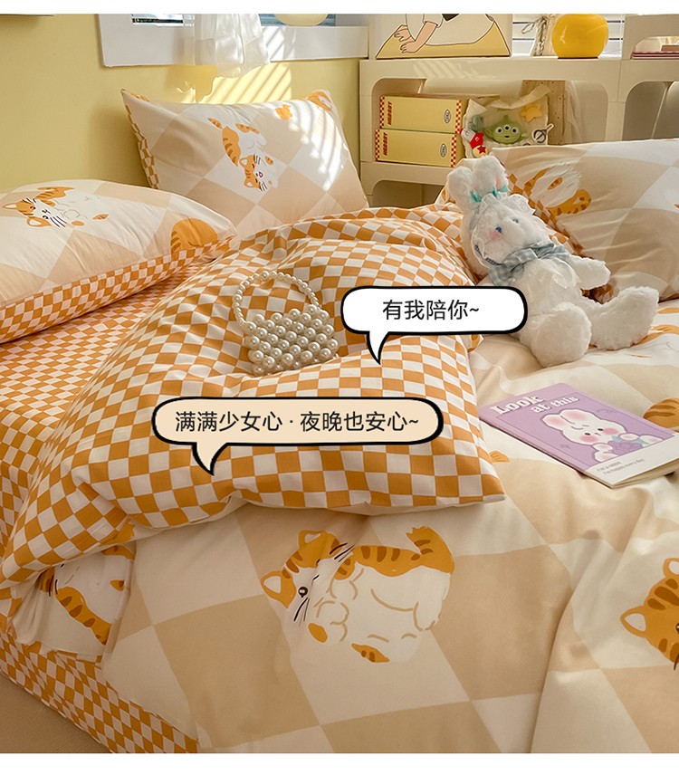商品名称:雅居纺 2023新款全棉13070小清新四件套 菱格猫