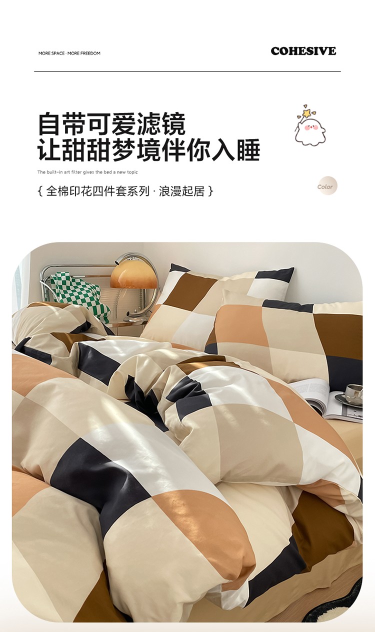 (总)雅居纺家纺 2022新款13070全棉印花四件套,波纹,多彩,简笔画,莓关系,奶油绿豹纹,倾心,数字