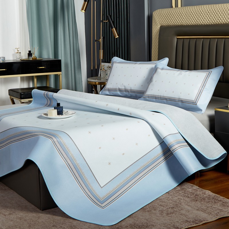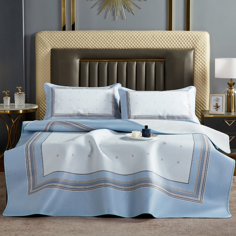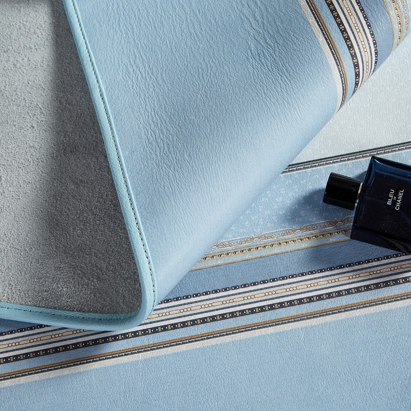 头层素彩牛皮席 水牛皮 牛皮凉席 头层牛皮 凉席,湖蓝色
