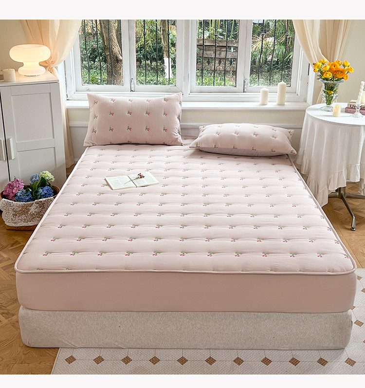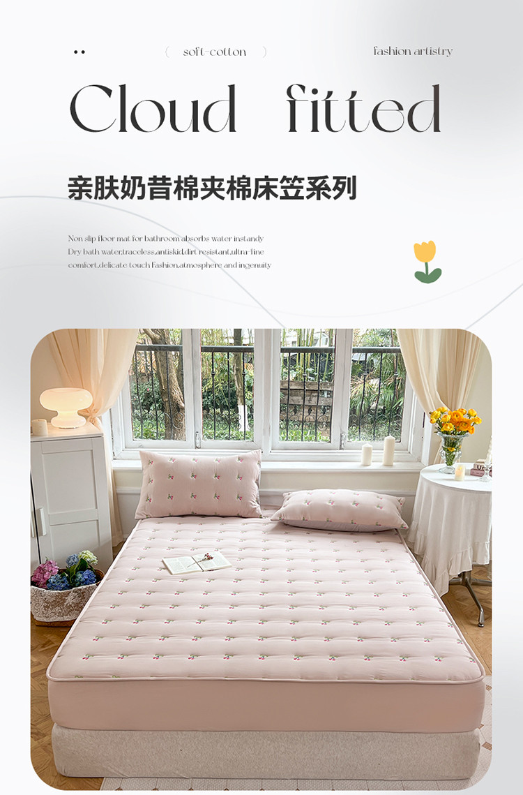 尊康家纺(原磊科) 2024新款亲肤奶昔棉夹棉床裙-风雅 风雅-黛粉,风雅-黛粉