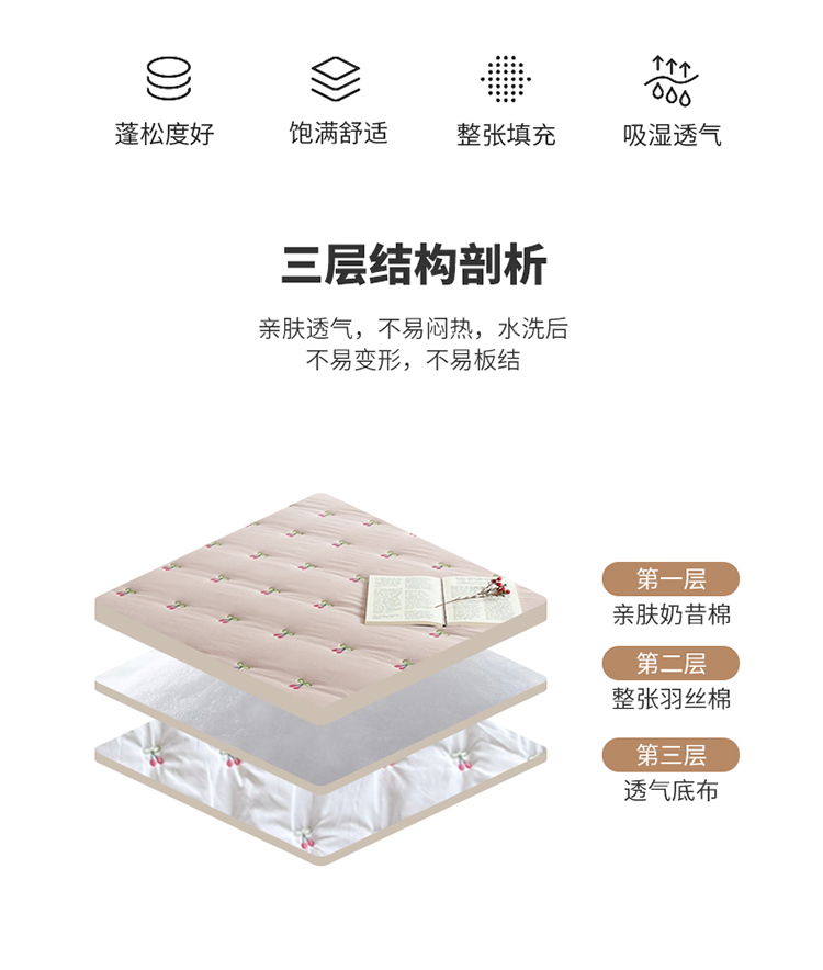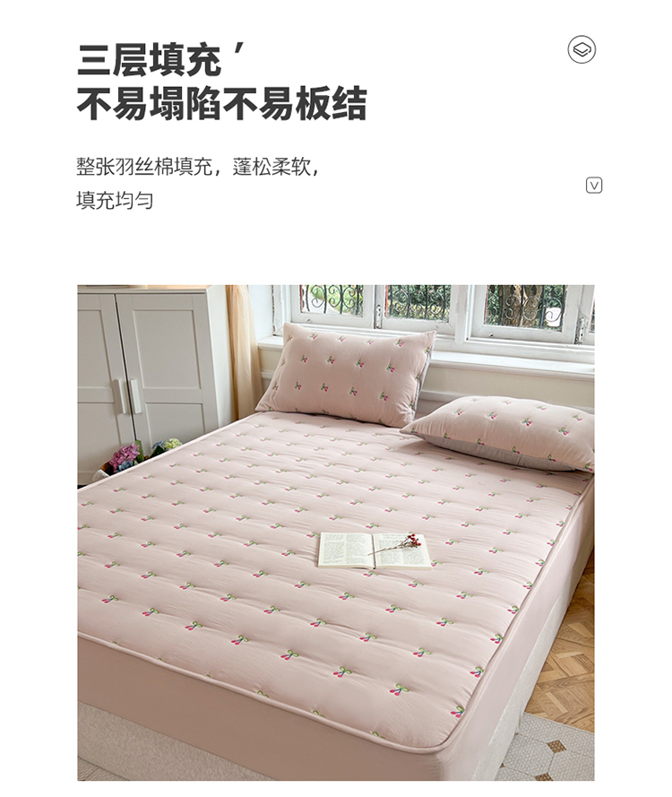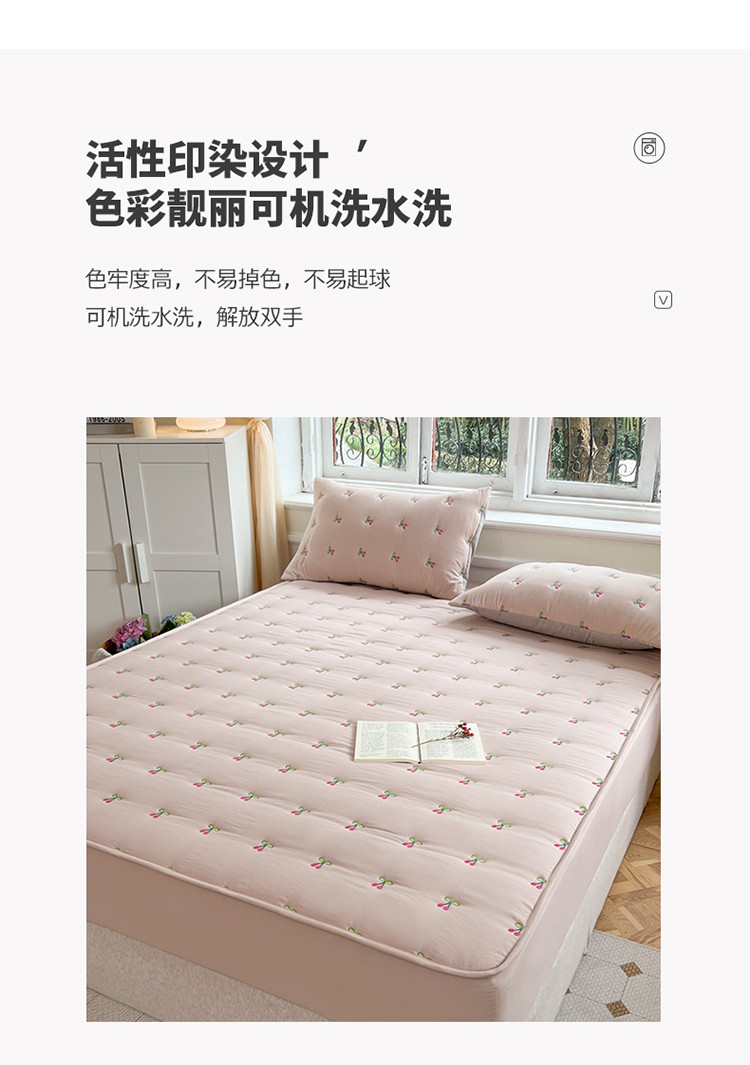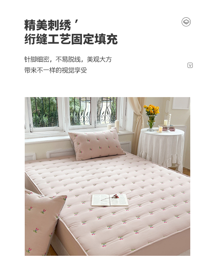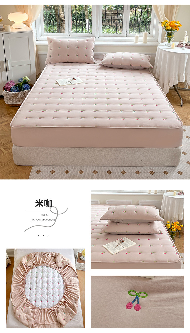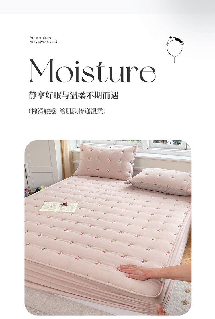 商品名称:尊康家纺(原磊科) 2024亲肤奶昔棉夹棉床笠樱桃系列 樱桃-米咖