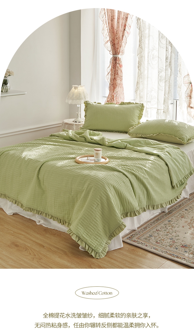 (总)风向标2023新款全棉水洗皱皱纱花边夏被