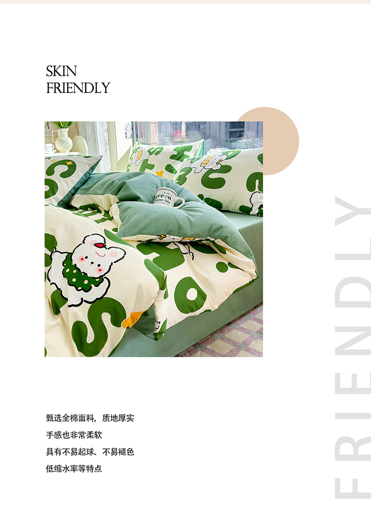 当前位置: 91家纺网 > 商品网购 > 床品套件 > 四件套 > 全棉普通四件套 > 琪格格2023新款全棉40支13372小清新四件套系列 皮皮兔