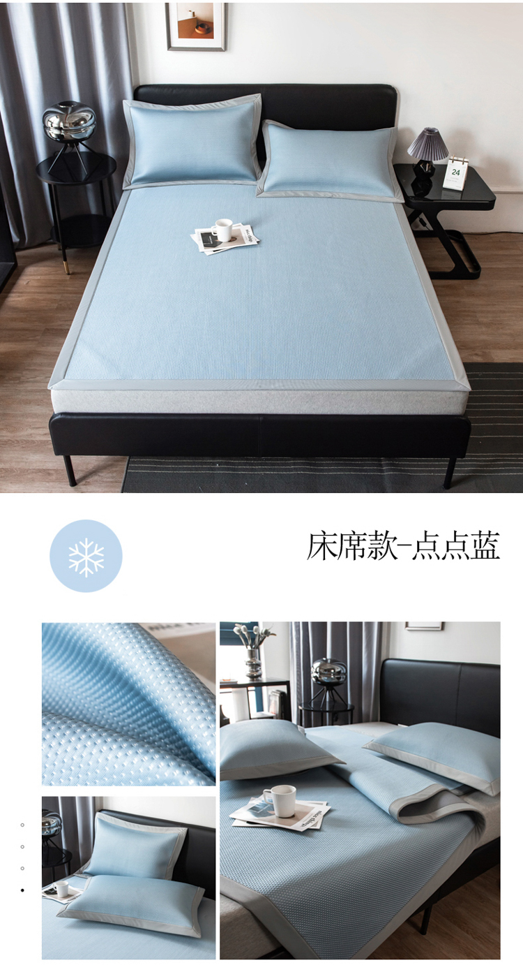鑫帝 凉感丝软凉席三件套--点点席 床席点点 蓝