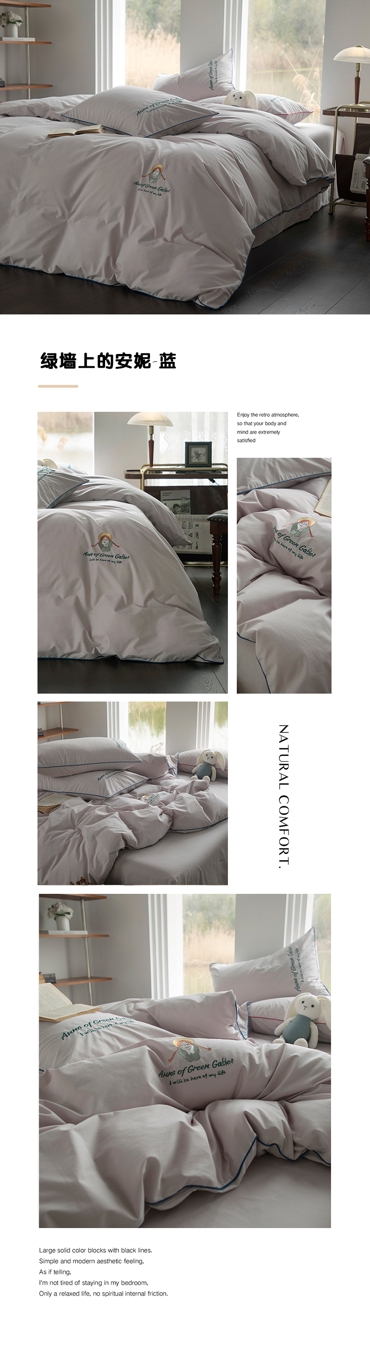 当前位置: 91家纺网 > 商品网购 > 床品套件 > 四件套 > 水洗棉四件套 > 网客家纺 2024新款水洗棉刺绣四件套 绿墙上的安妮-蓝