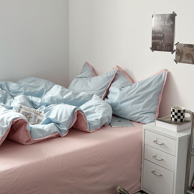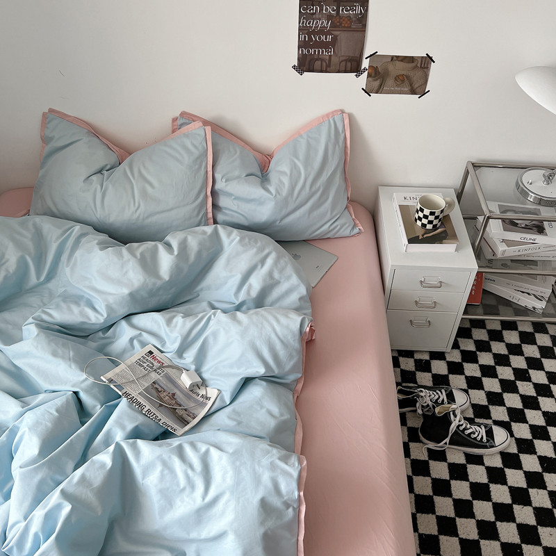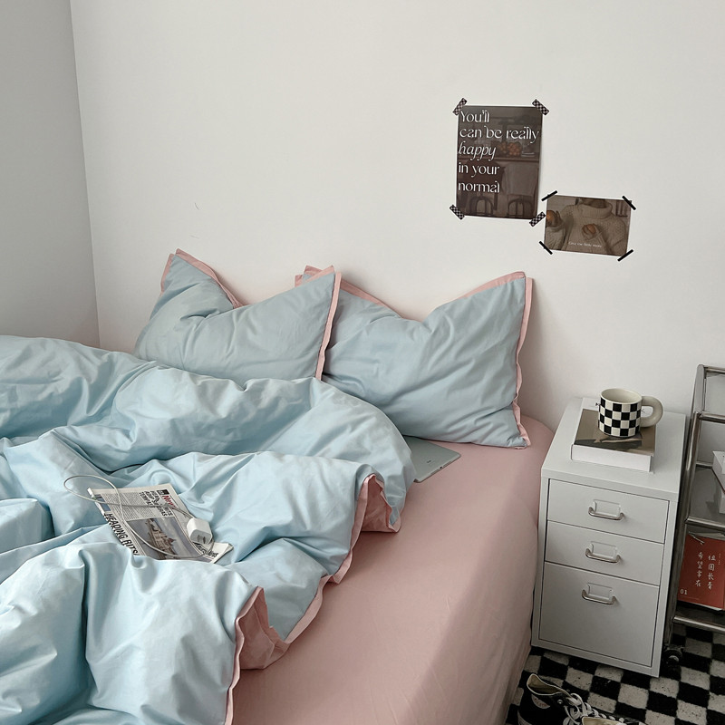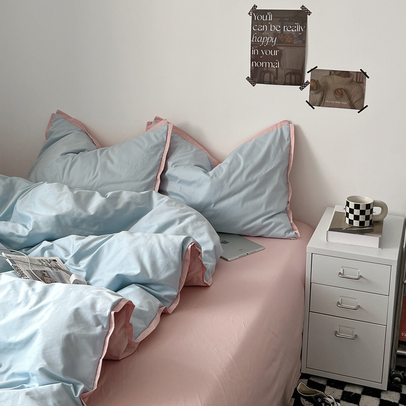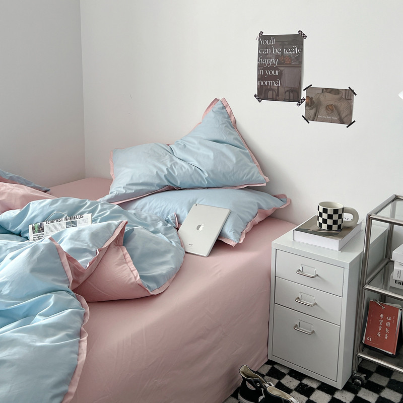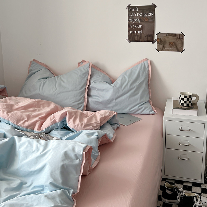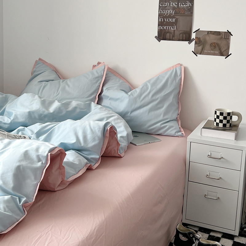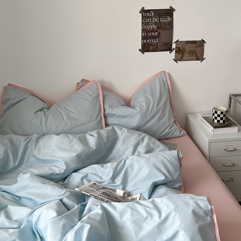 商品名称:安莱生活 2023新款 60贡缎双拼小宽边四件套 淡蓝双拼嫩粉