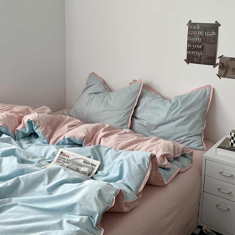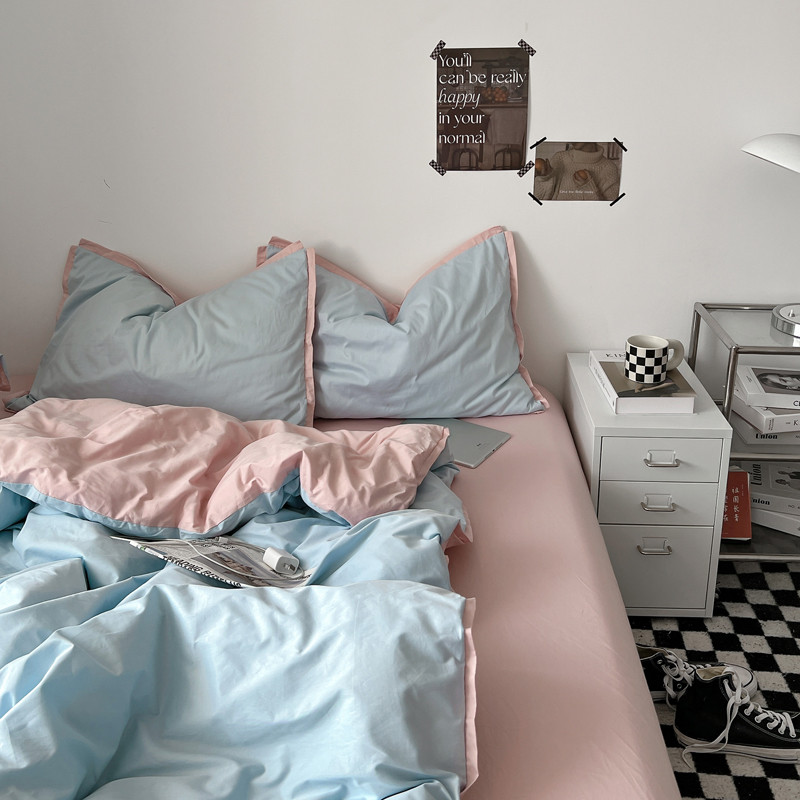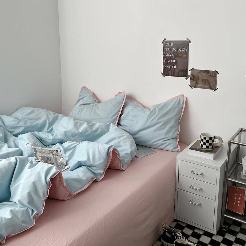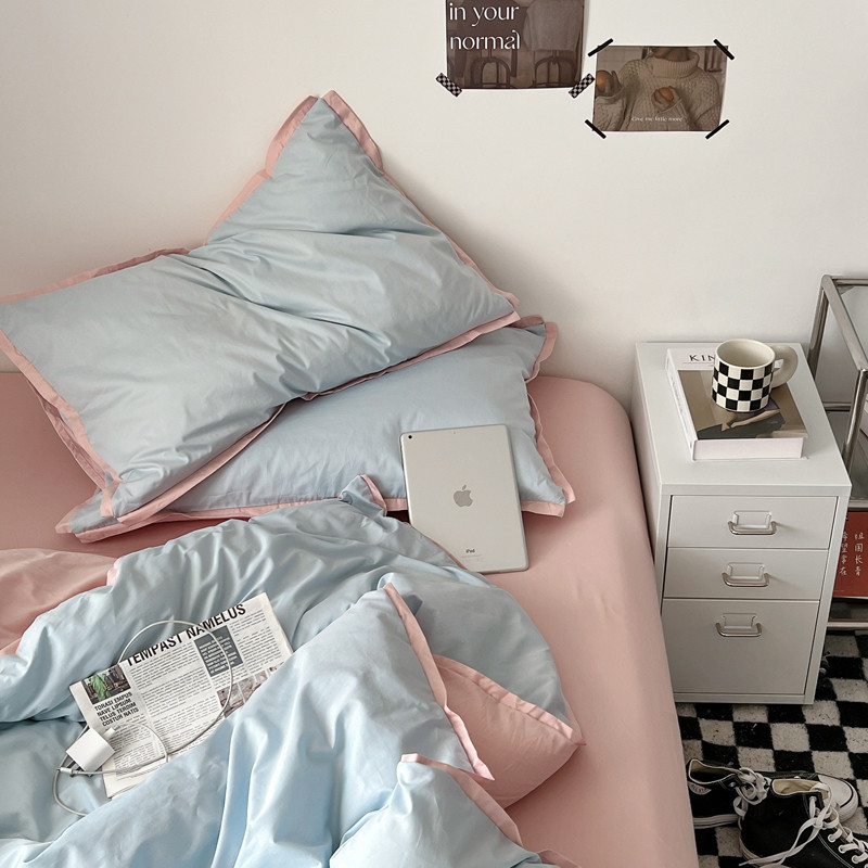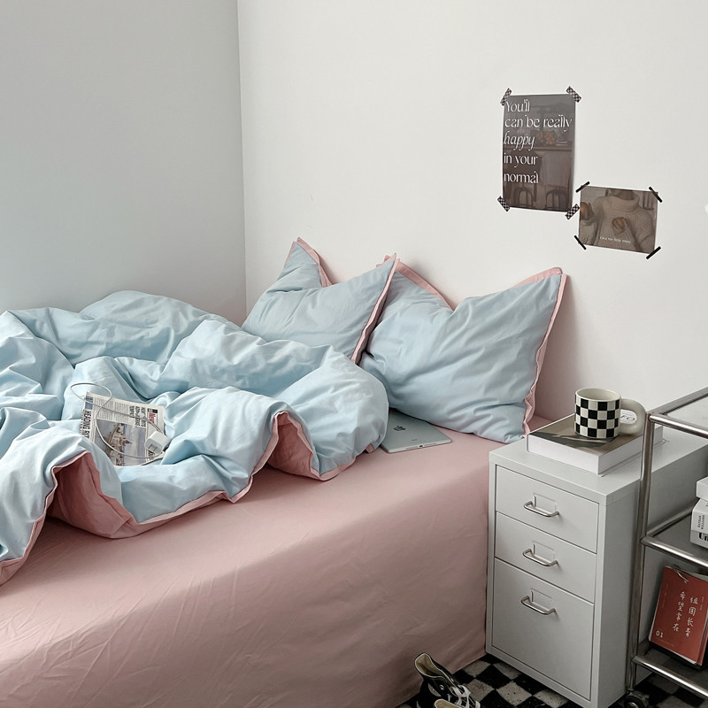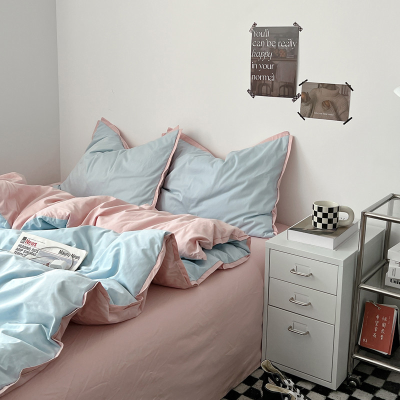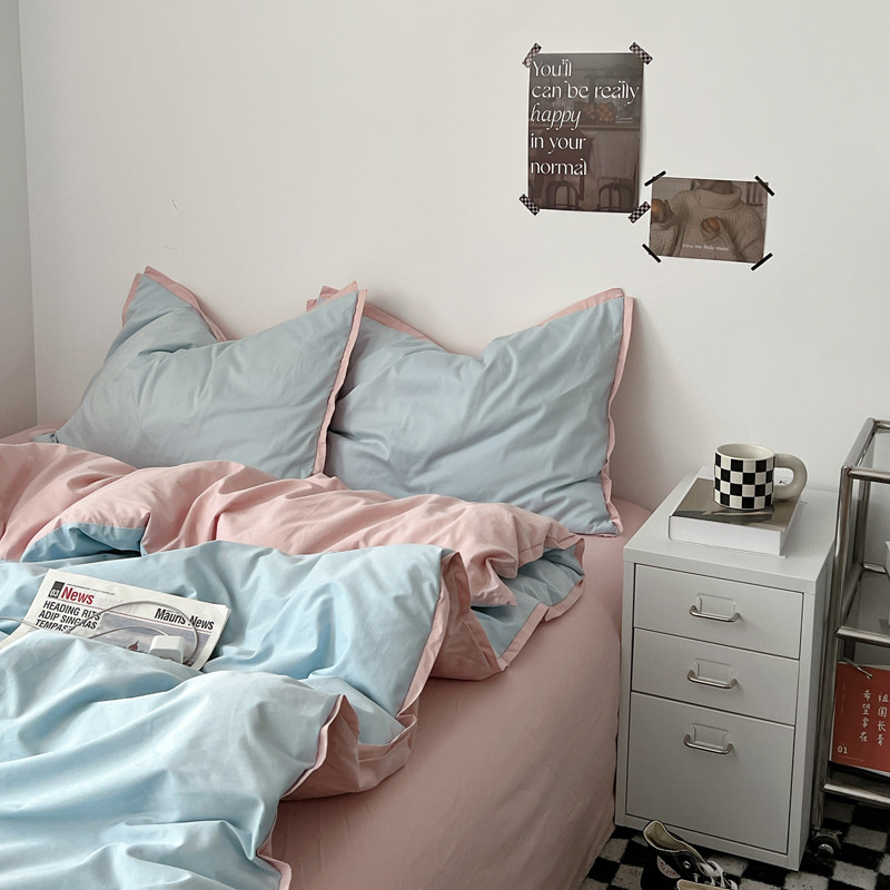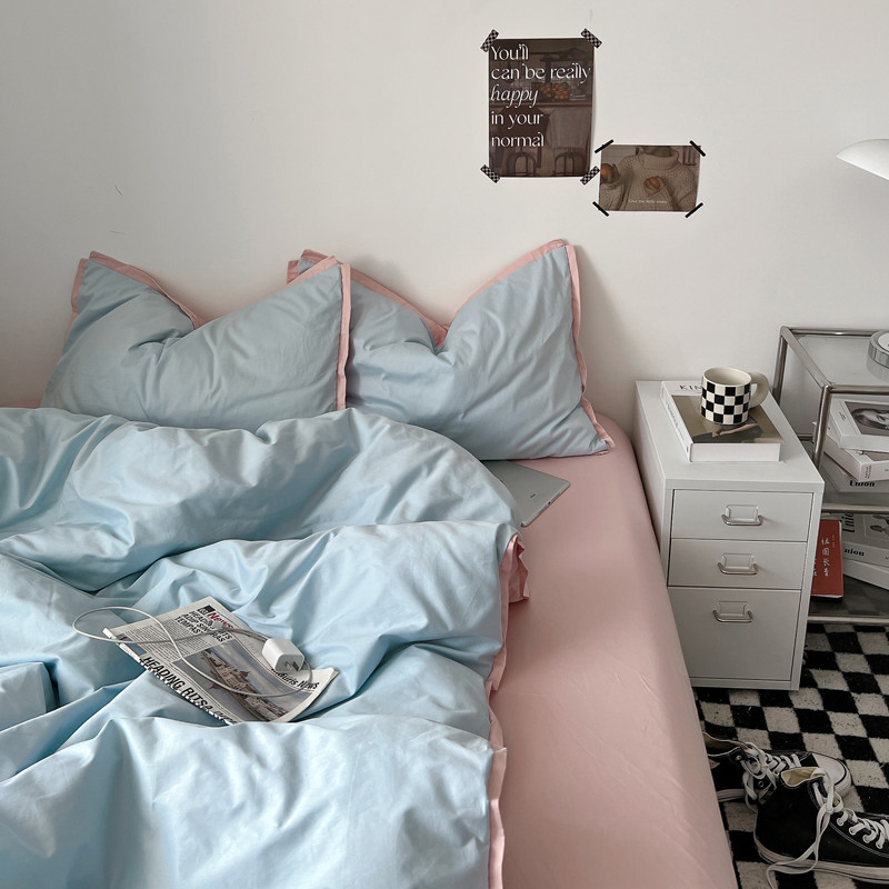 商品名称:安莱生活 2023新款 60贡缎双拼小宽边四件套 淡蓝双拼嫩粉