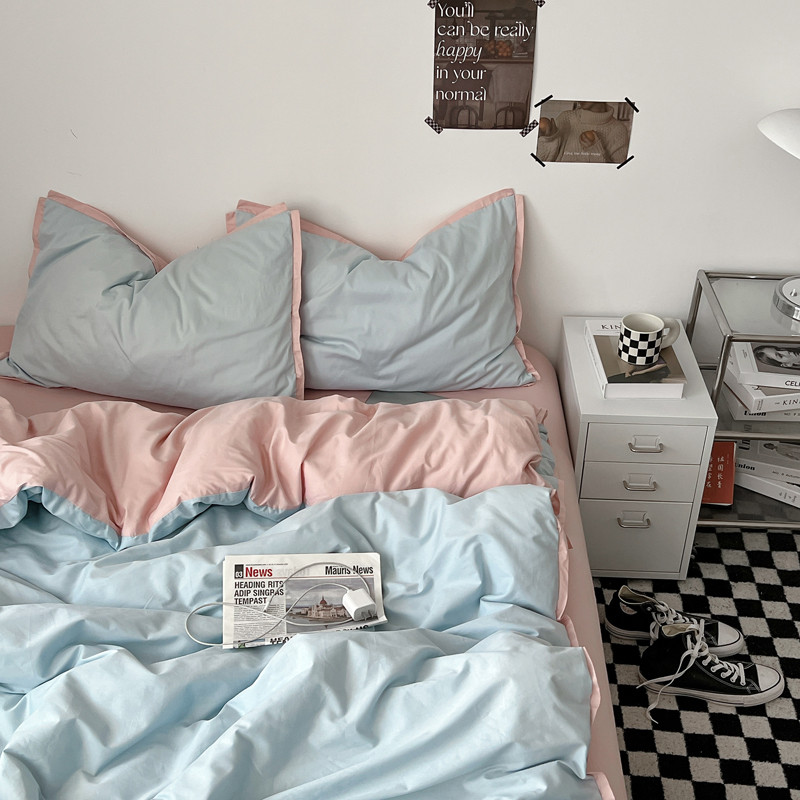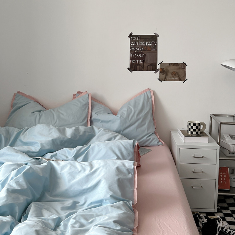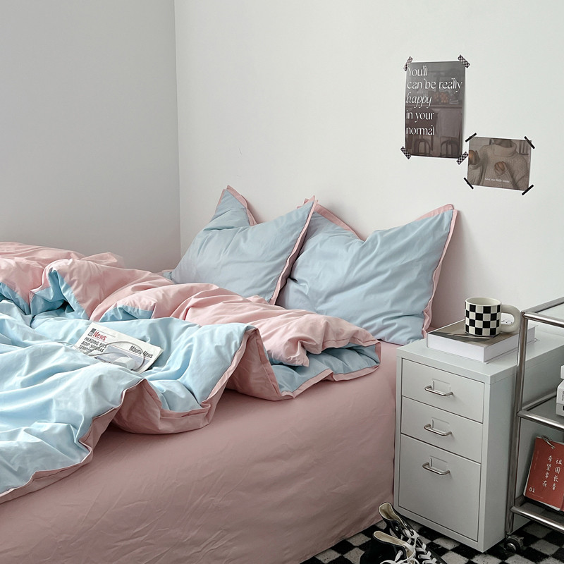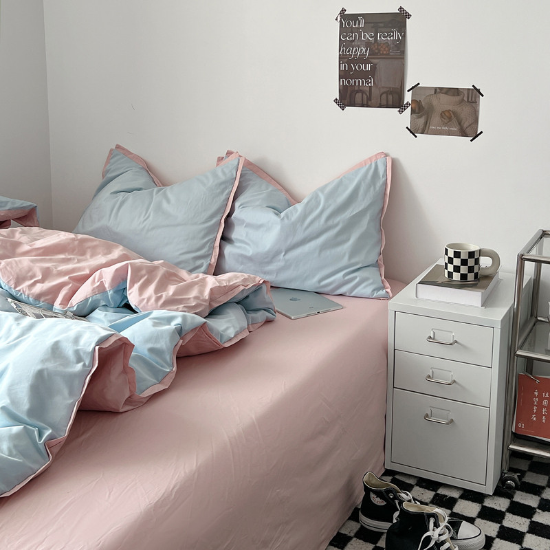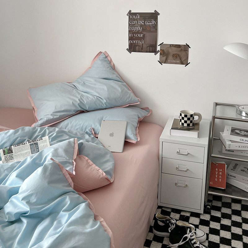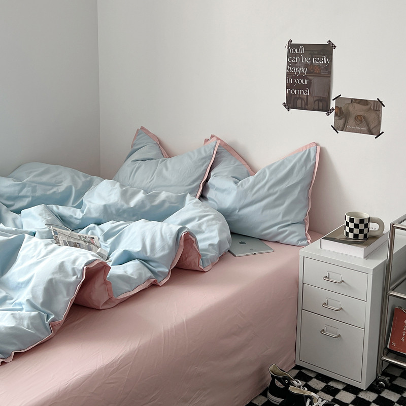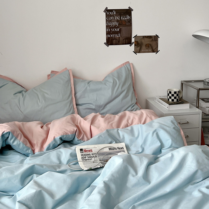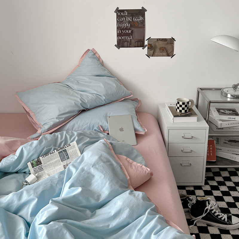 商品名称:安莱生活 2023新款 60贡缎双拼小宽边四件套 淡蓝双拼嫩粉