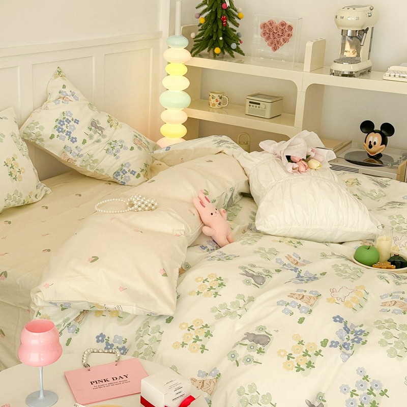 (总)昔可 2023新款全棉四件套-第五批,春日采花小兔,复古波西,落樱紫花,绿野小兔,排排郁金香,芍药女孩,叶子樱桃