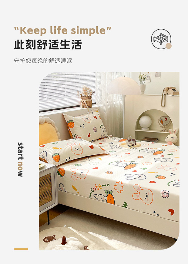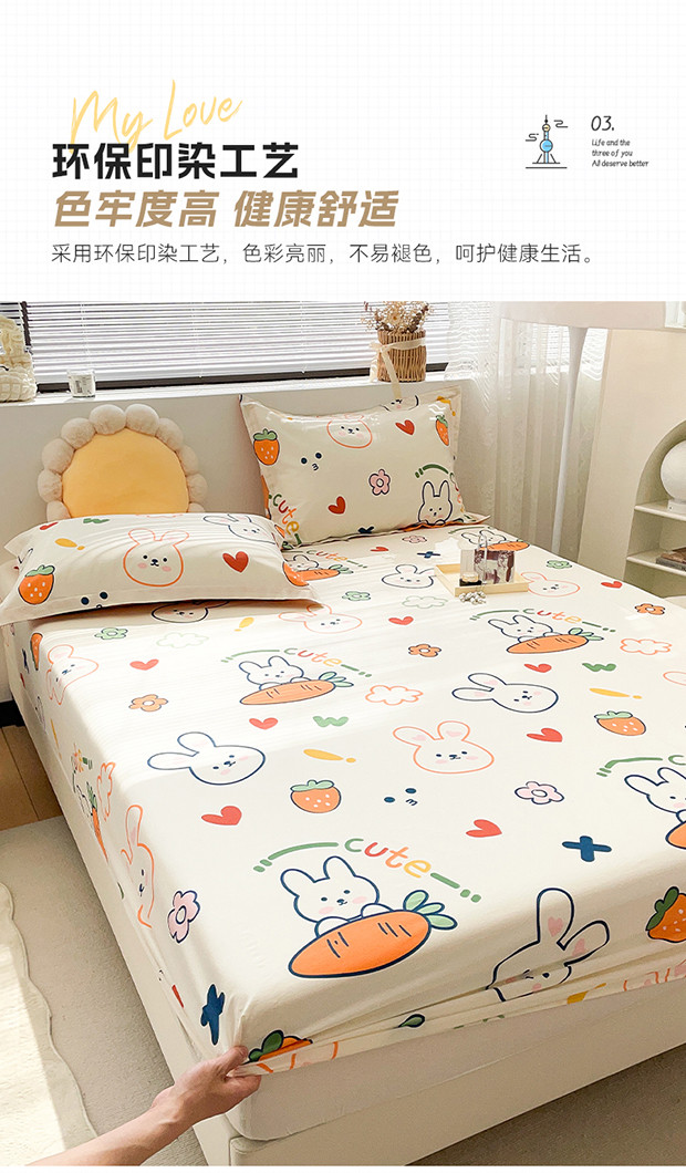 商品名称:绵庭 2023新款 全棉印花床笠 萝卜兔