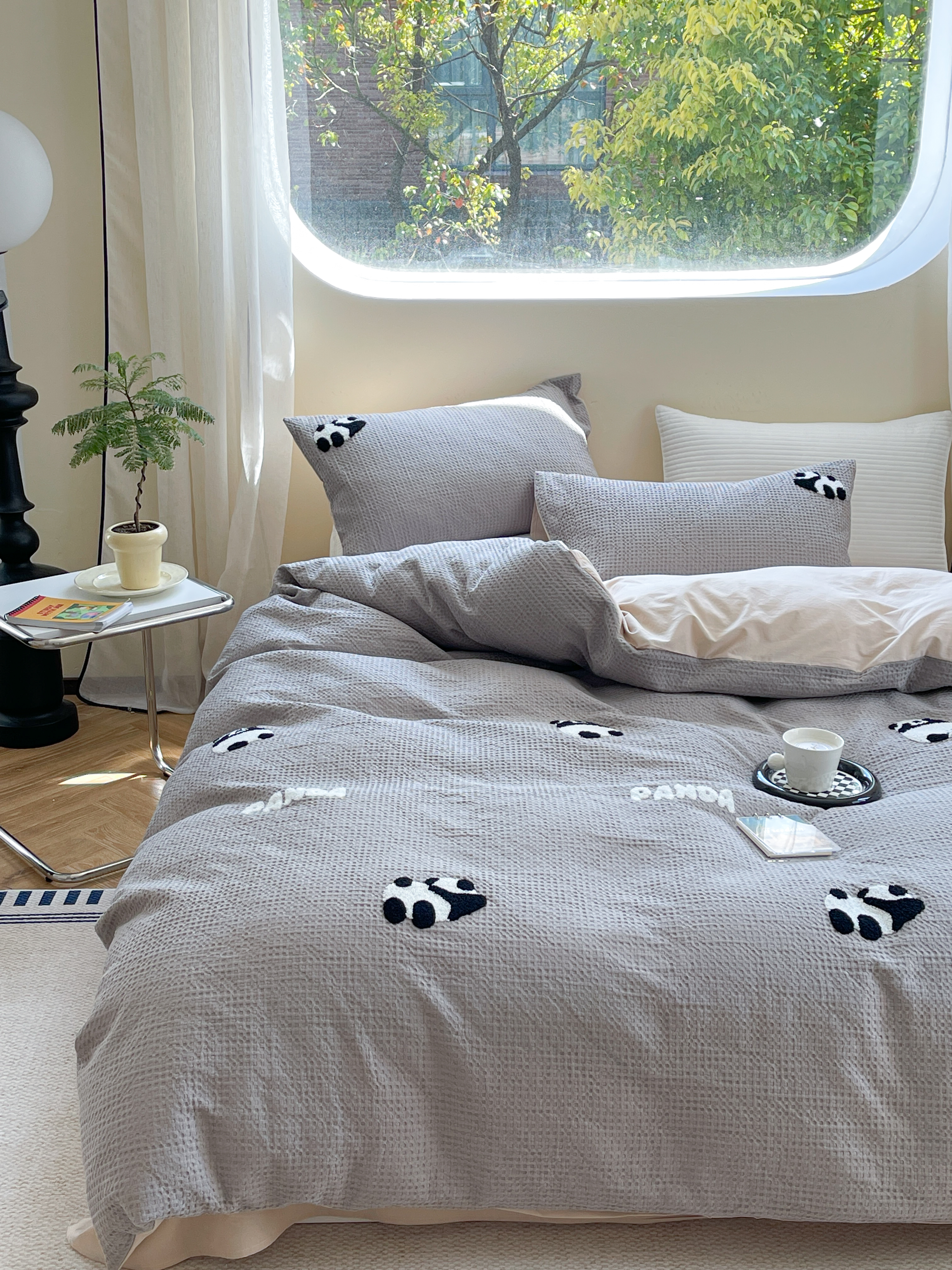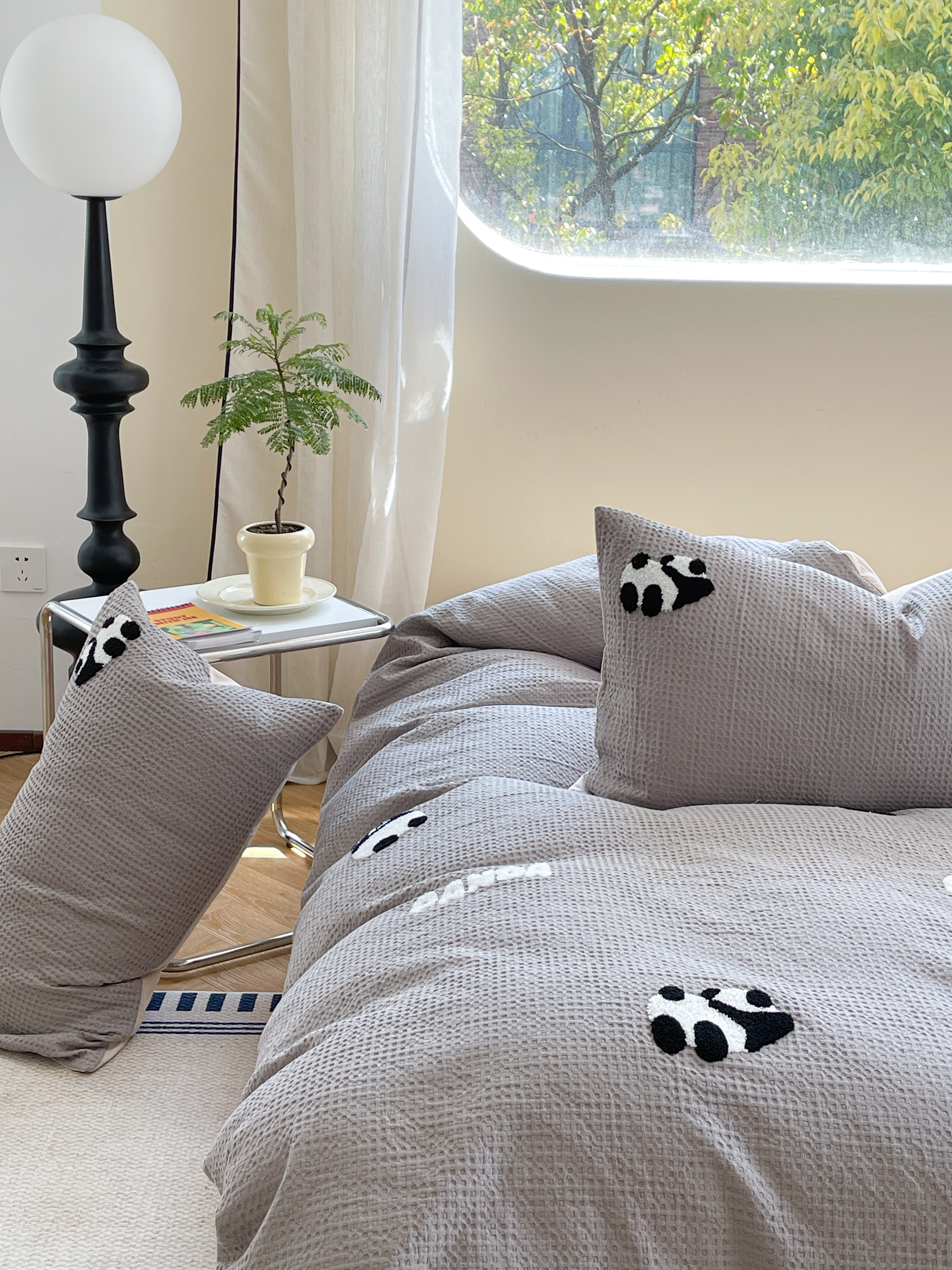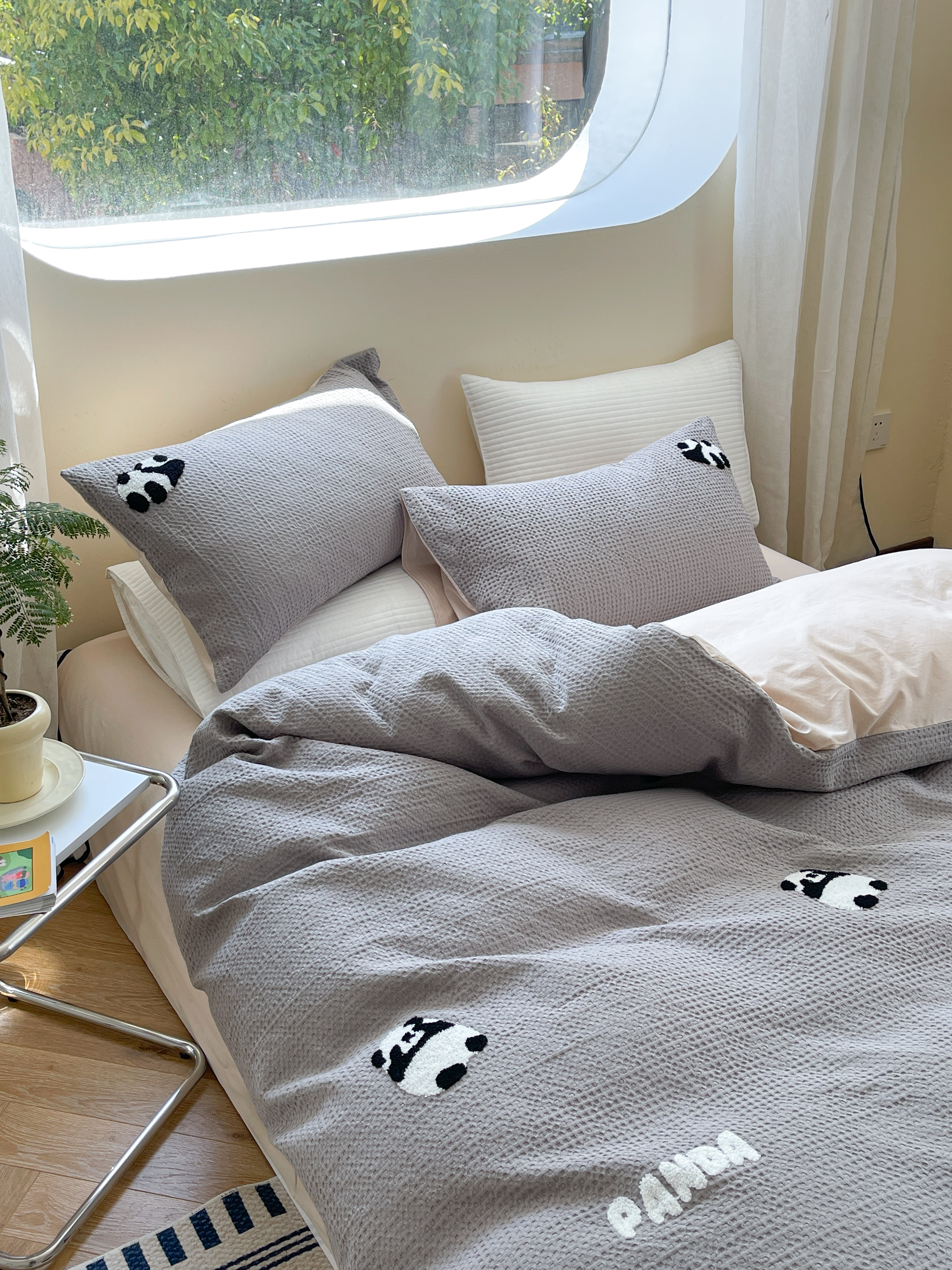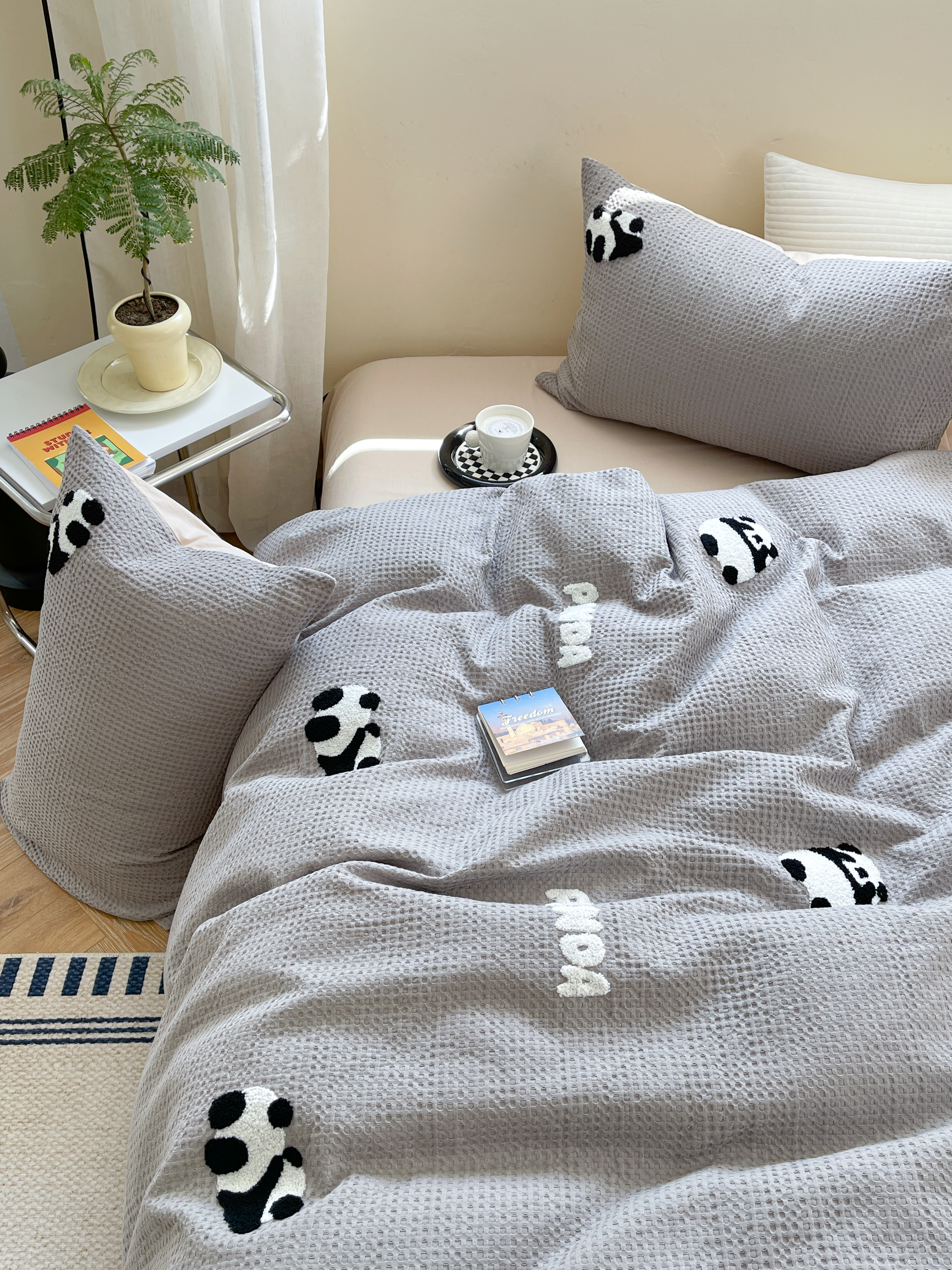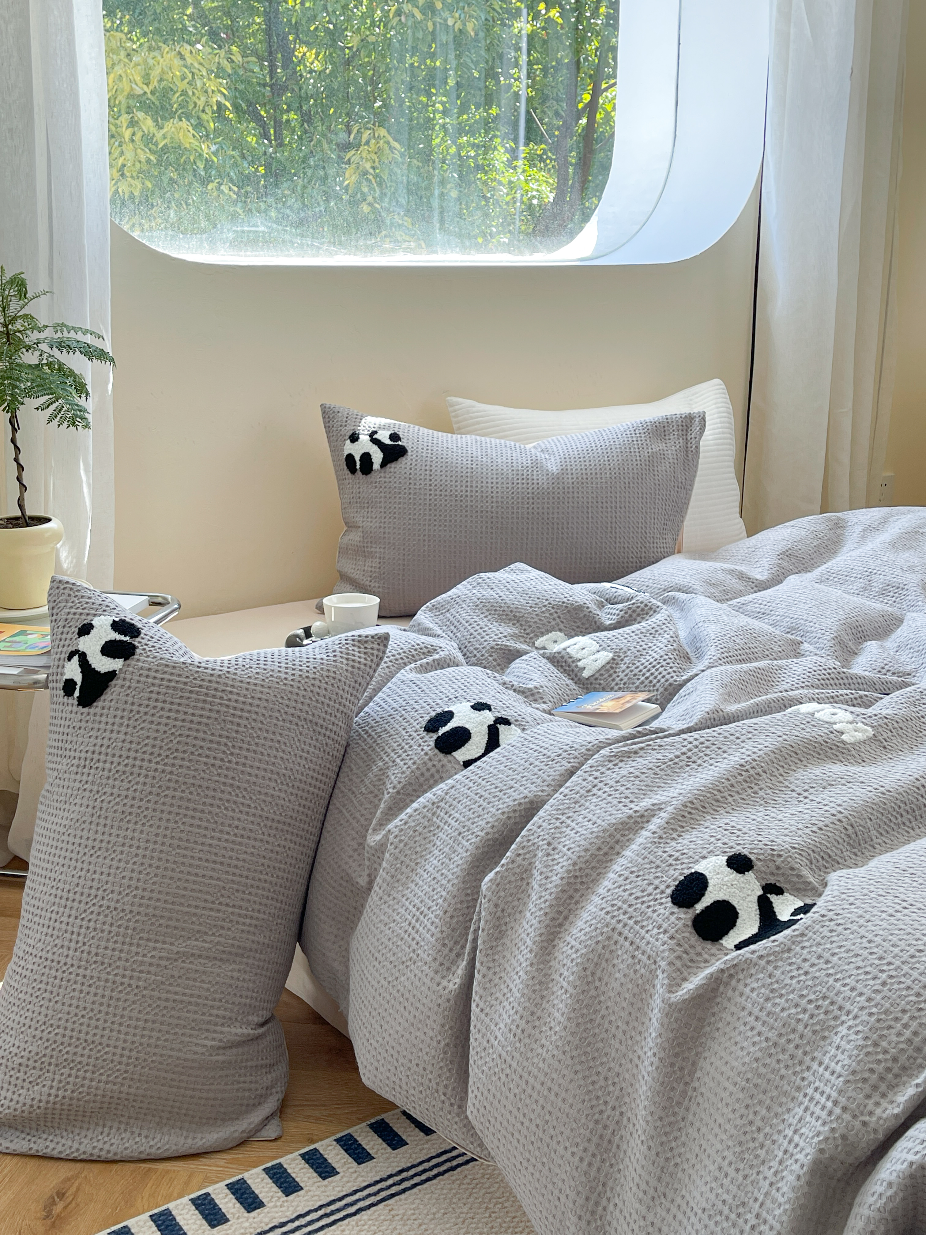柚子 2023新款全棉高克重华夫格刺绣四件套 华夫格-熊猫