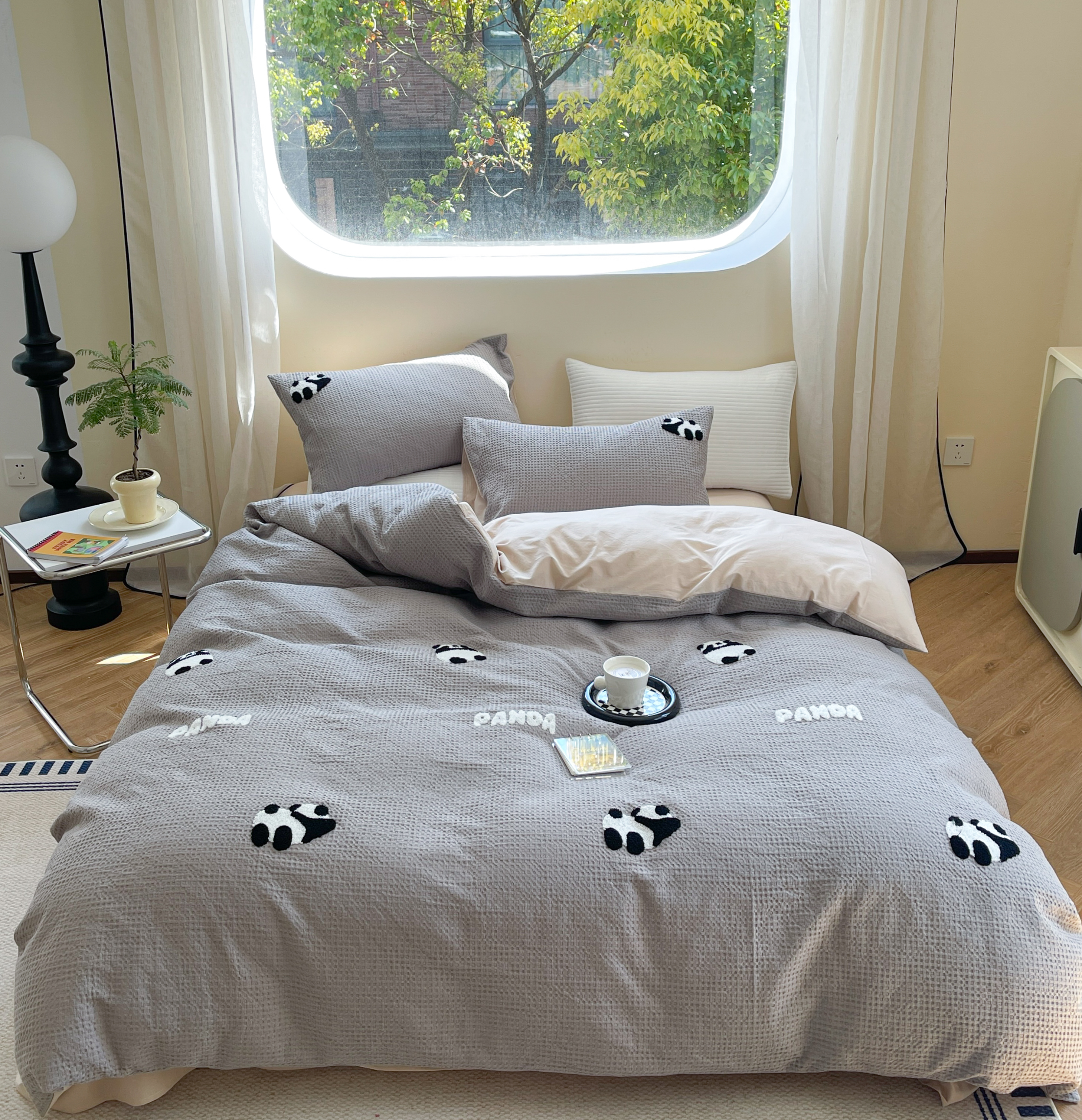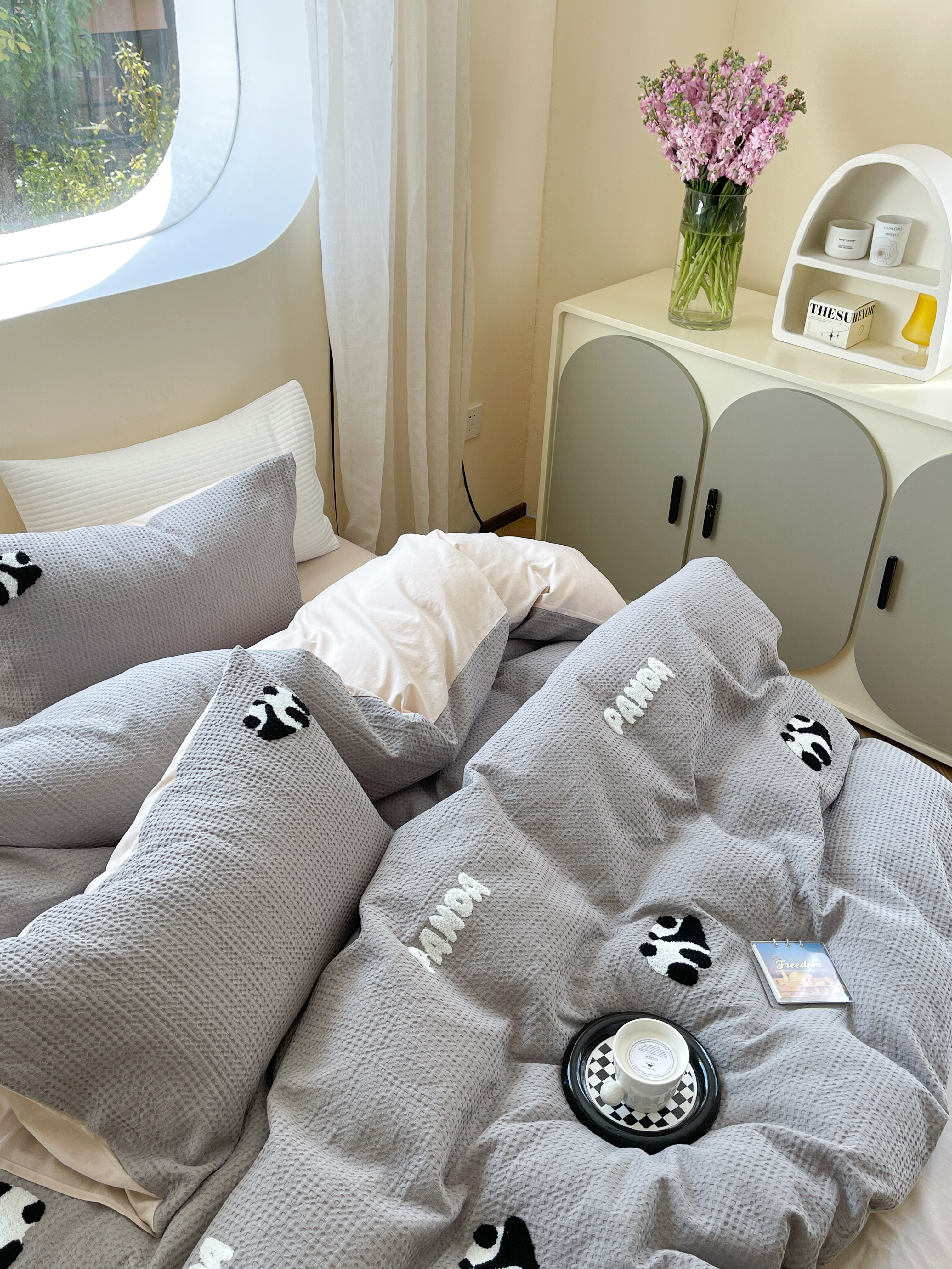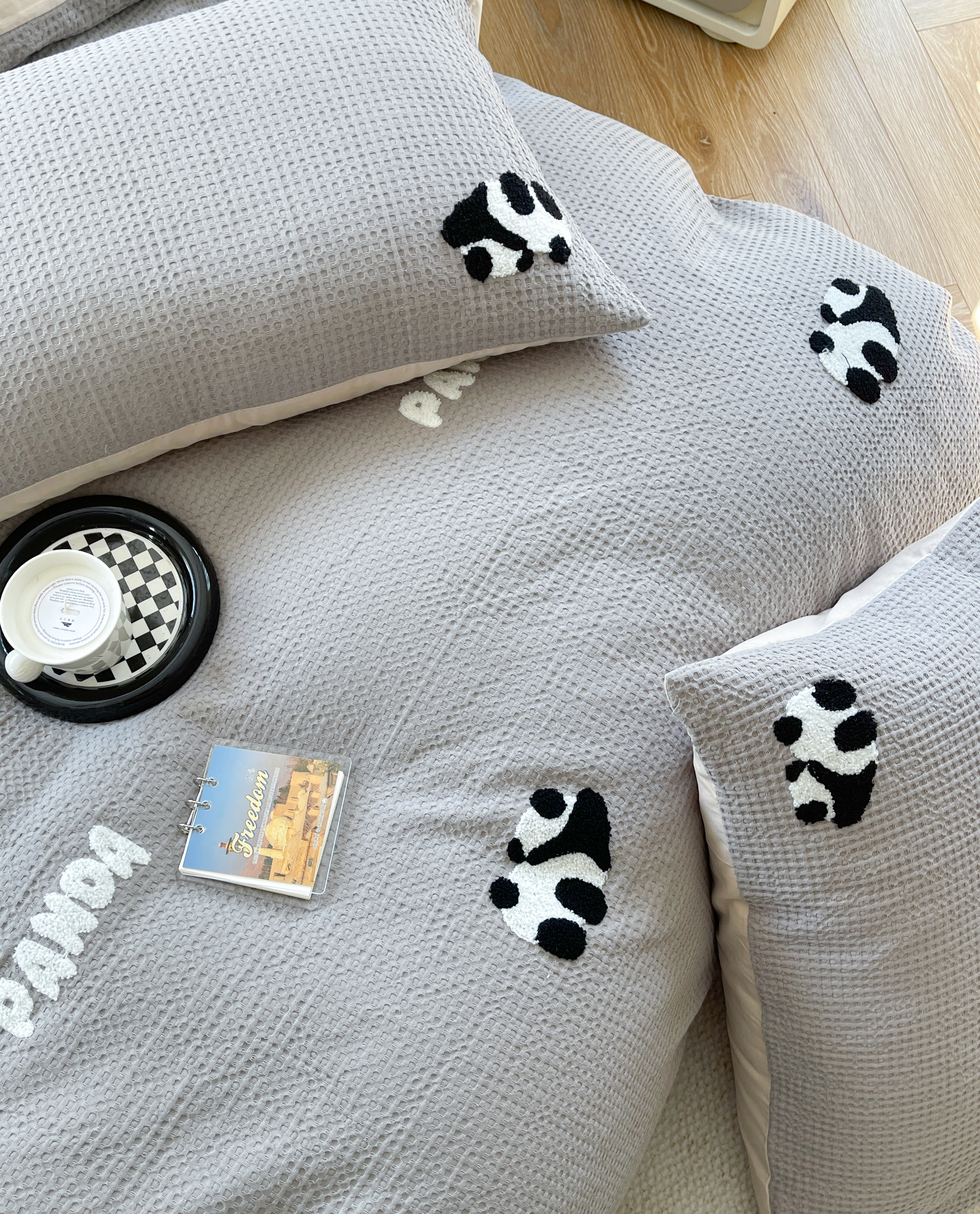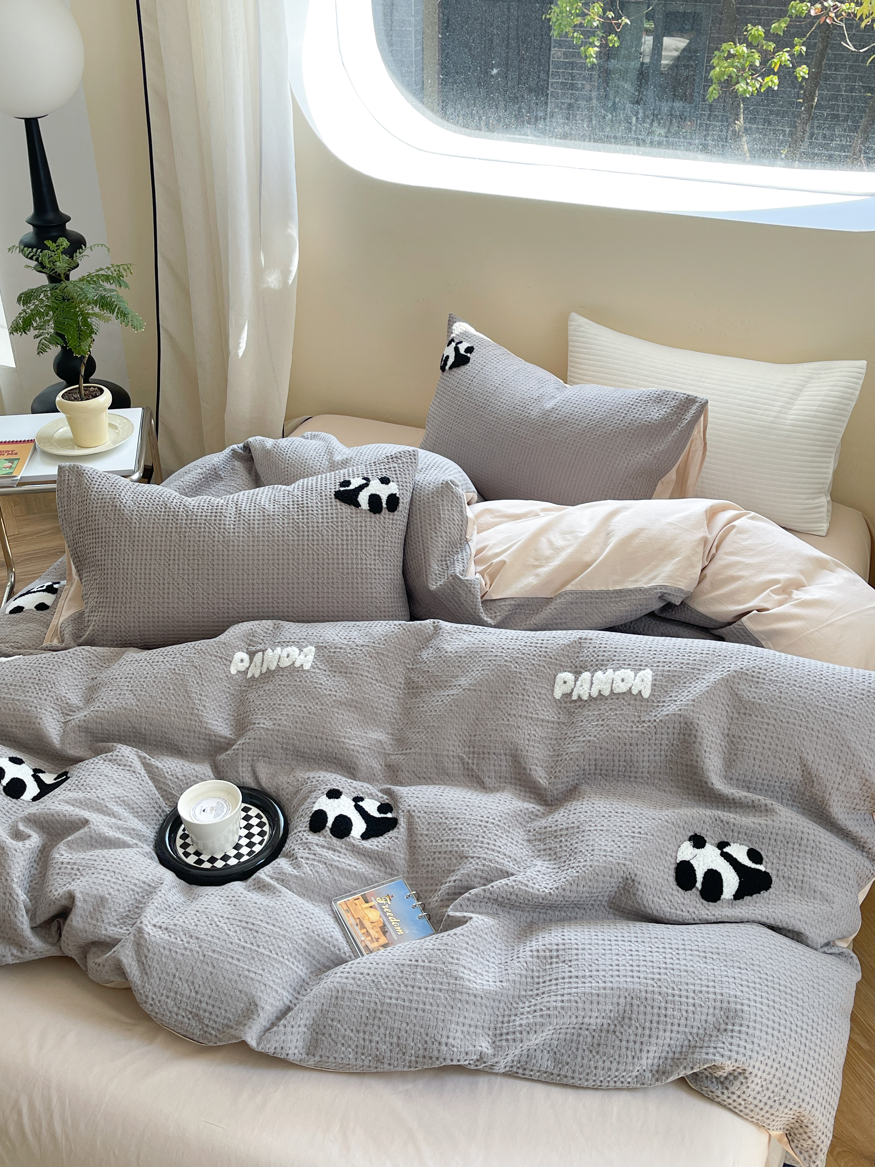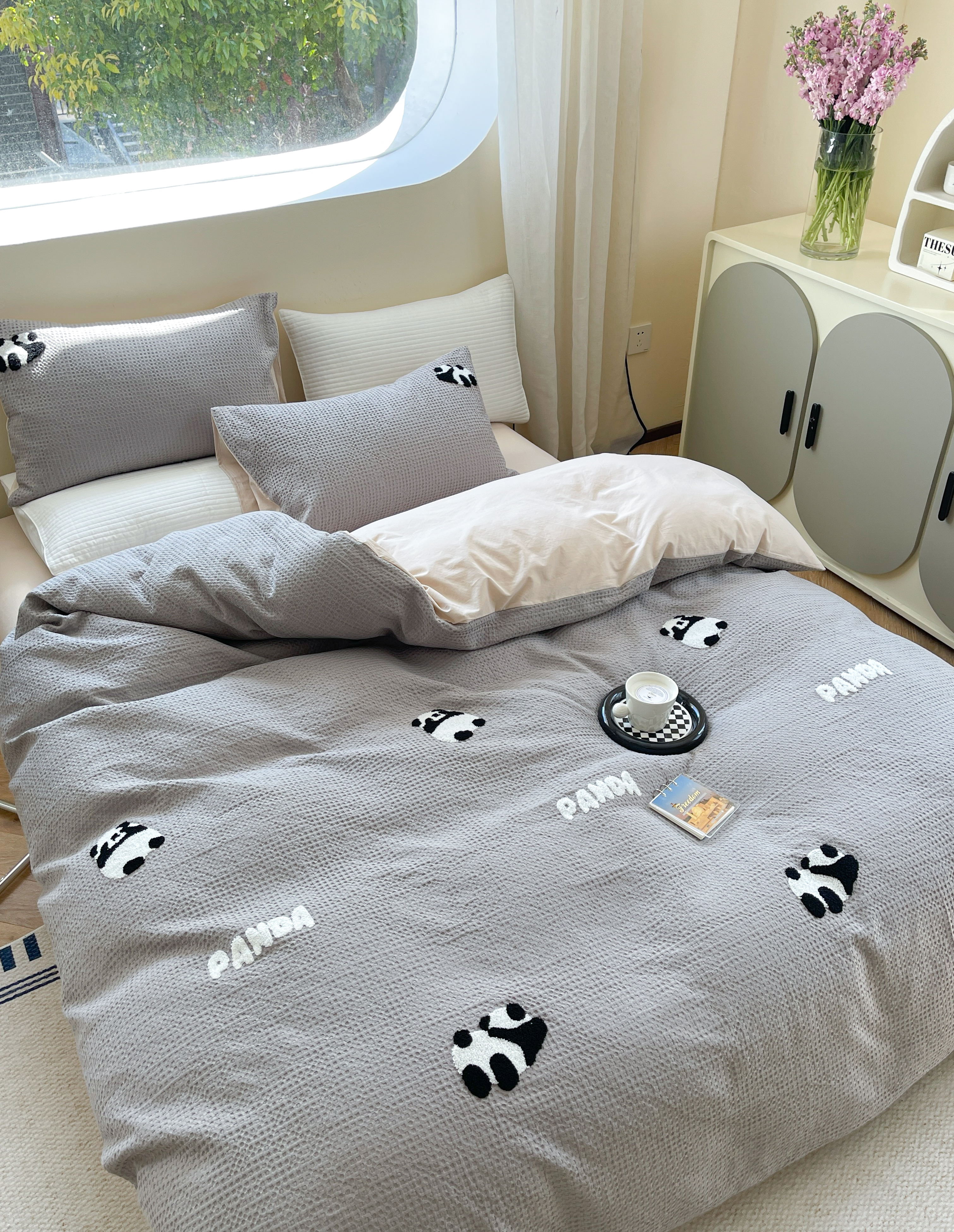柚子 2023新款全棉高克重华夫格刺绣四件套 华夫格-熊猫