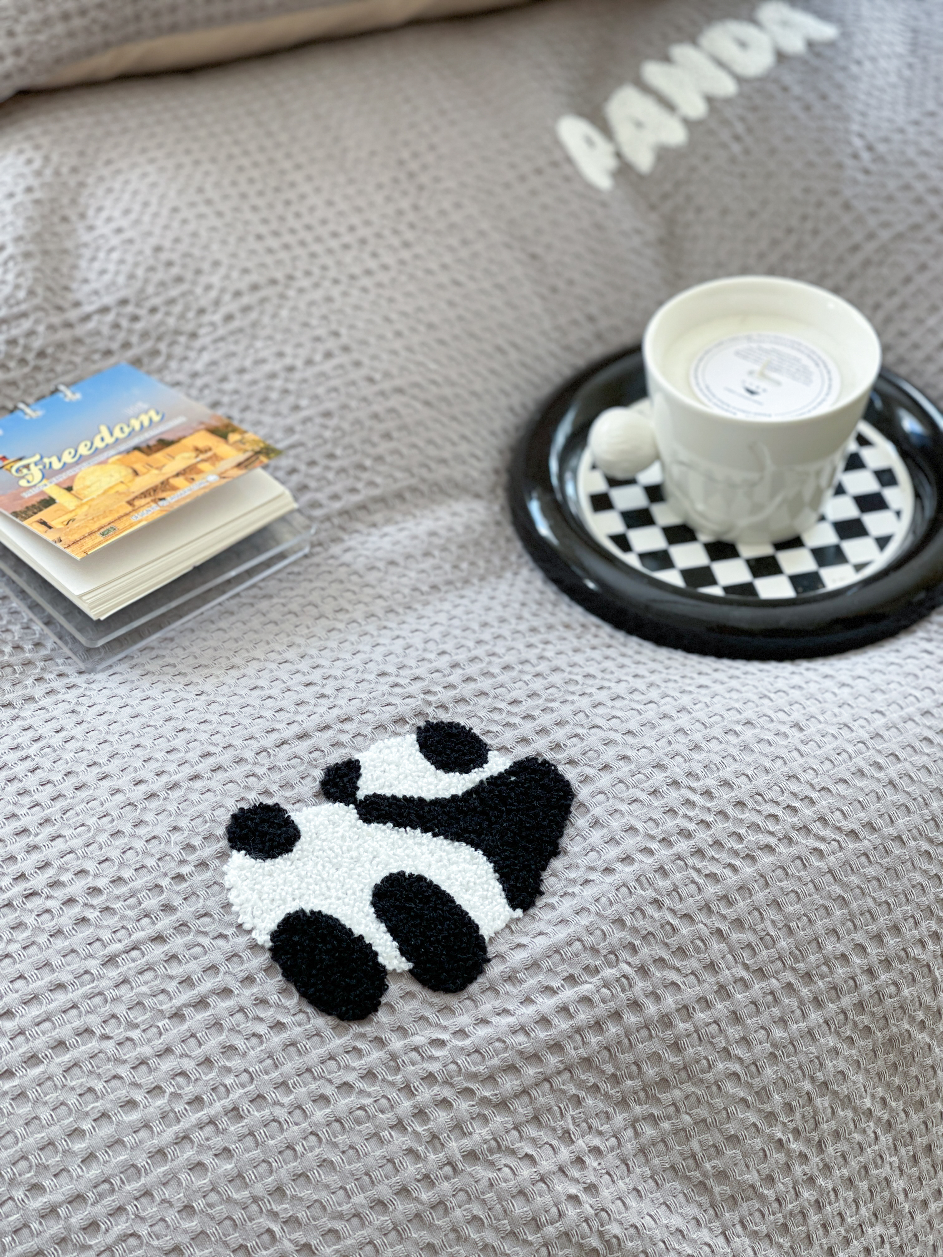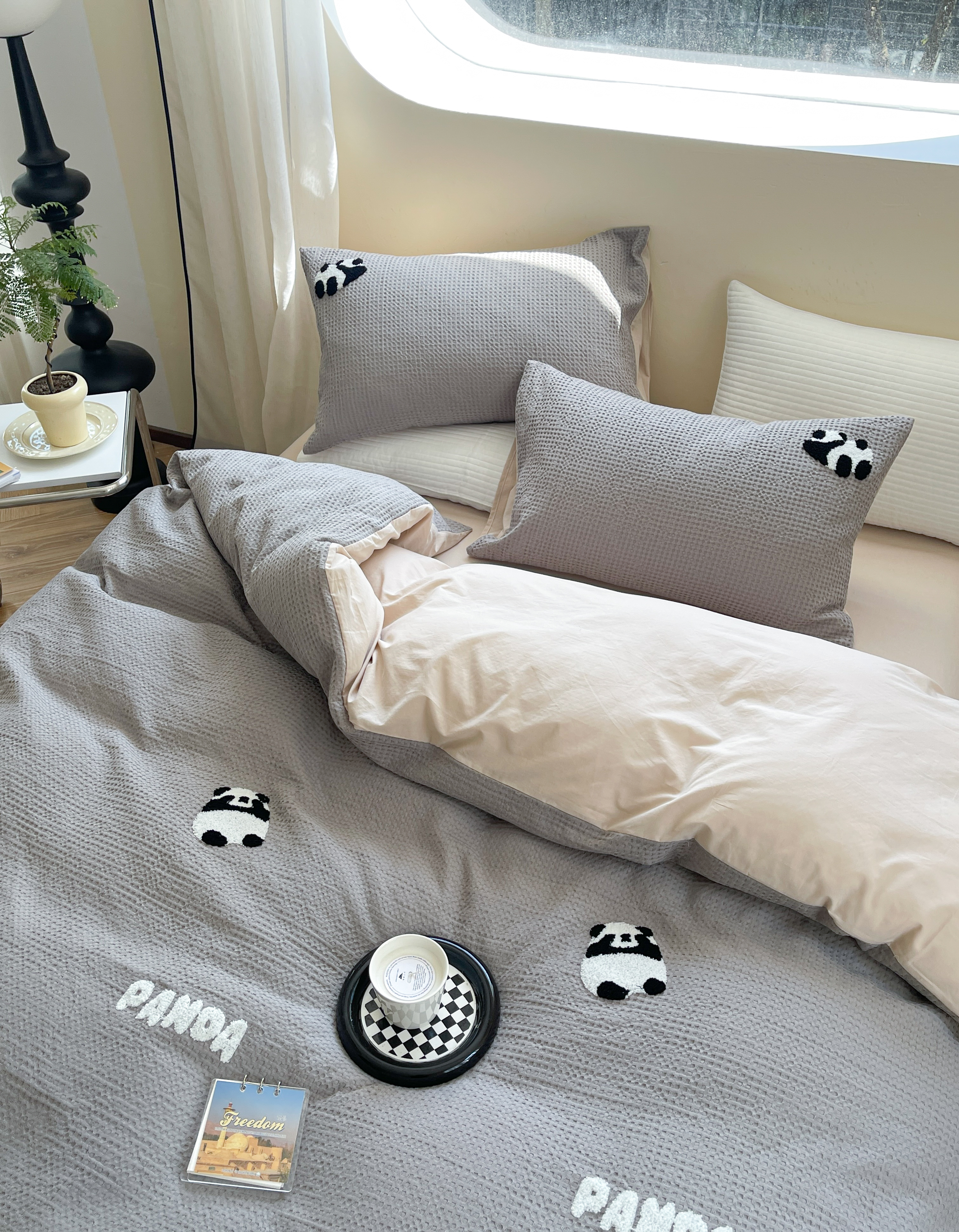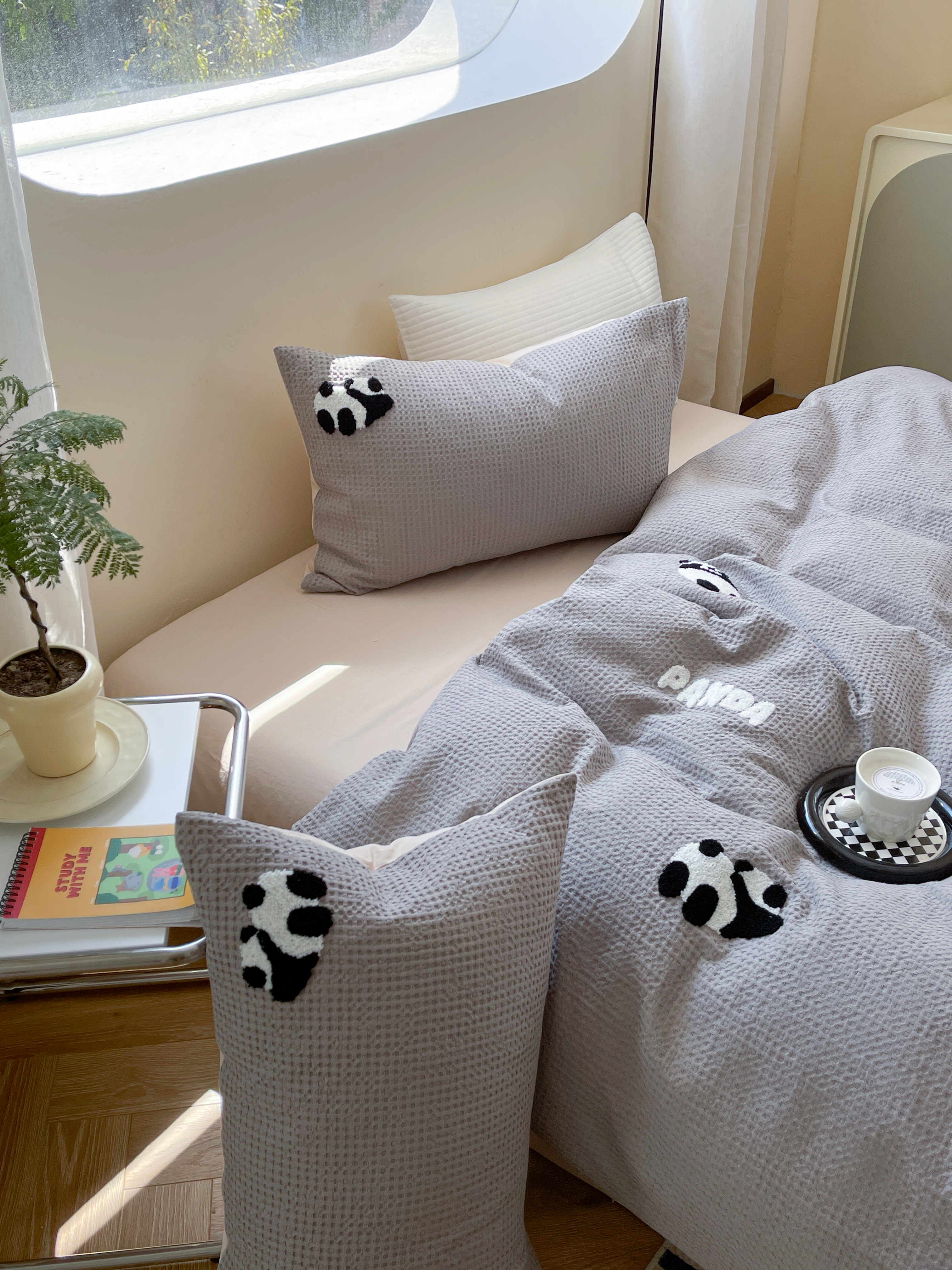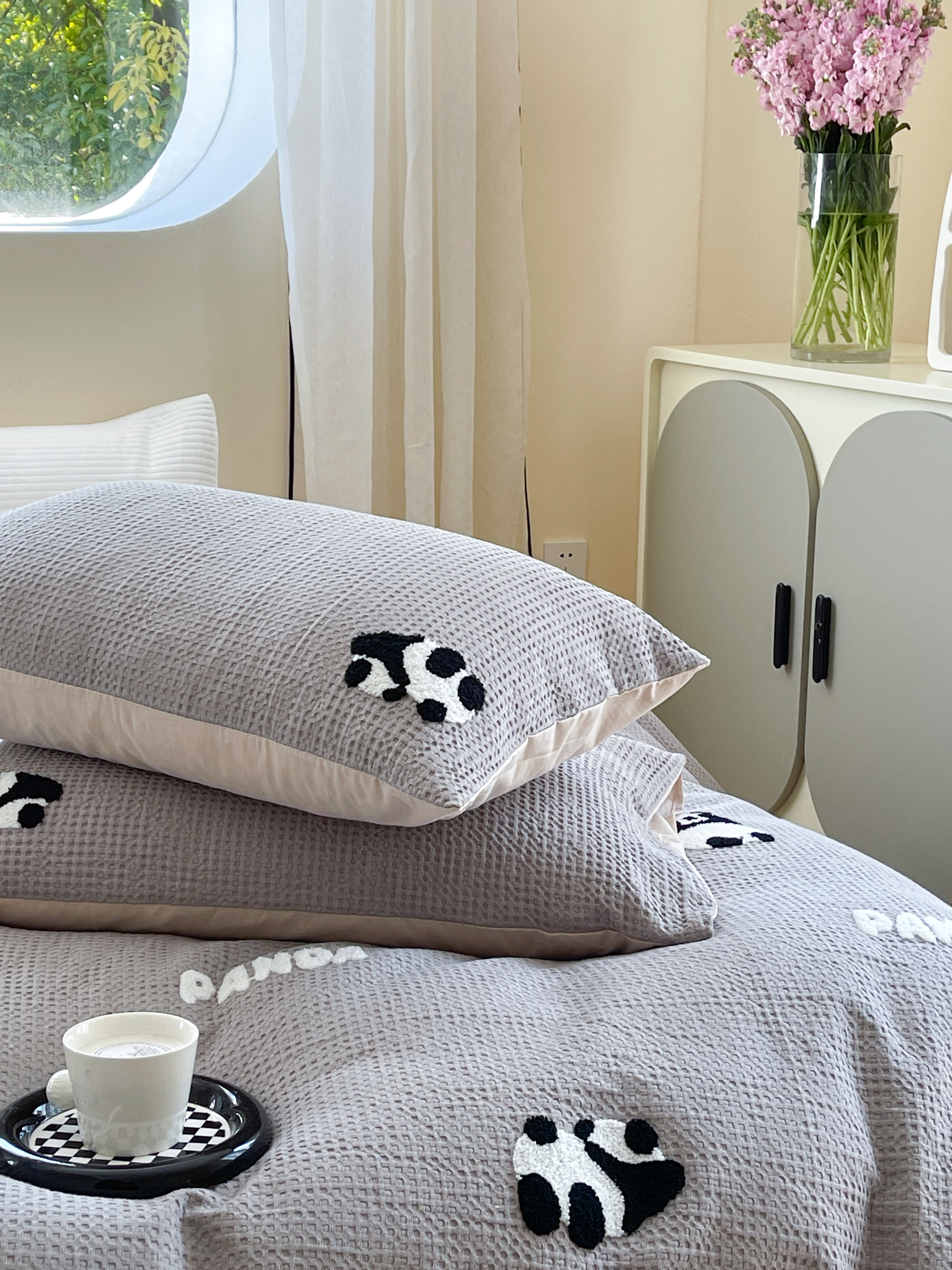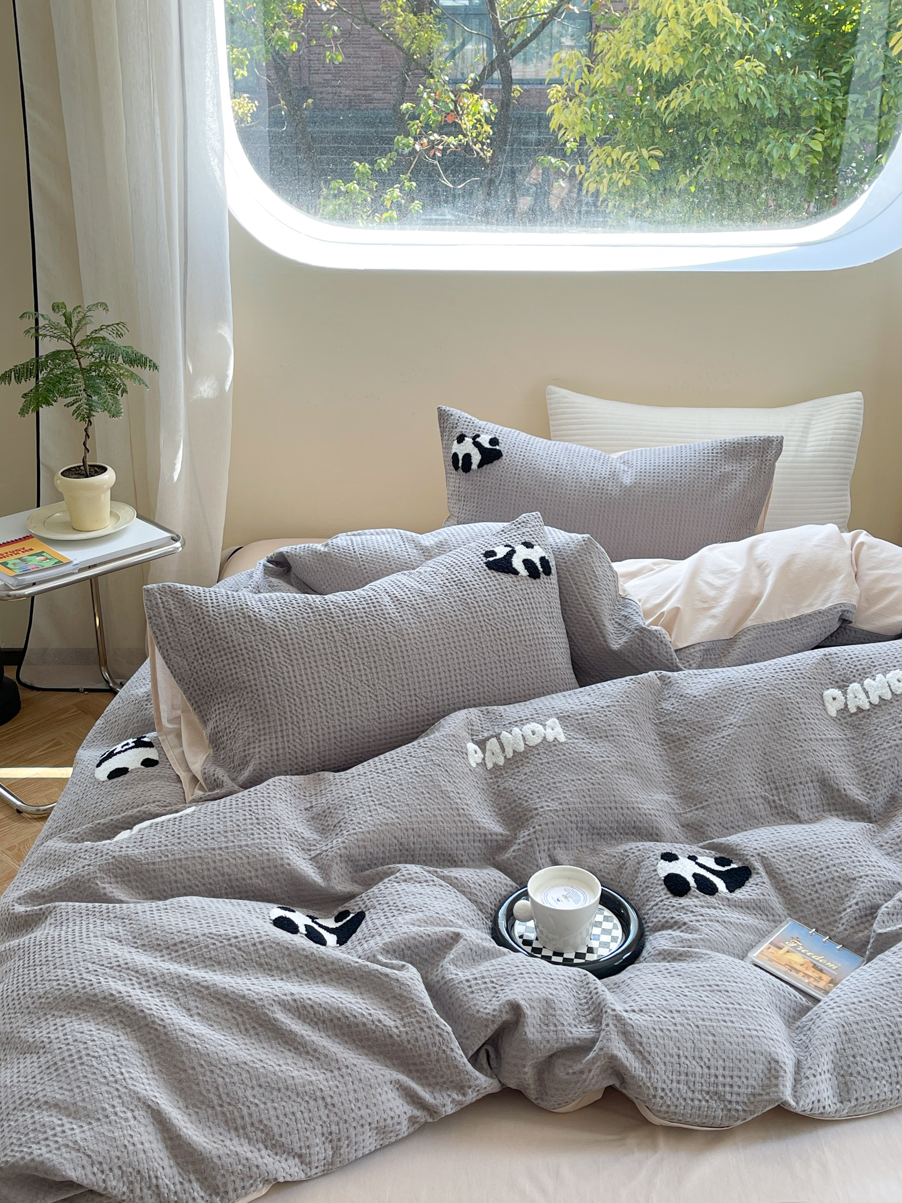 柚子 2023新款全棉高克重华夫格刺绣四件套 华夫格-熊猫