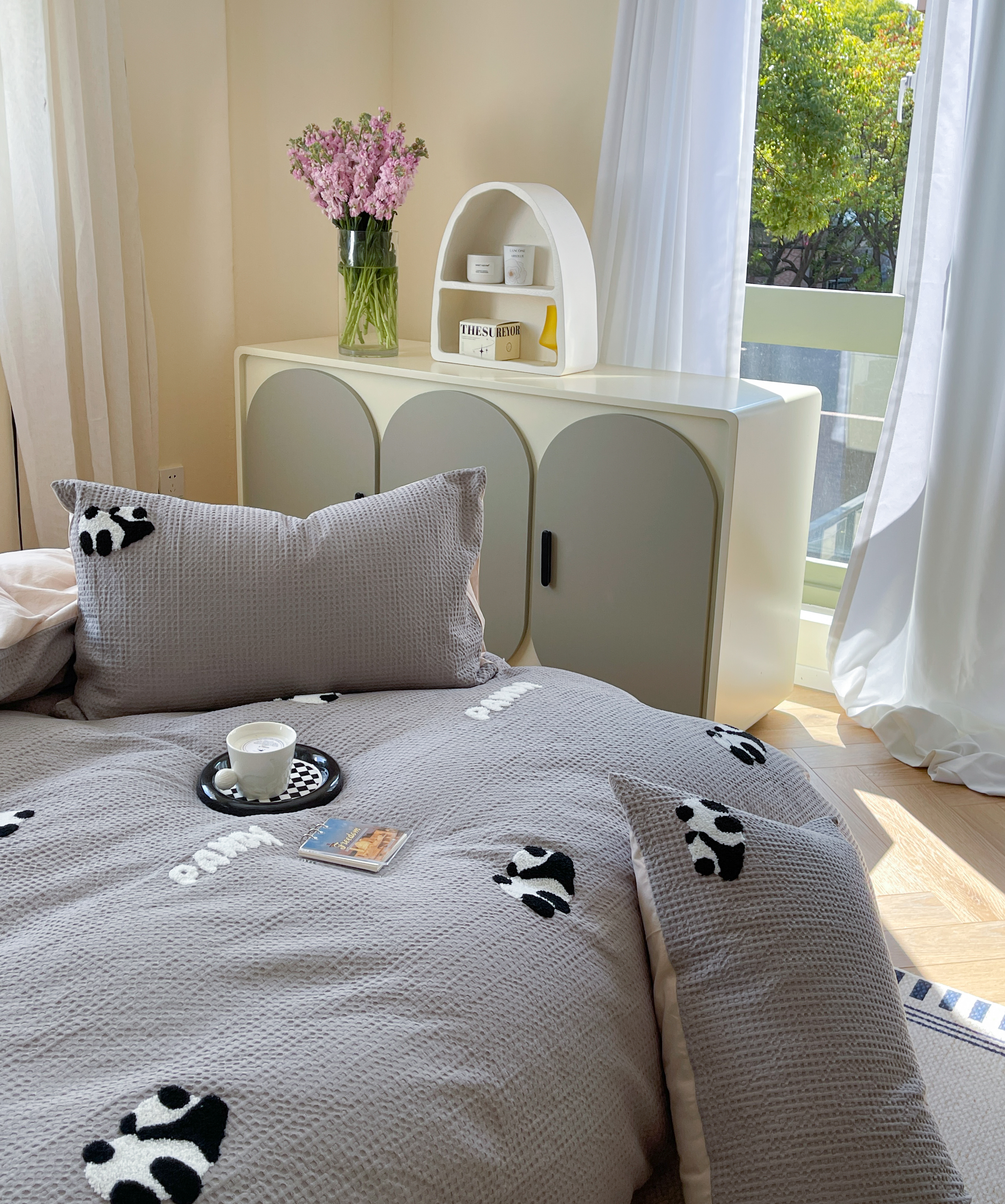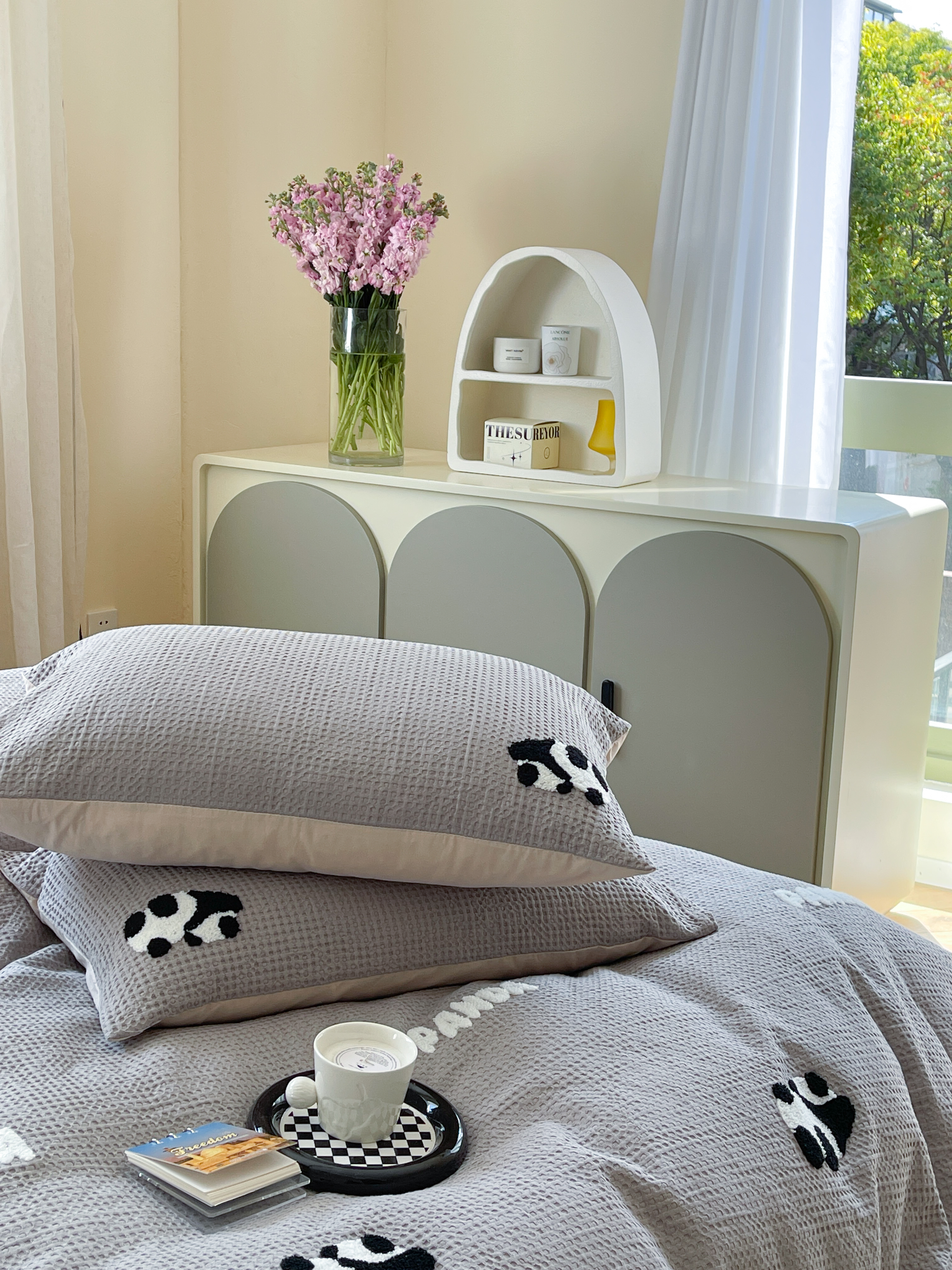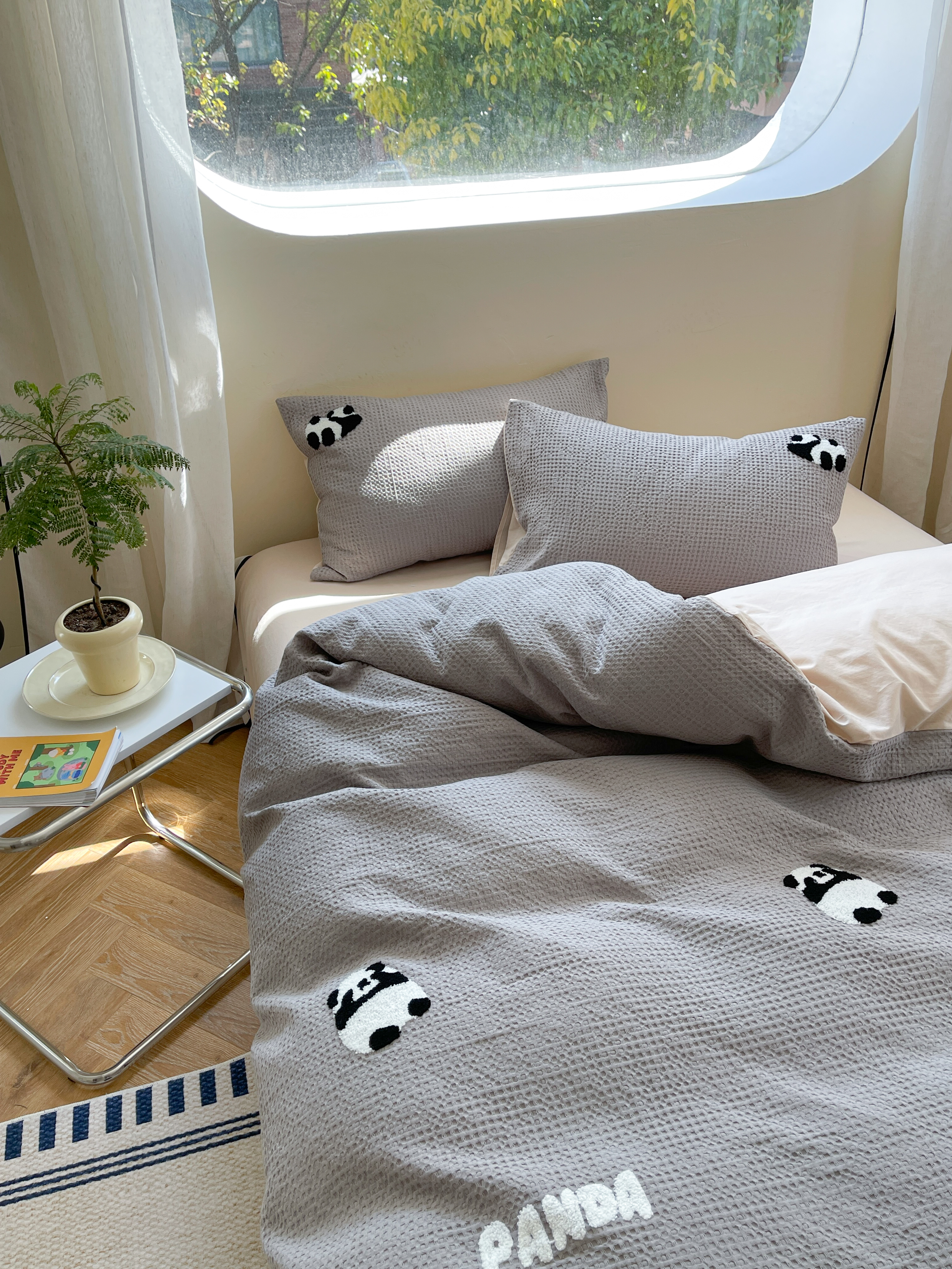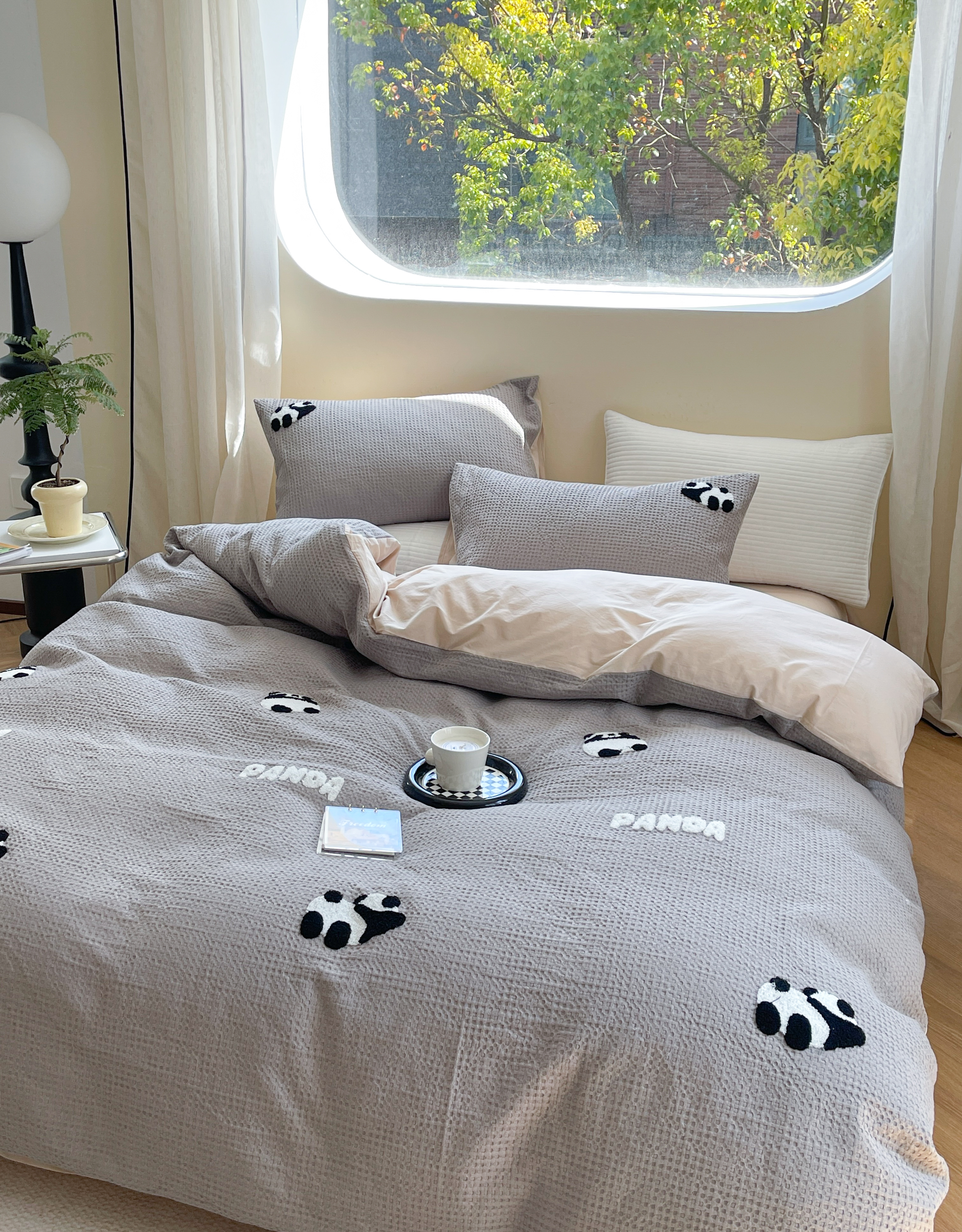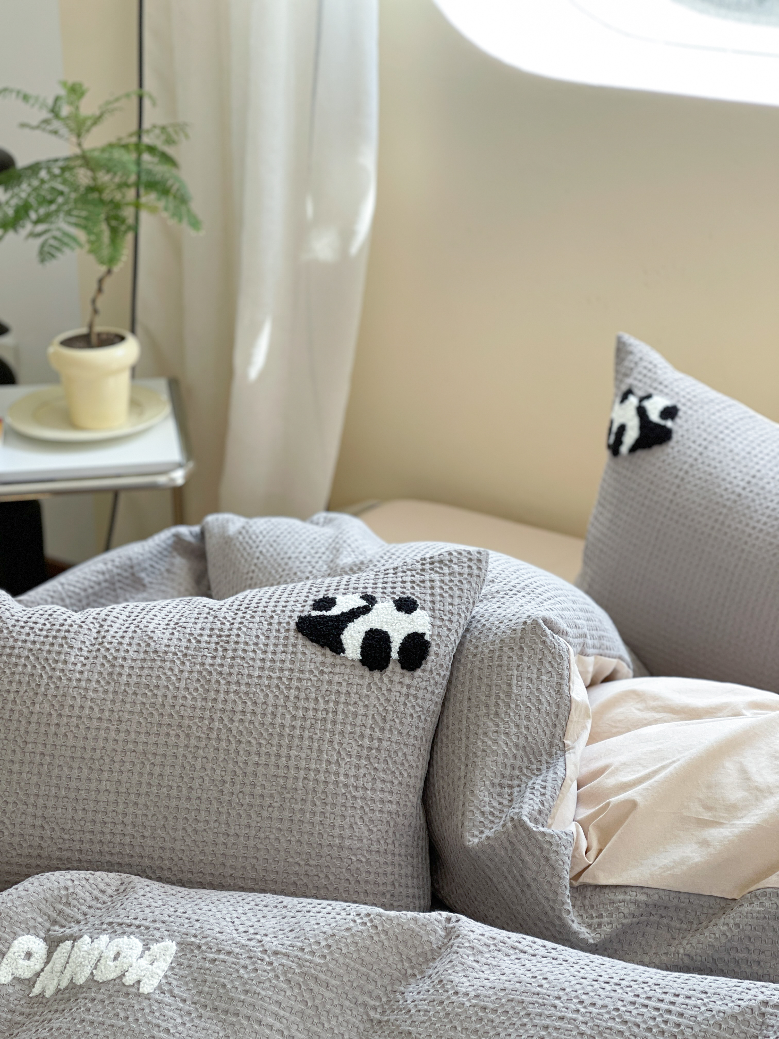 柚子 2023新款全棉高克重华夫格刺绣四件套 华夫格-熊猫
