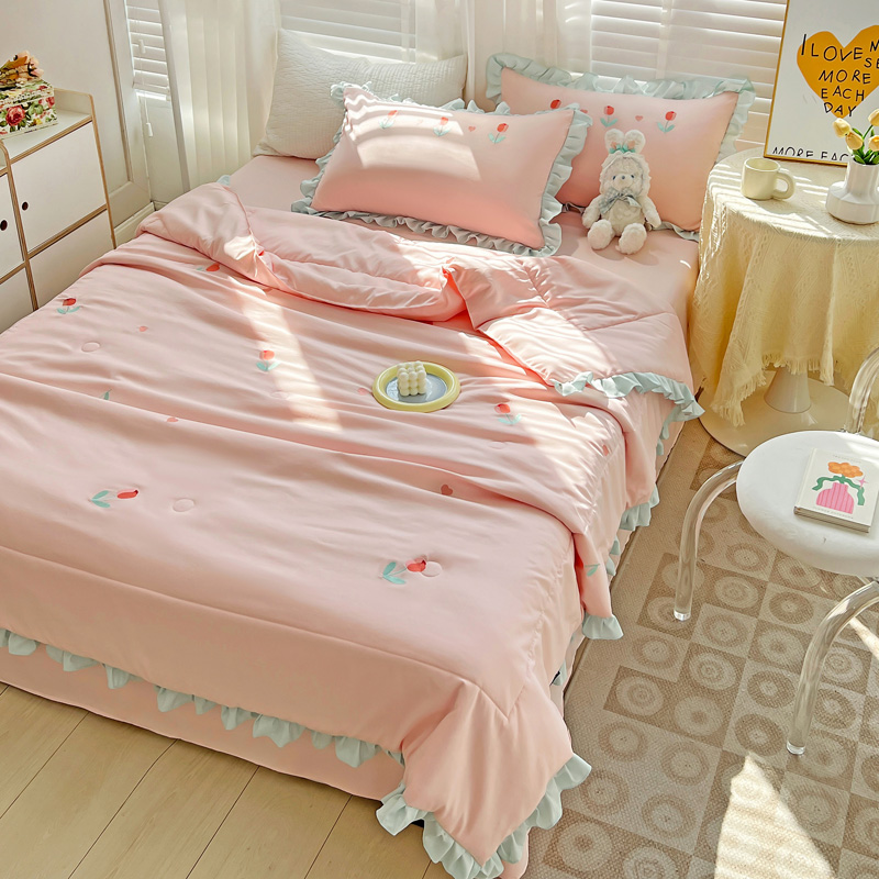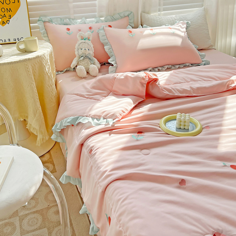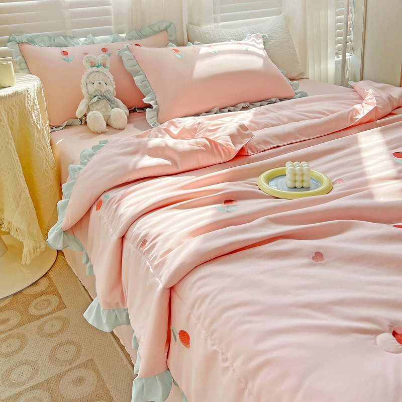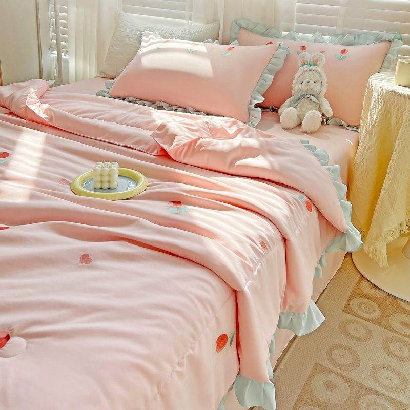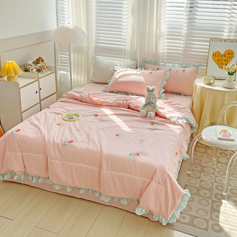 寐居 2023水洗天丝棉刺绣夏被 浪漫花语-粉白
