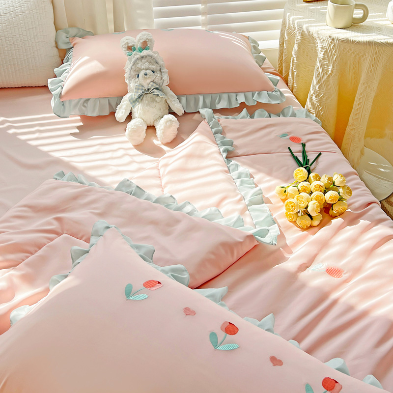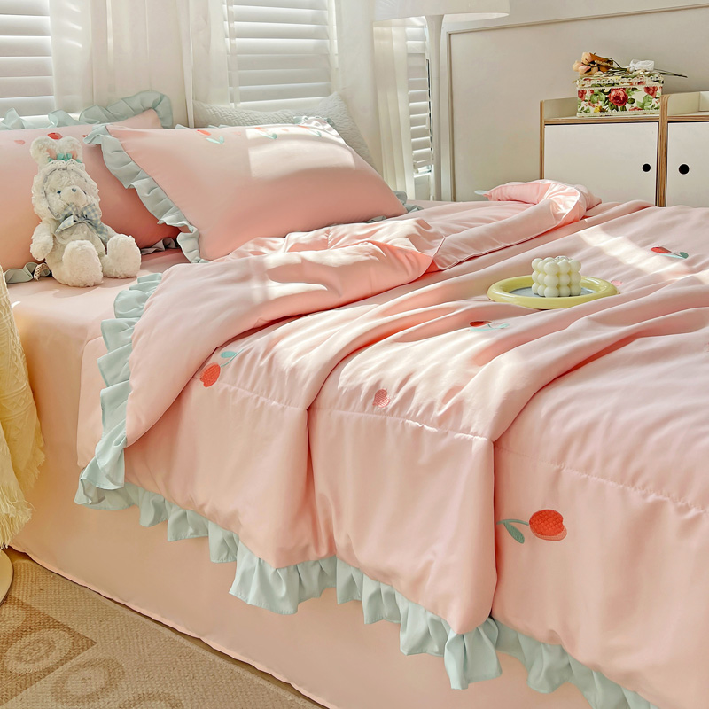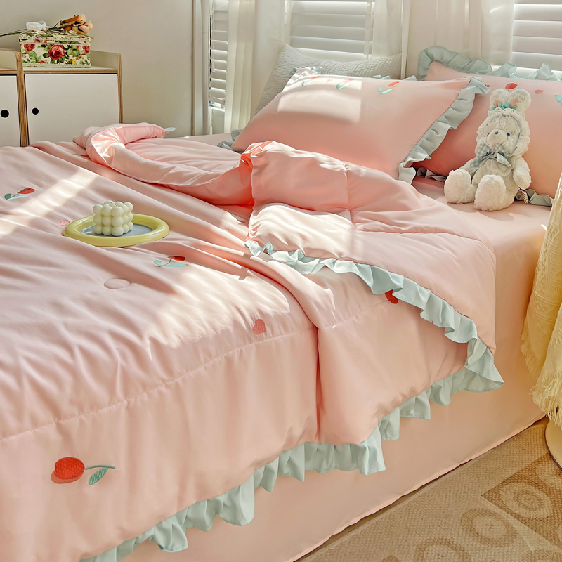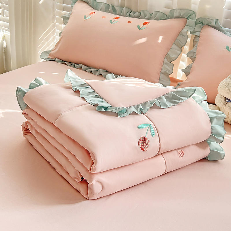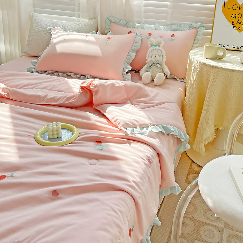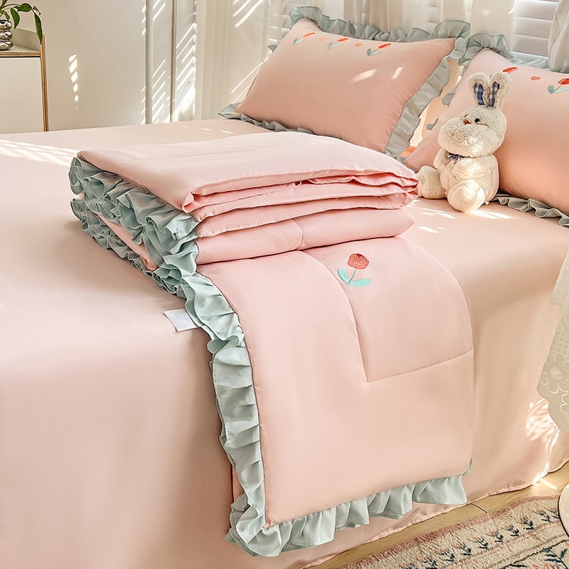 寐居 2023水洗天丝棉刺绣夏被 浪漫花语-粉白