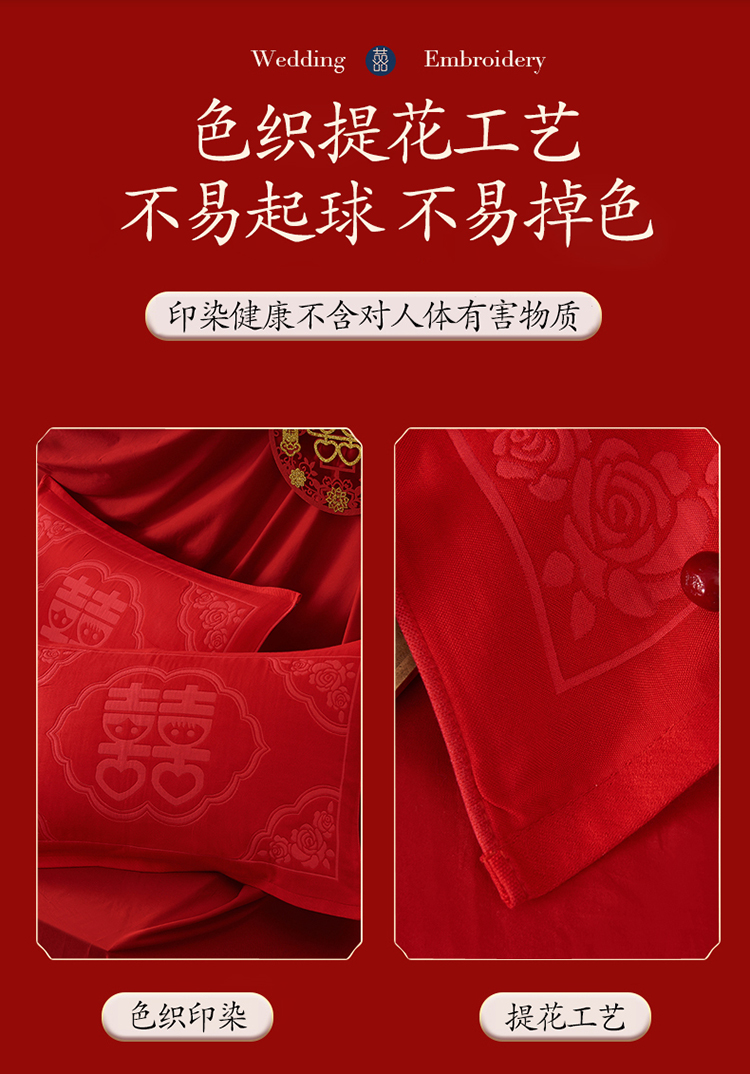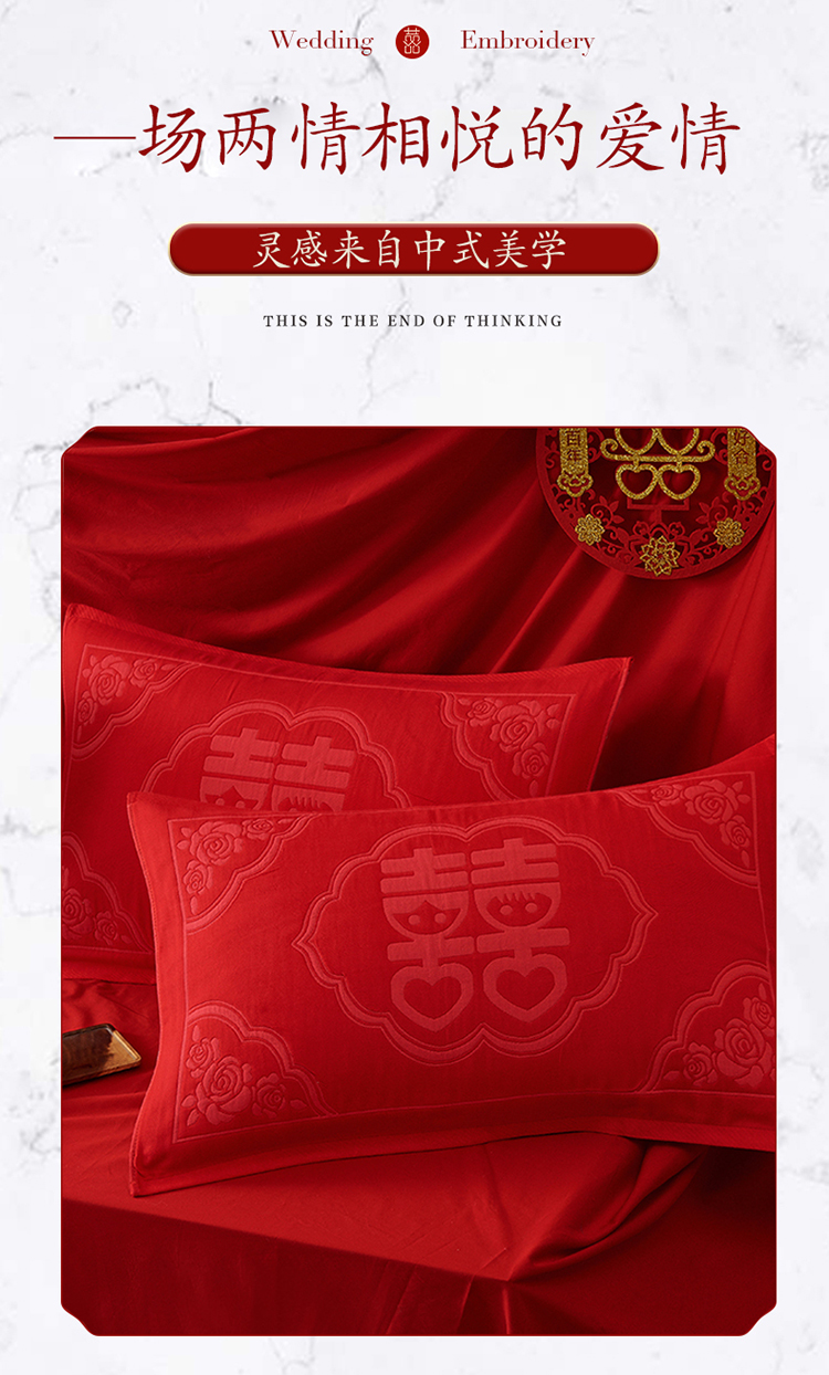 • 91家纺网 家纺一手货源 找家纺 棠薇2023结婚枕巾高端婚庆6层纱布全棉纯棉一对装大红色陪嫁新婚枕头巾 小欢喜53x80±2cm