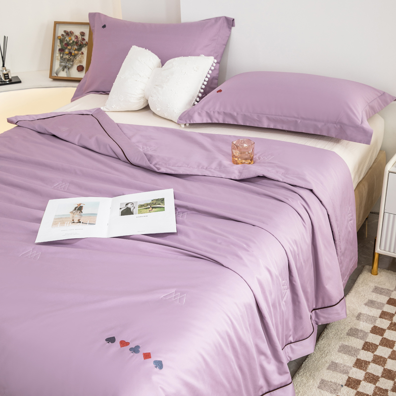 CINNY馨宜2023新款A类抗菌60S长绒棉绣花大豆全棉夏凉被空调被丁香紫
