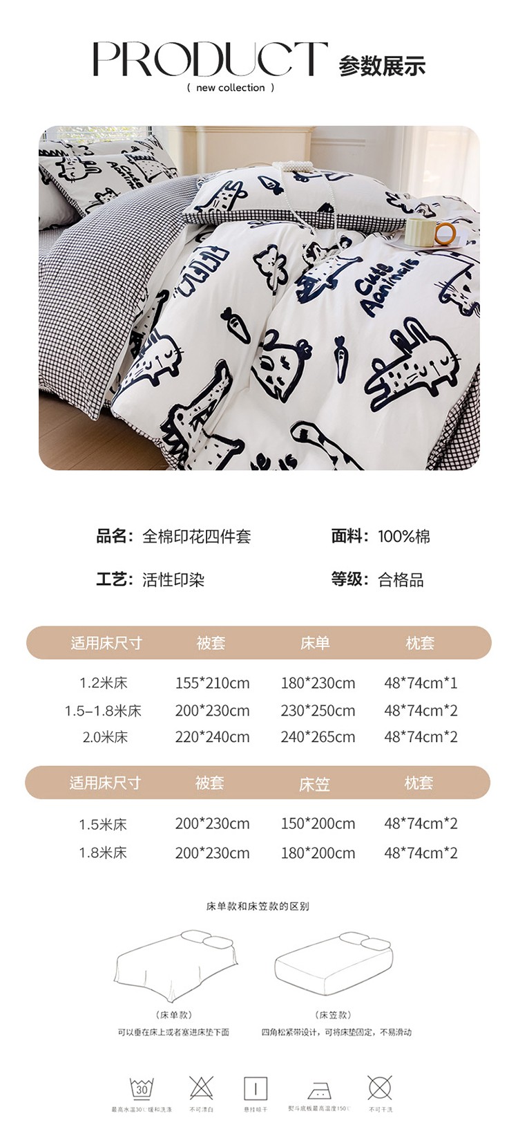 (总)珺柔 2023新款13070全棉四件套-第3批,宝宝兔,豹纹粉,北欧之春,都尚,风信子,浪漫花香,菱格熊,领结兔,绿光,玫瑰星球,梦的旋律-灰,梦的旋律-蓝,梦的旋律-绿,条纹爱心,兔时光,夏洛克,线条熊兔,小兔仙,永恒,油墨画