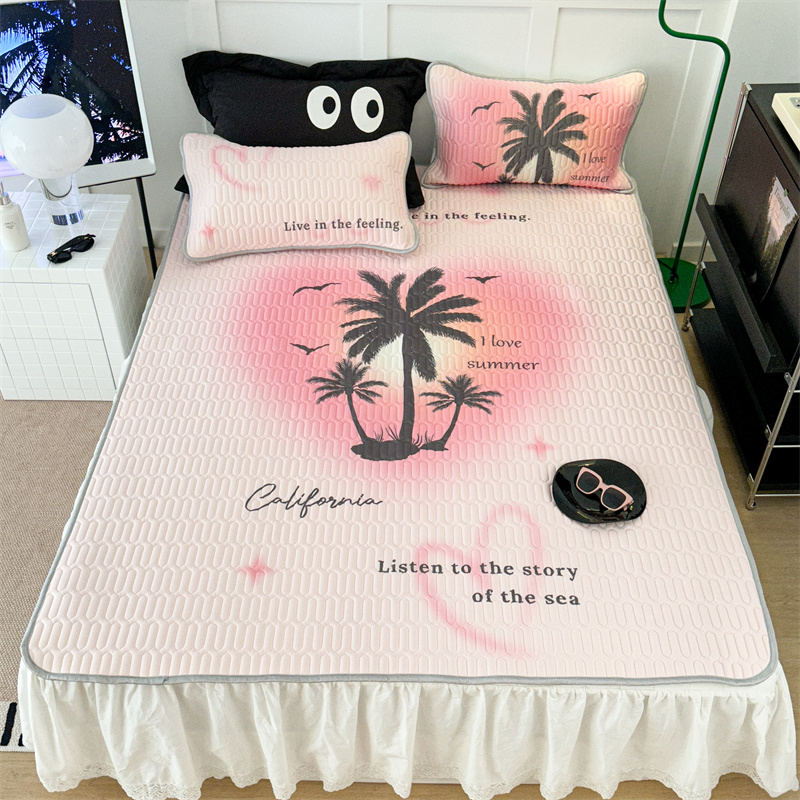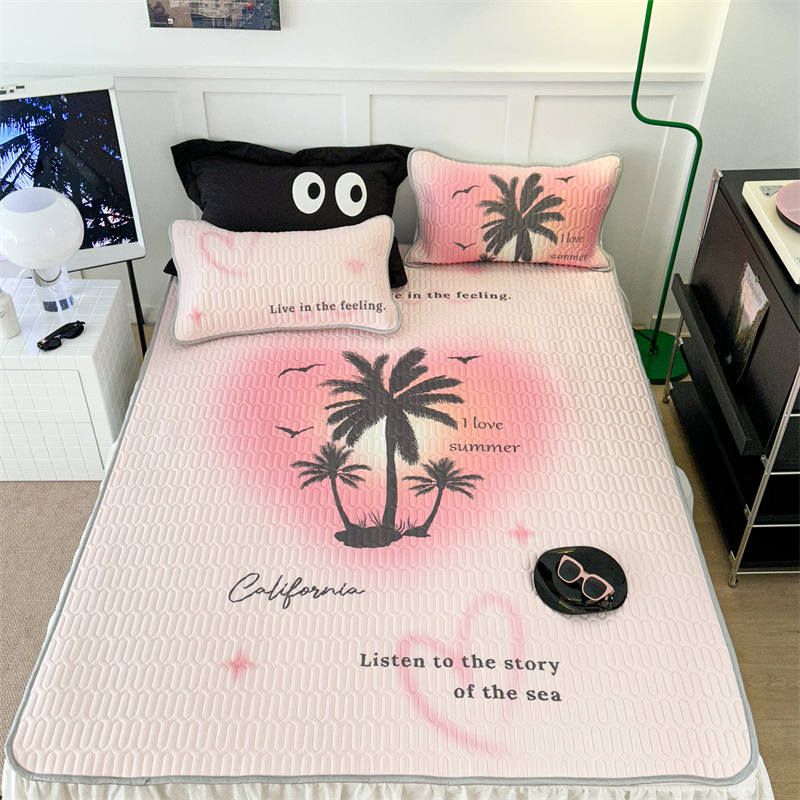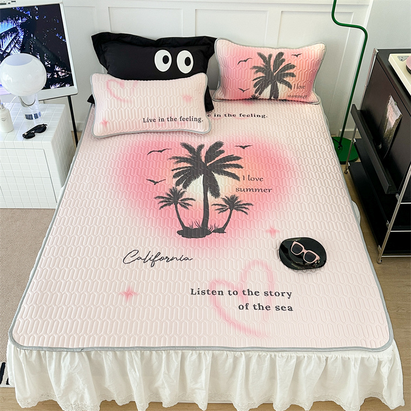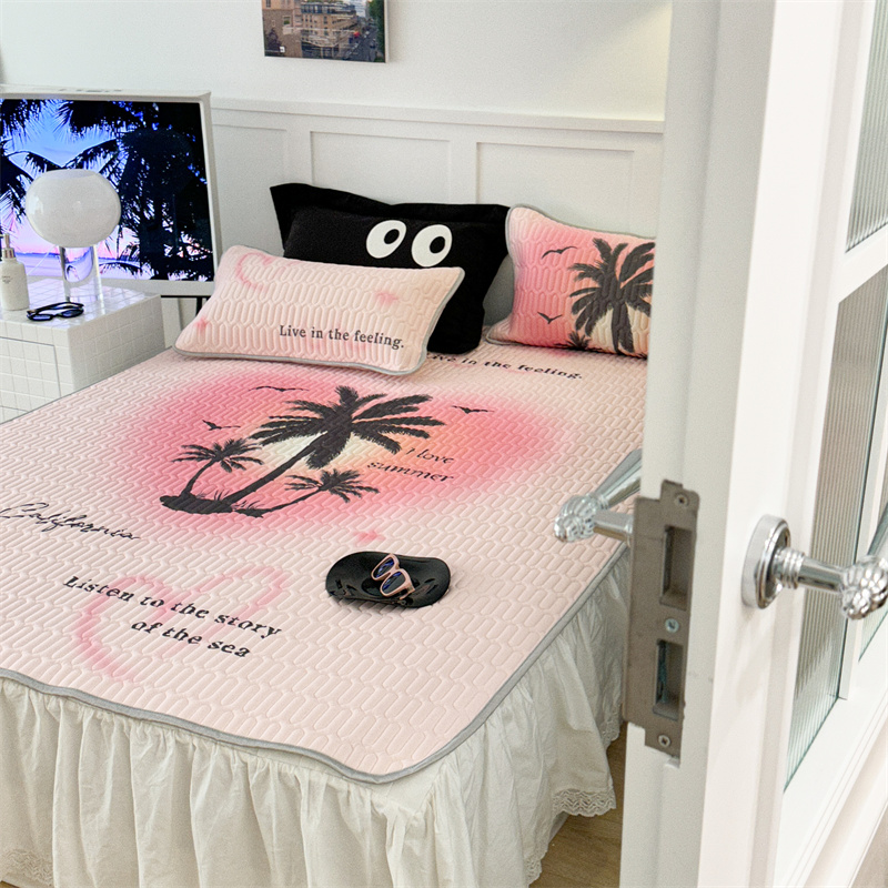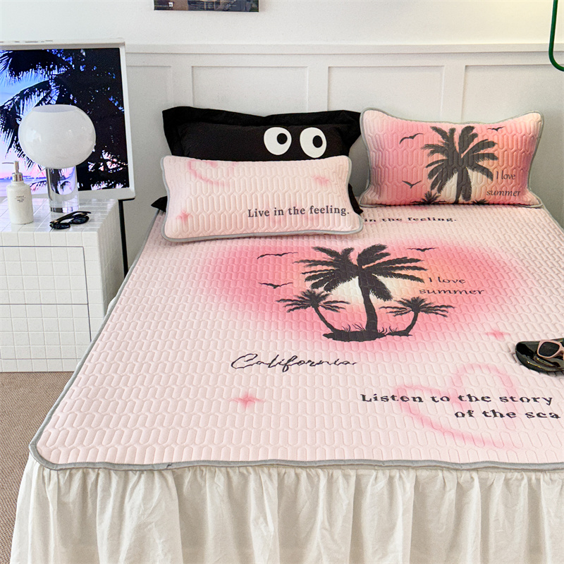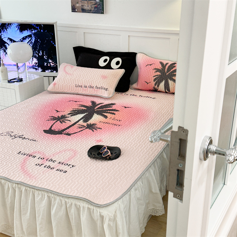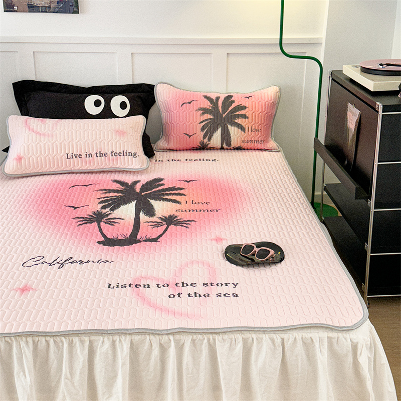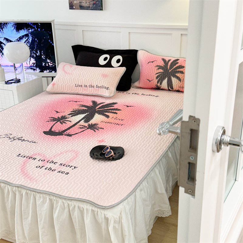昔可家纺 2023新款ins简约风乳胶凉席 粉色晕染椰树