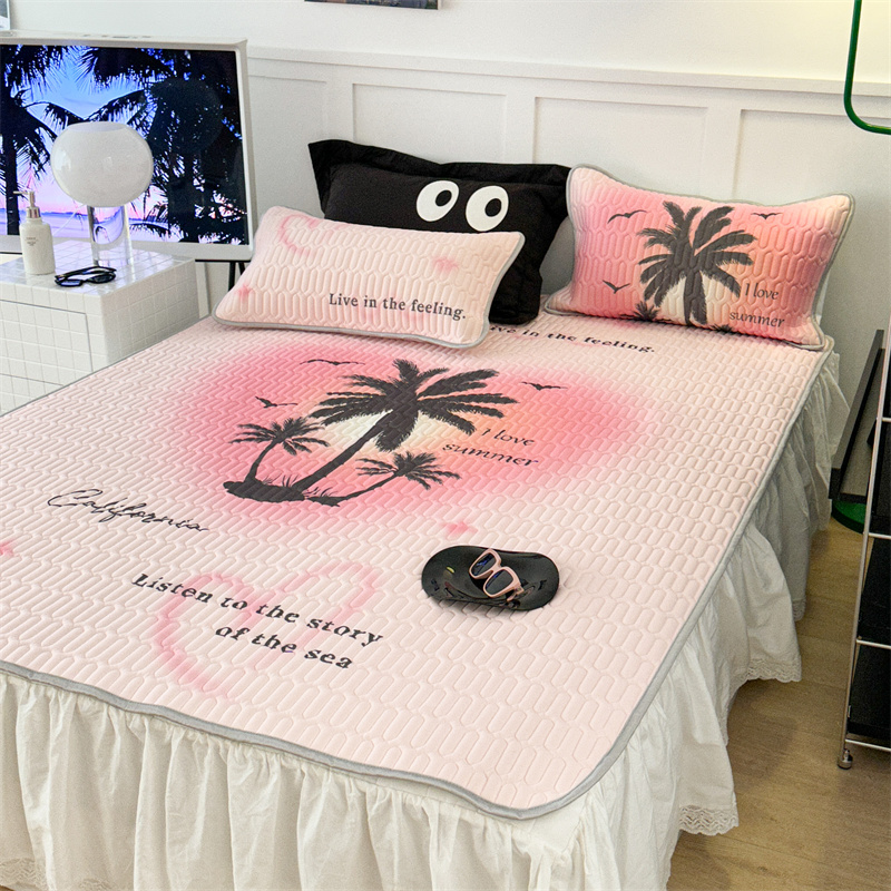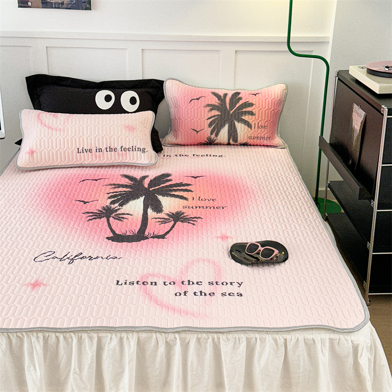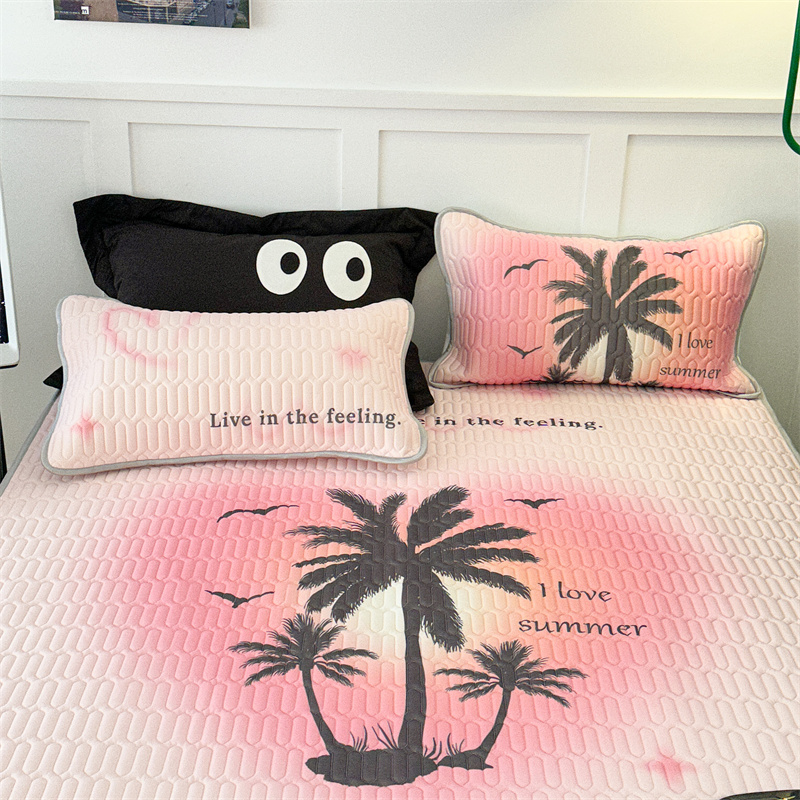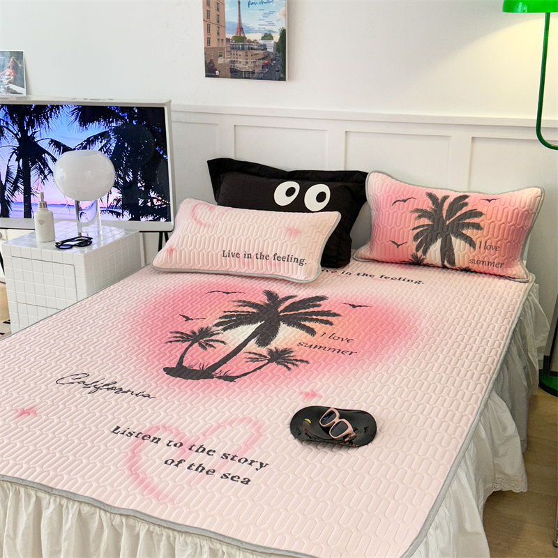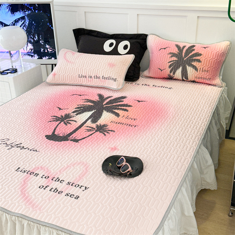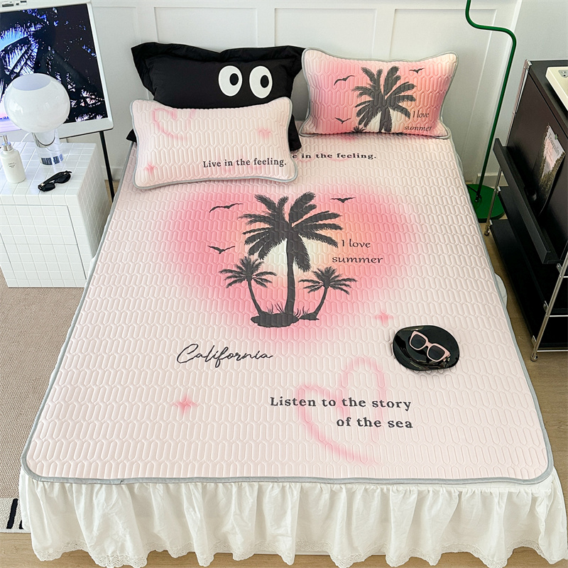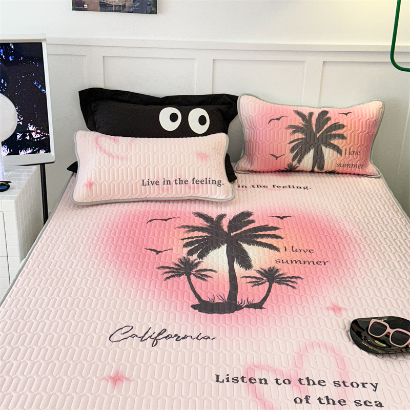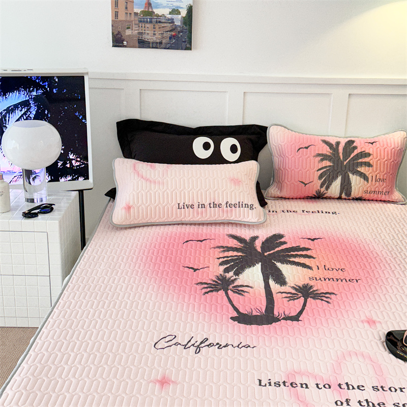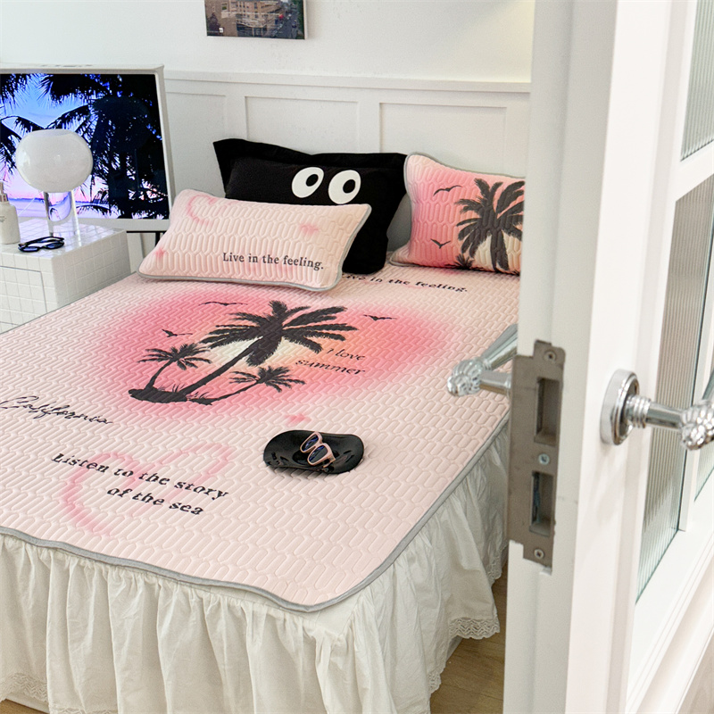 昔可家纺 2023新款ins简约风乳胶凉席 粉色晕染椰树