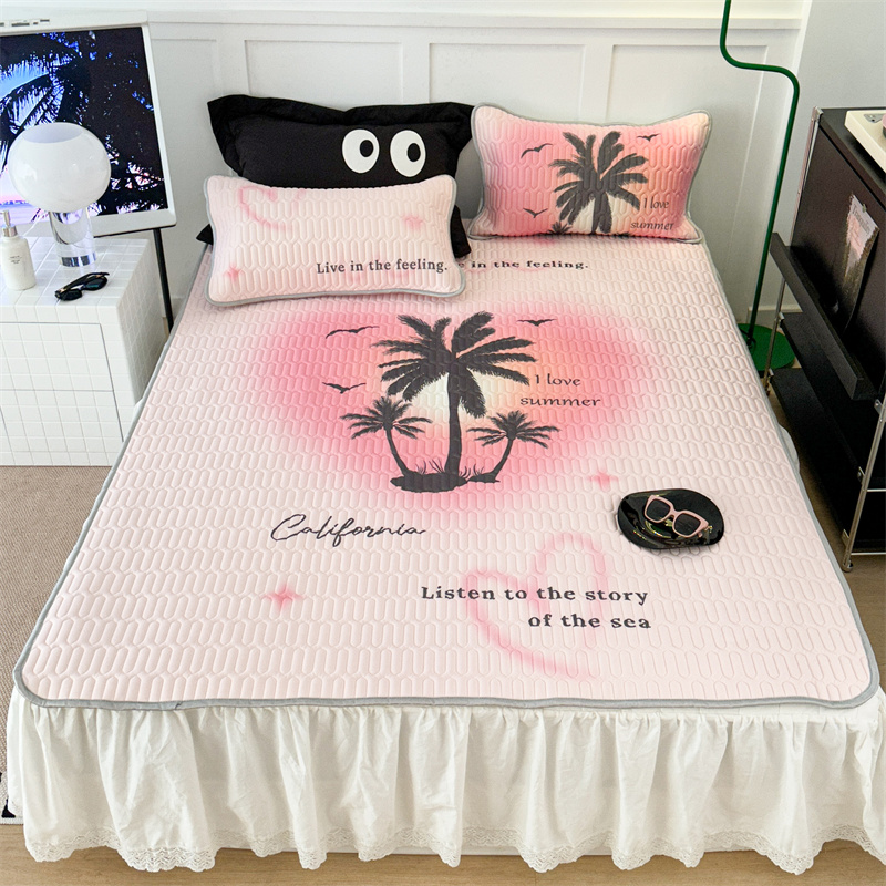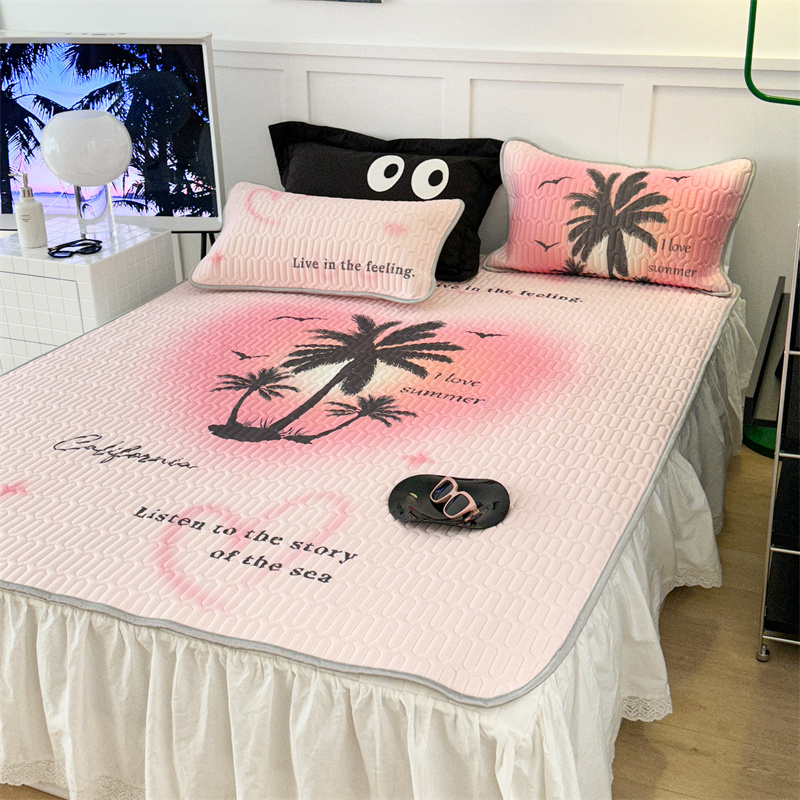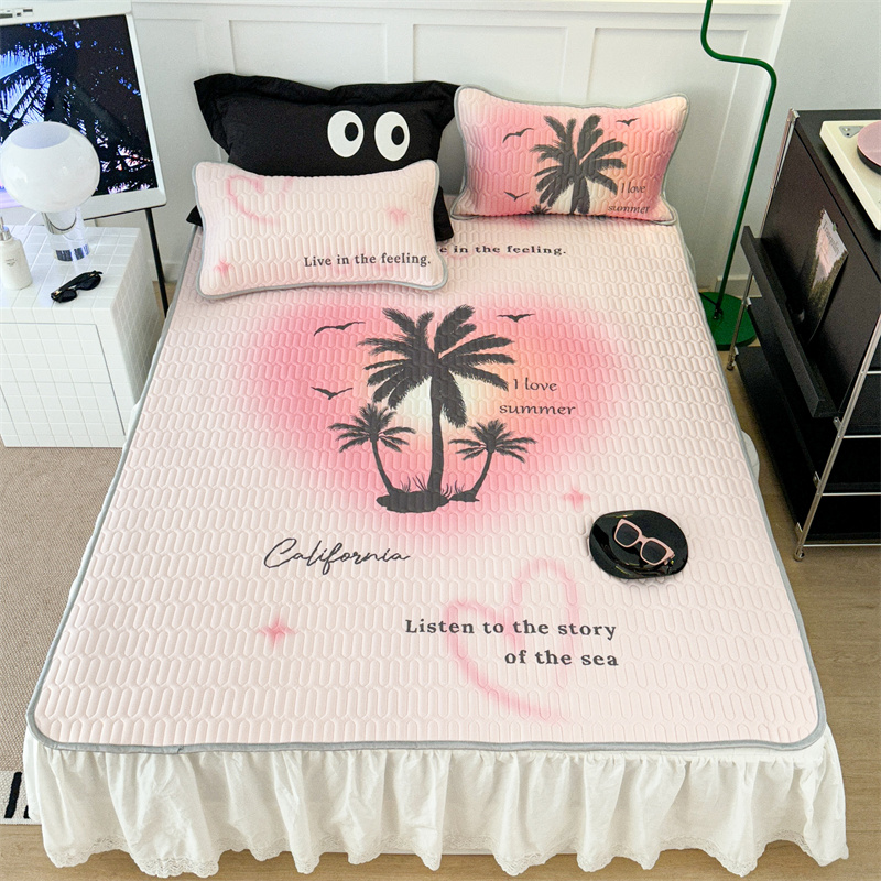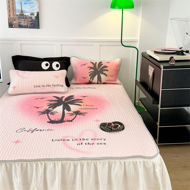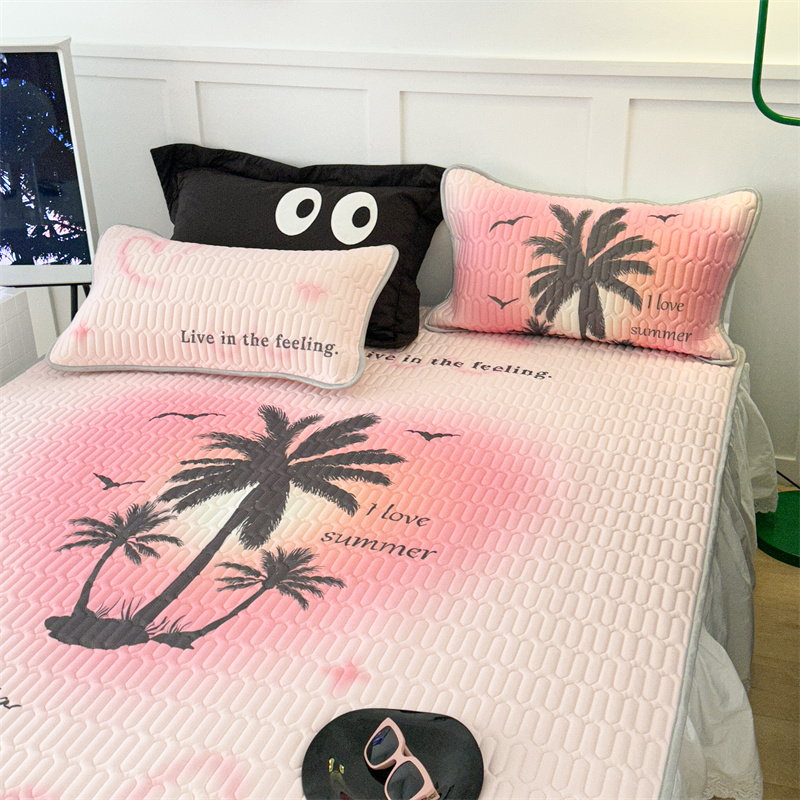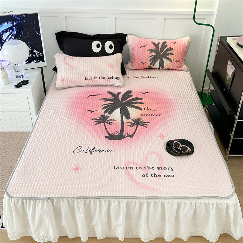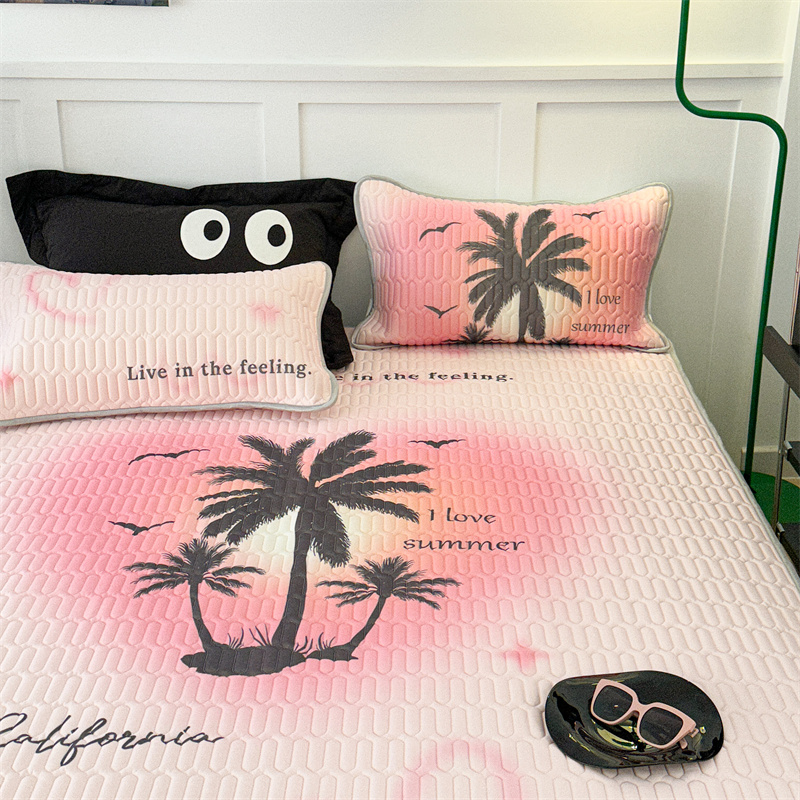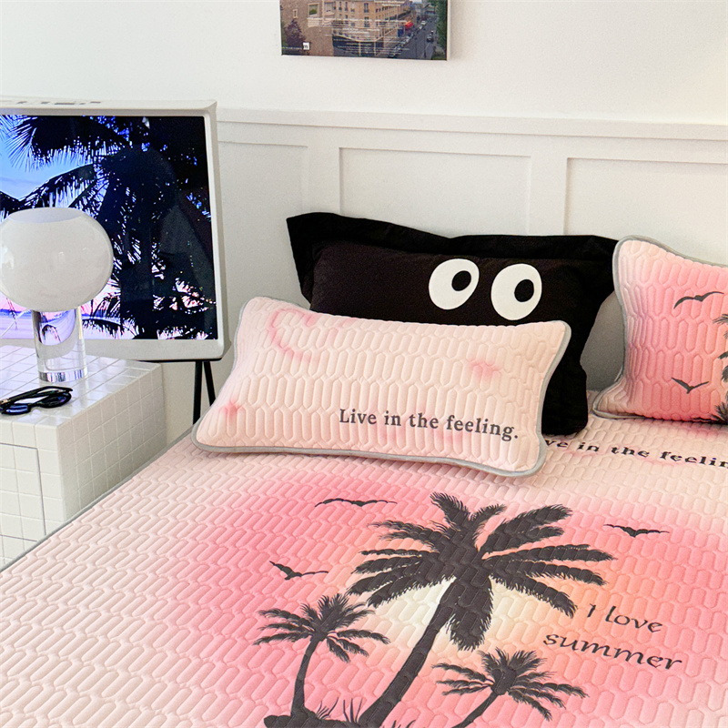 昔可家纺 2023新款ins简约风乳胶凉席 粉色晕染椰树