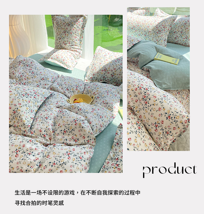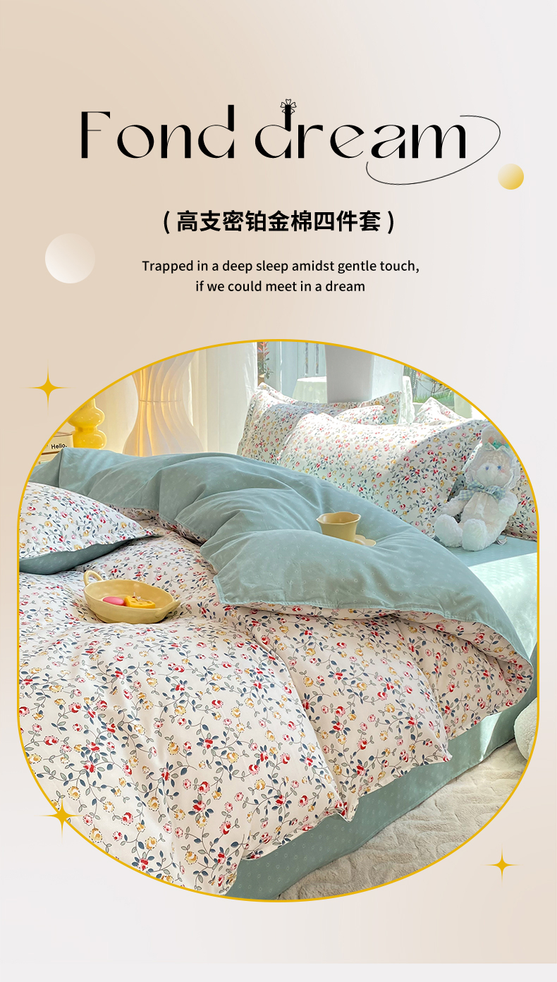 商品名称:妖妖家纺 2023铂金高克重植物羊绒130克斜纹印花四件套 春研