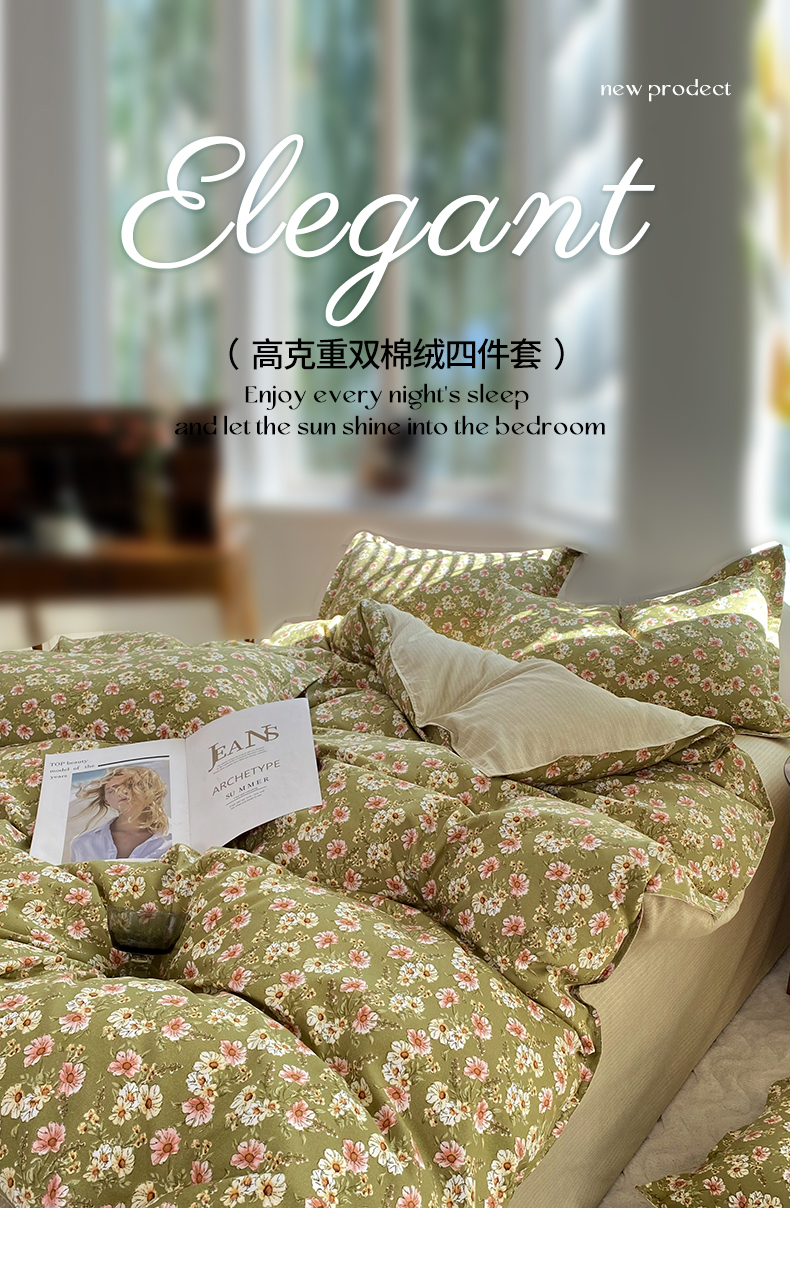 商品名称:妖妖家纺 2023铂金高克重植物羊绒130克斜纹印花四件套 漫野
