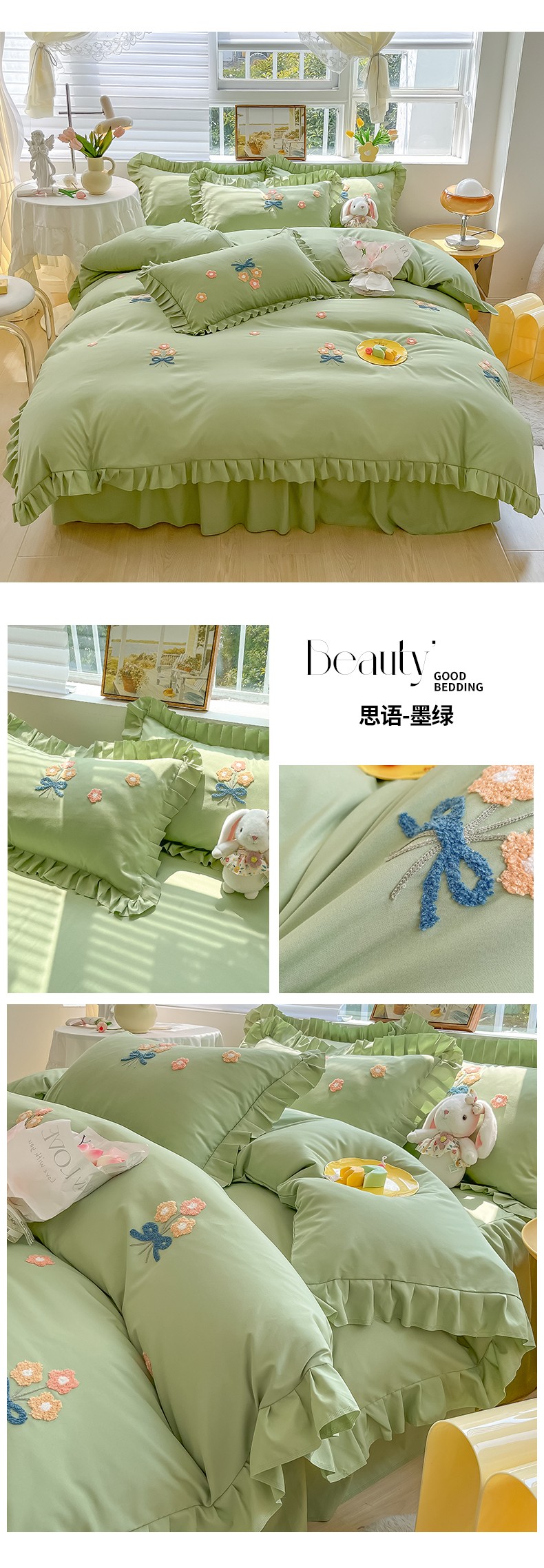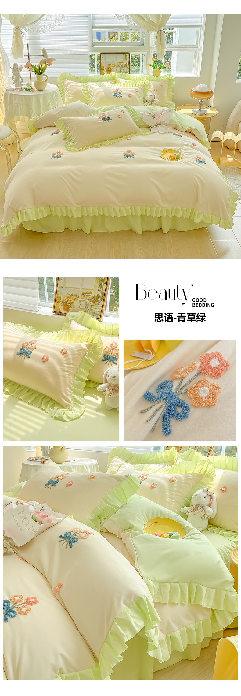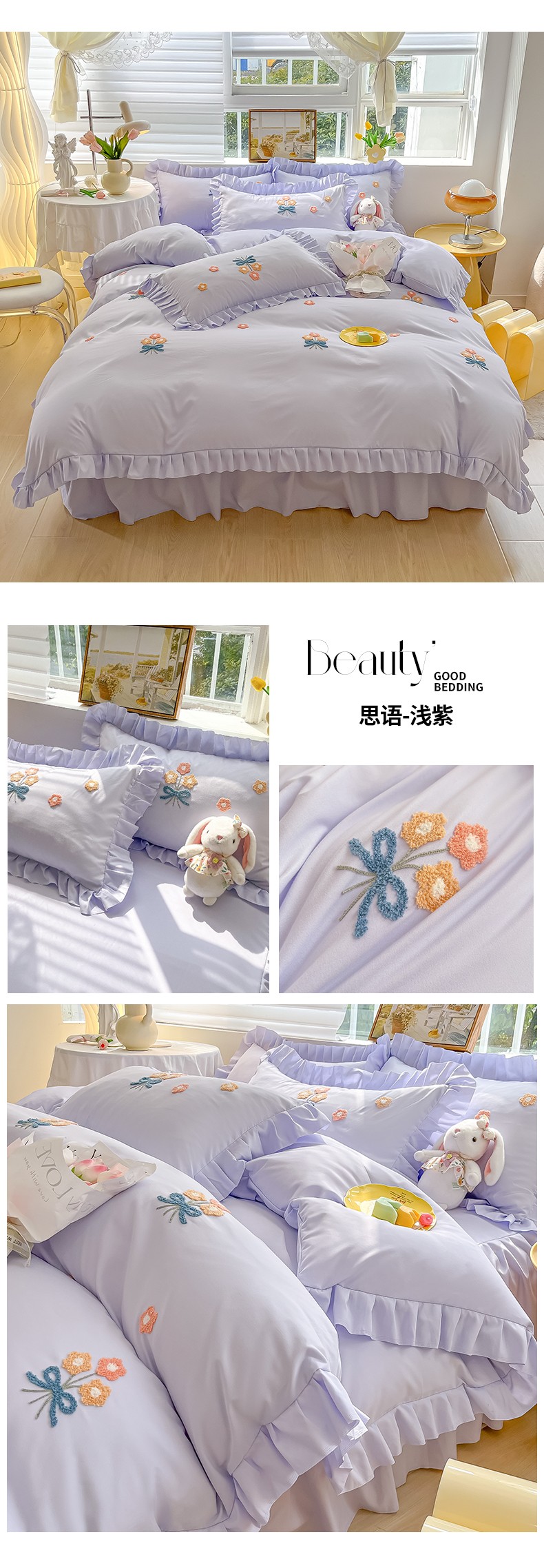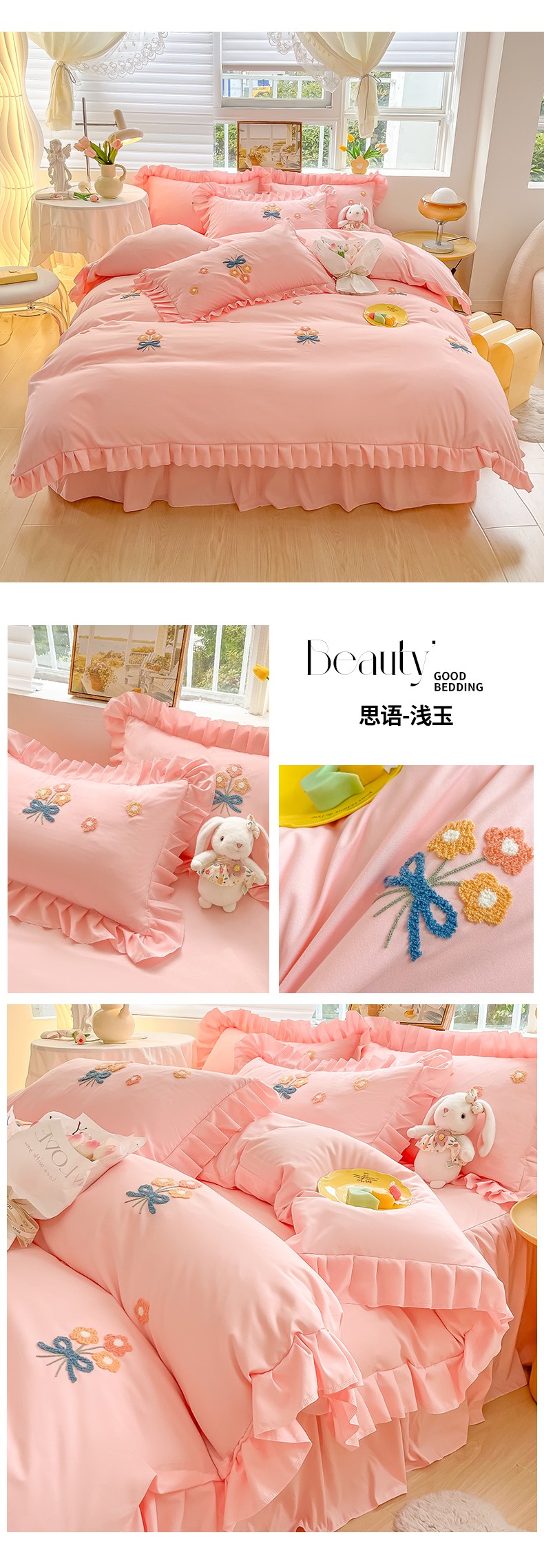 (总)韩都 2023直播韩版绣花床单床裙四件套-思语