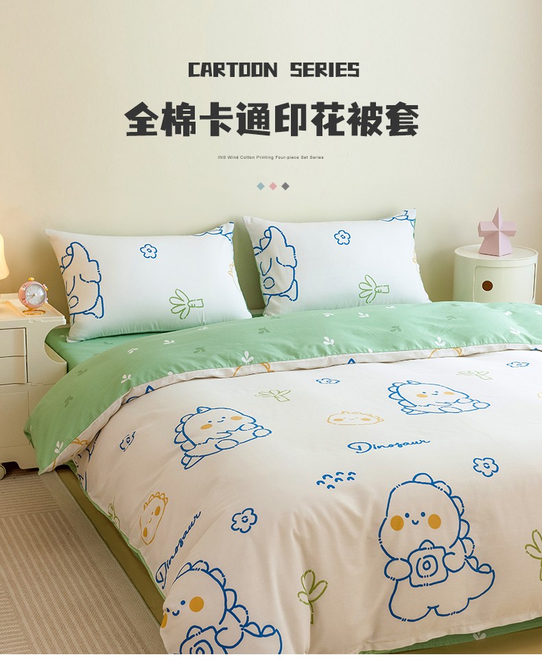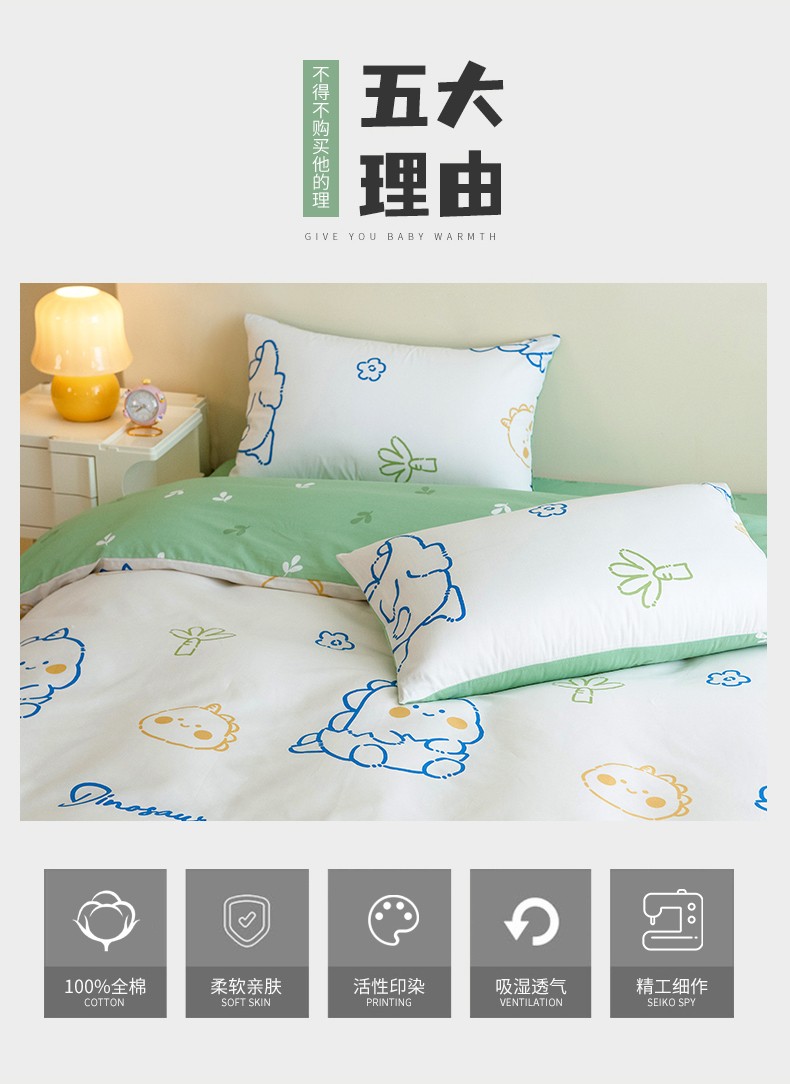 • 91家纺网 家纺一手货源 找家纺 芃成 2023新款全棉13070单被套 小恐龙