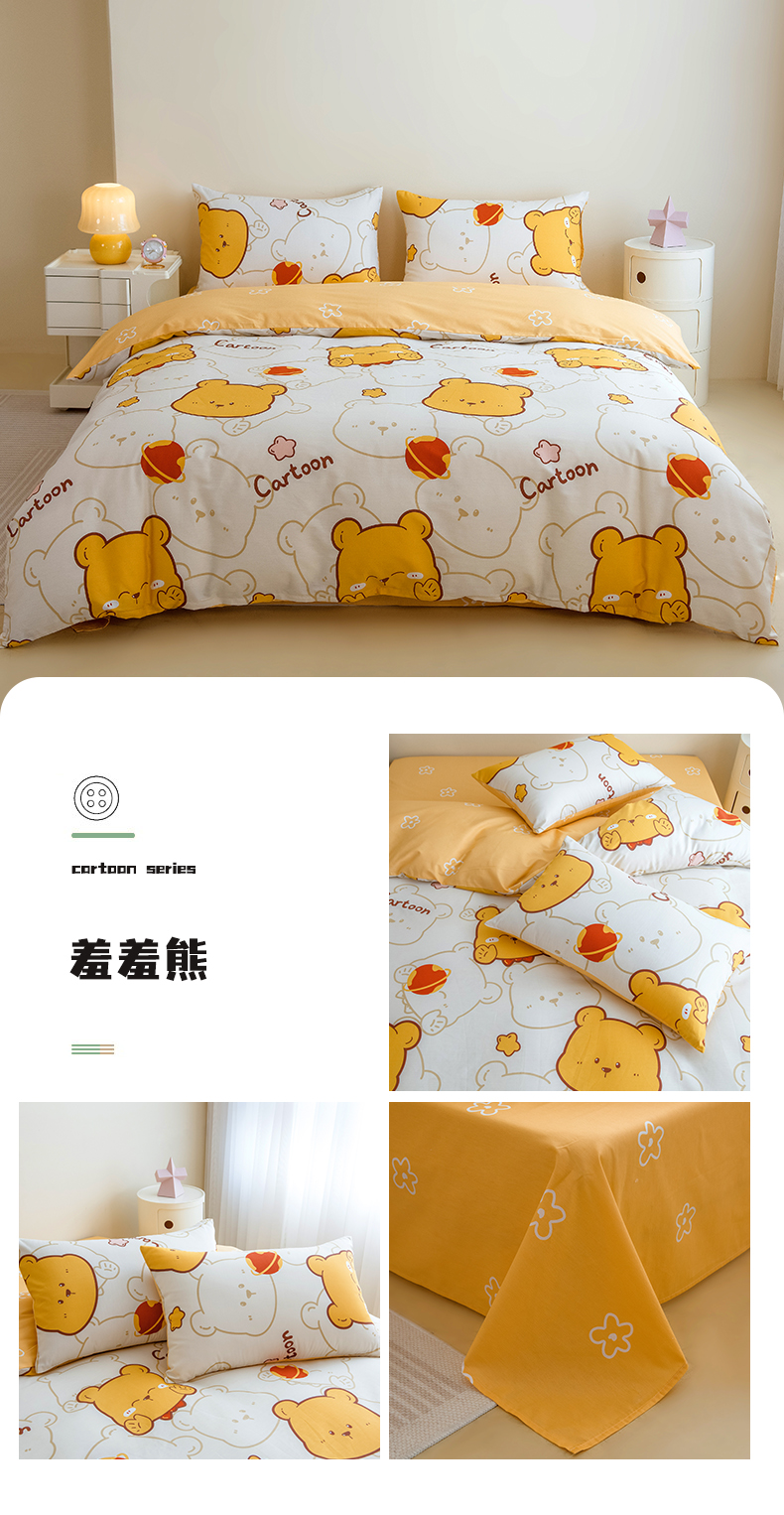 商品名称:芃成家纺 2023新款全棉13070四件套 羞羞熊