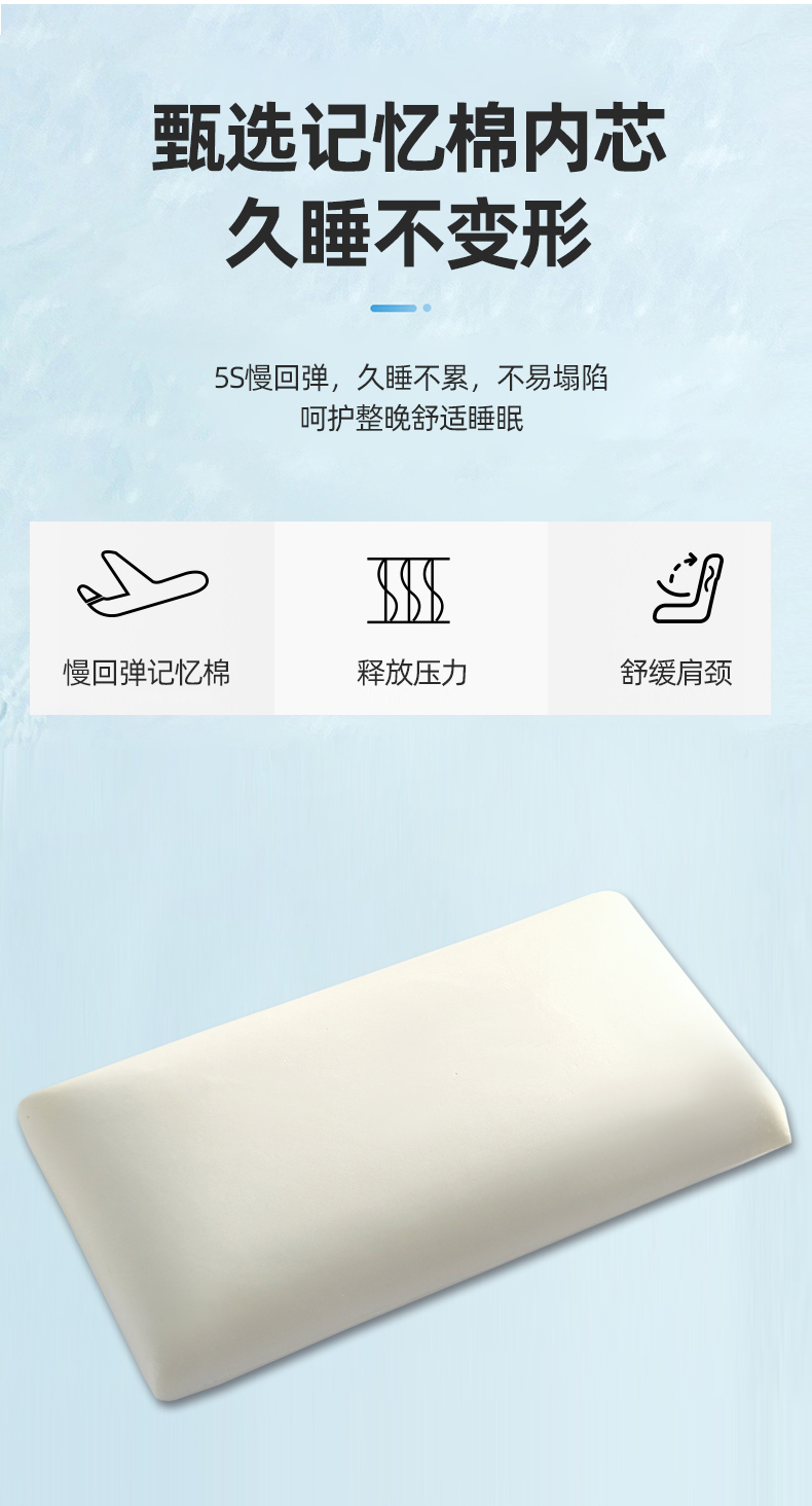 当前位置: 91家纺网 > 商品网购 > 枕头/枕芯/保健枕/颈椎枕 > 慢回弹枕芯 > 佳梦达 2023新款全棉空气层记忆棉乳胶枕头枕芯(系列三)-记忆棉 40*60cm/只蓝色