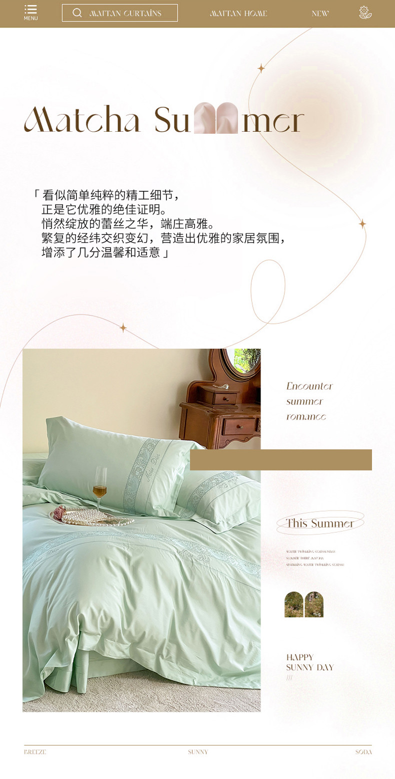 (总)嘉汀兰家居 2024新款100S长绒棉数码印花四件套系列,陌上花开-绿,纤羽-蓝