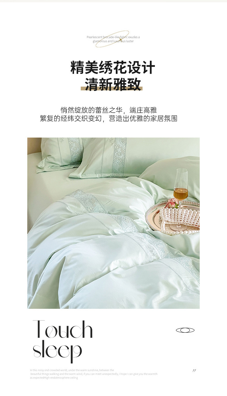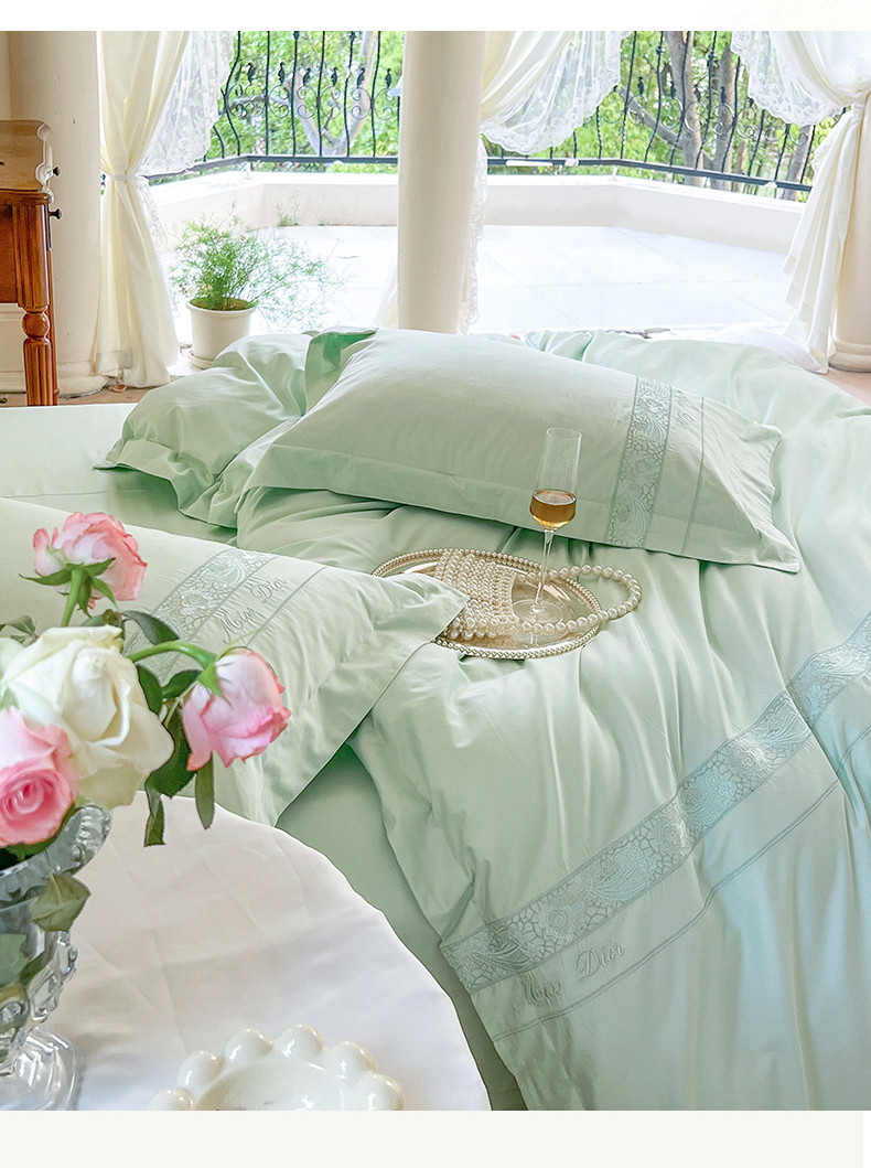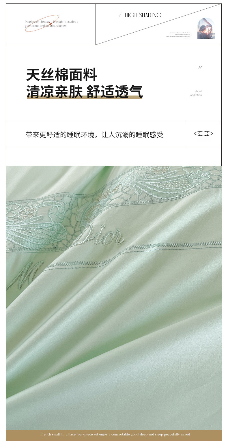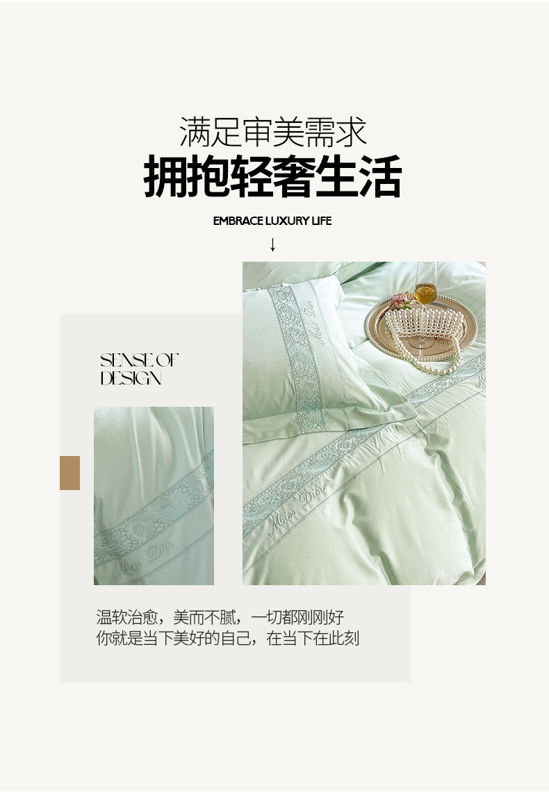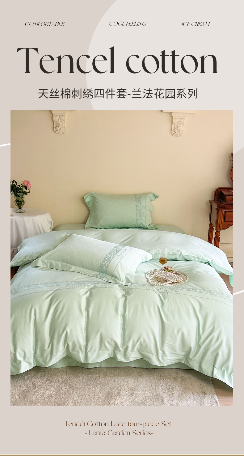 嘉汀兰新款莱赛尔天丝棉法式轻奢风四件套-兰法花园 兰法花园-绿
