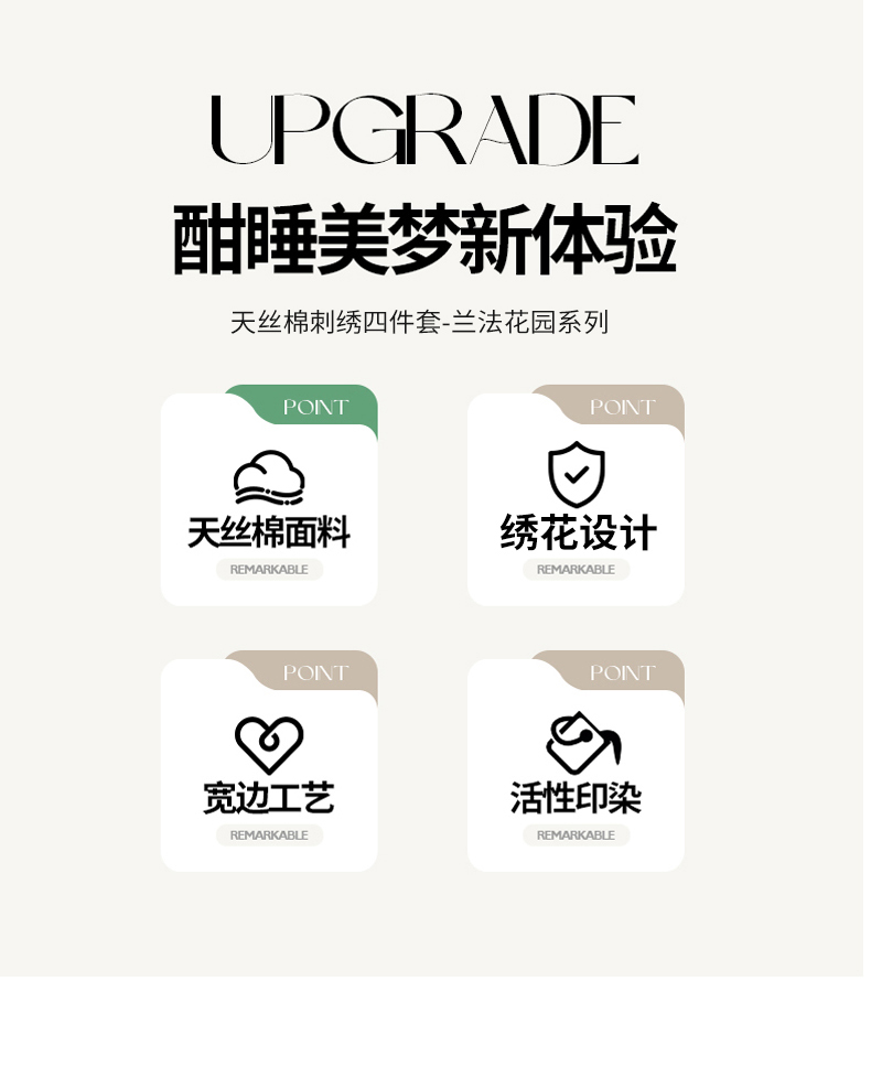 (总)嘉汀兰家居 2025新款长绒棉磨毛四件套—蔓莎,豆沙,灰色,桔色,绿色,香槟,紫色