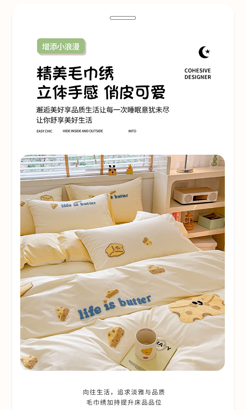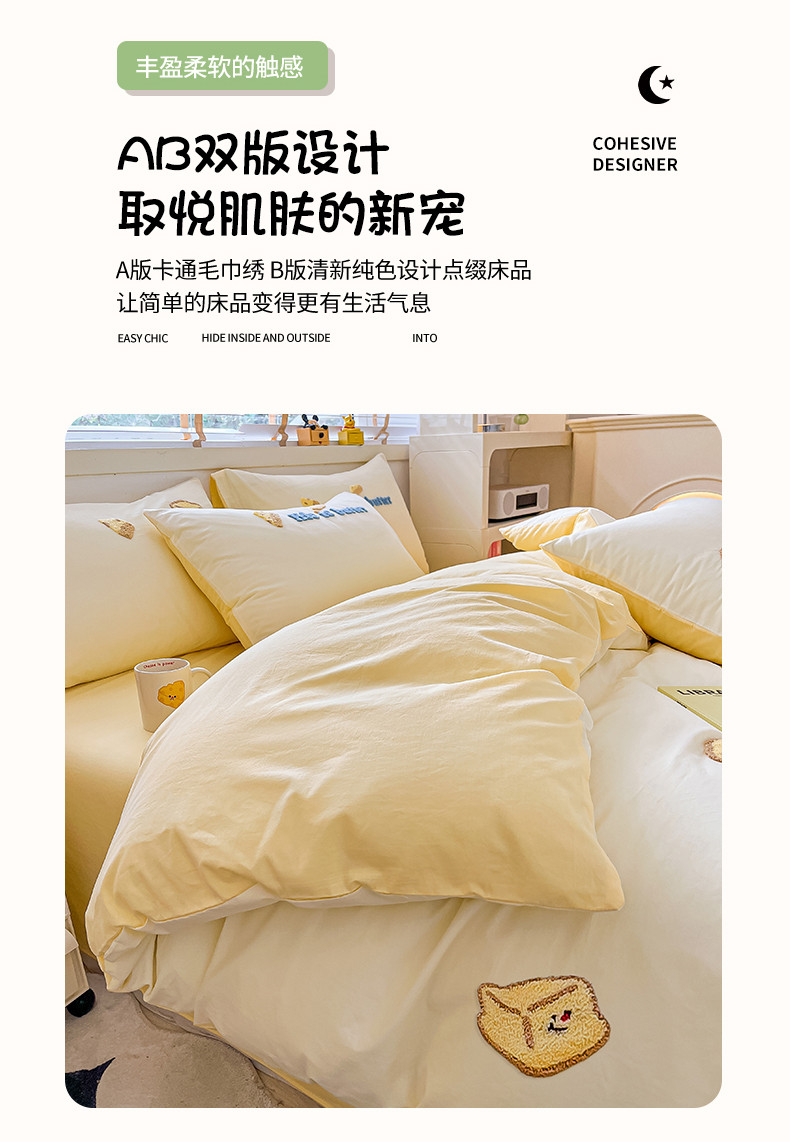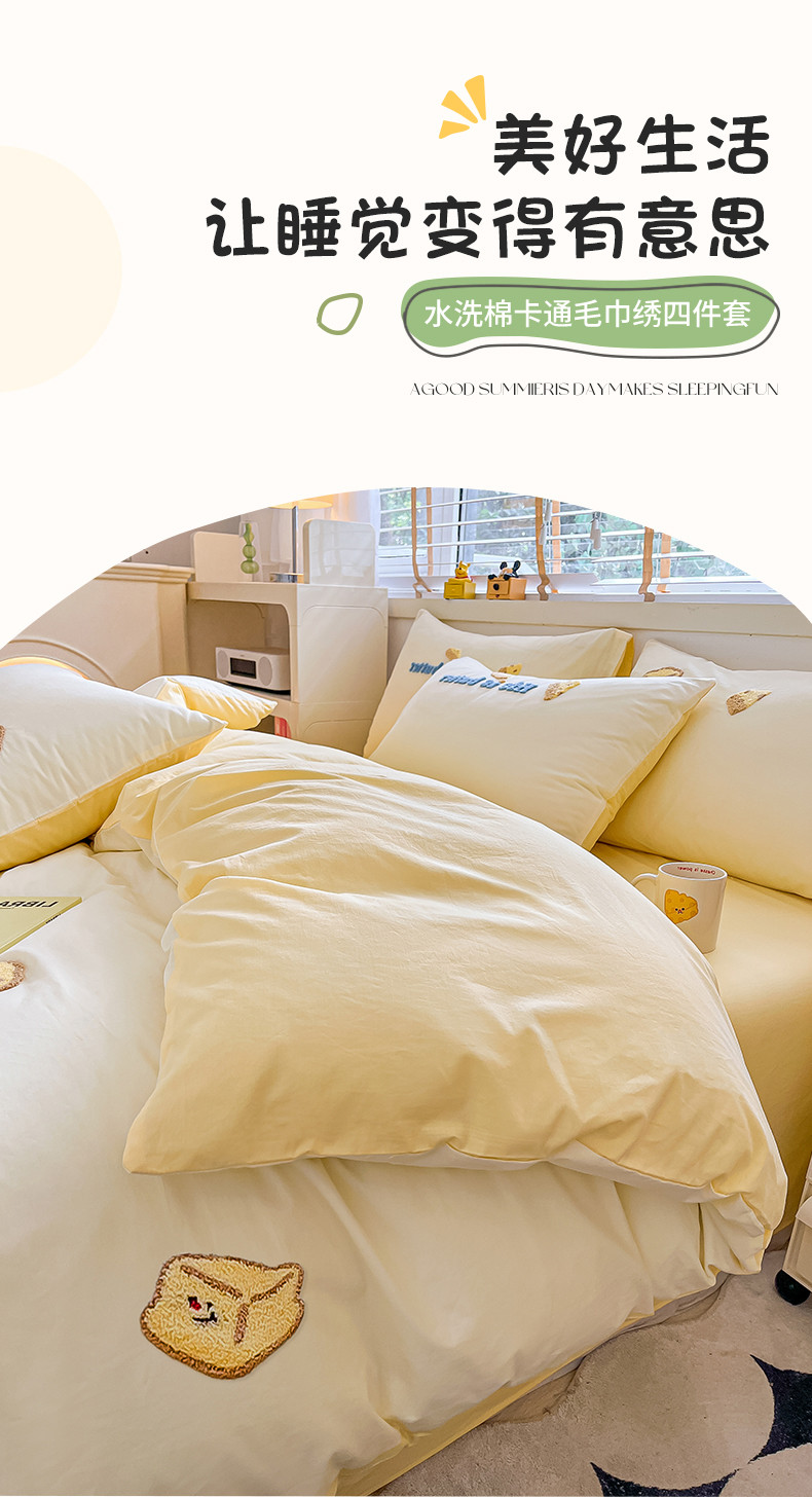 当前位置: 91家纺网 > 商品网购 > 床品套件 > 四件套 > 毛巾绣四件套 > 丽美人家纺 2023新款水洗棉卡通毛巾绣四件套 海绵宝宝