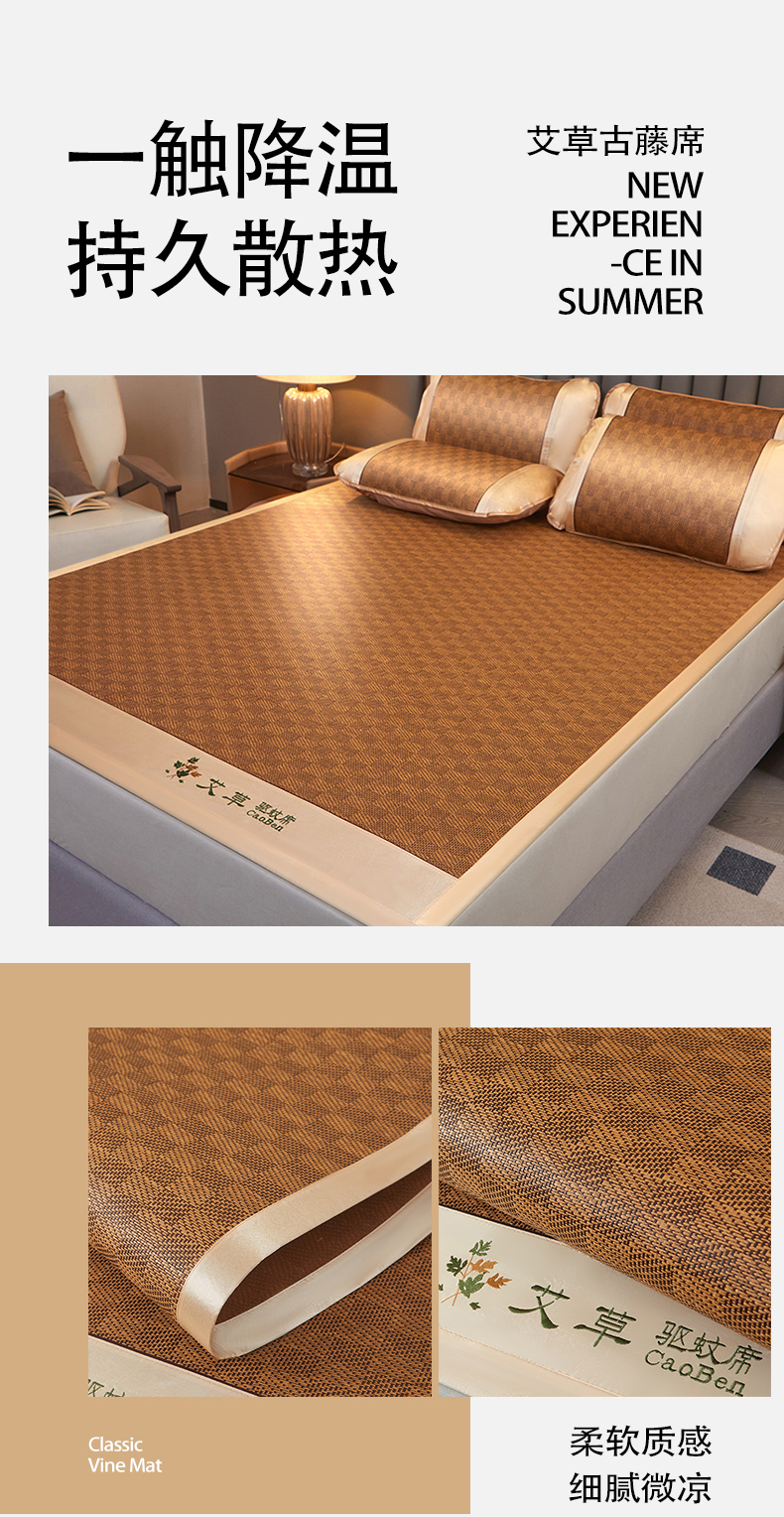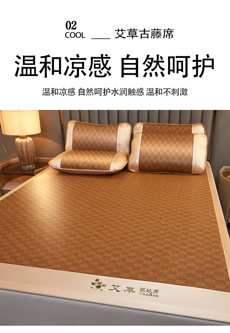 席都凉席工厂店 2024新款方角古藤席 艾草-经典格