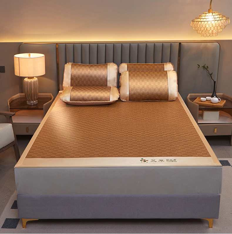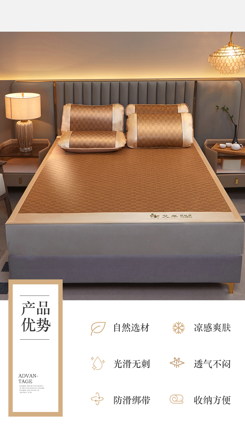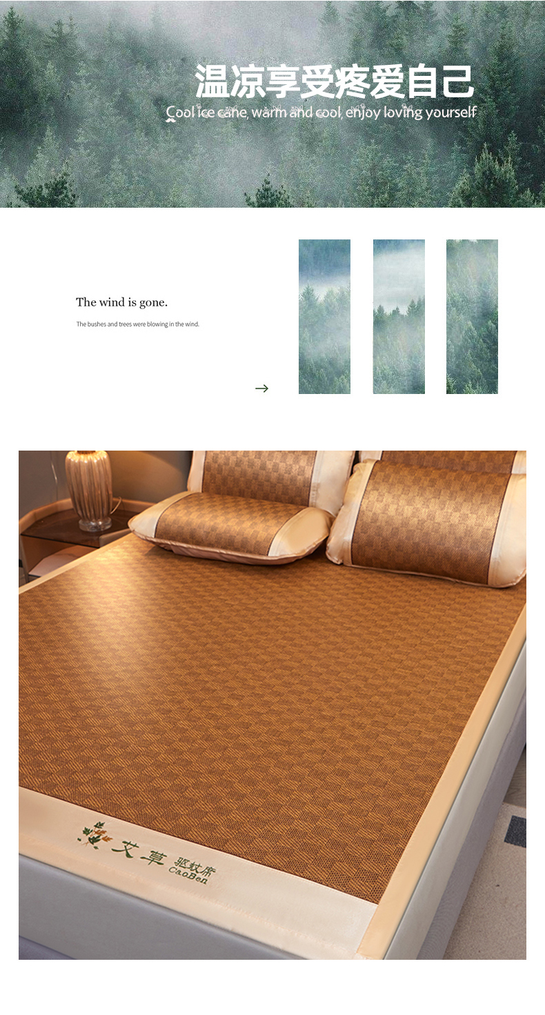 (总)席都 2024新款冰藤席床席三件套-三明治-冰藤席系列,灰,金,绿,粉,蓝